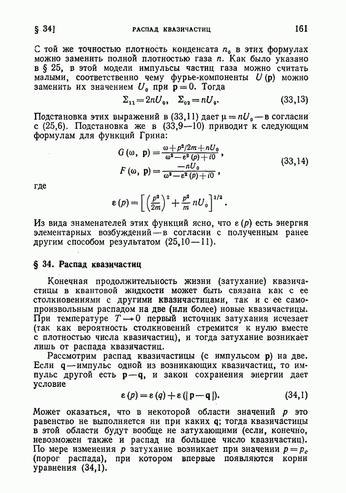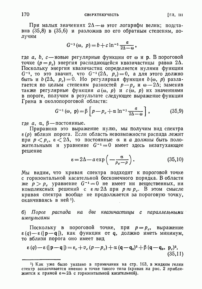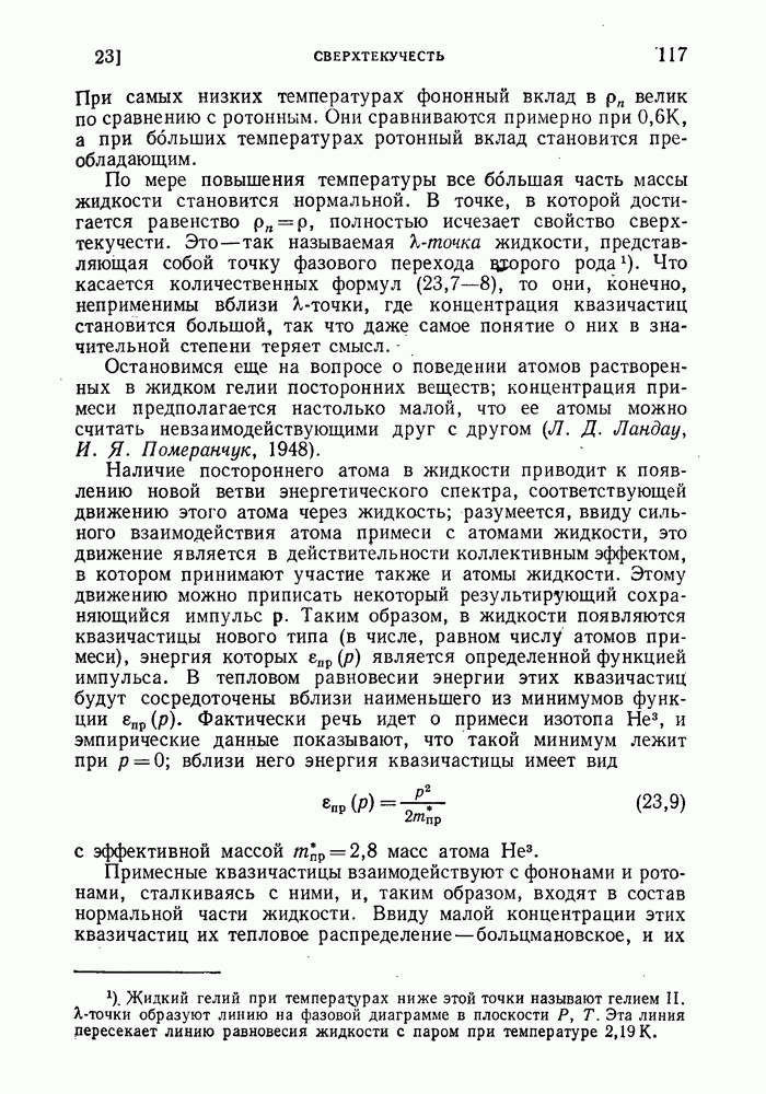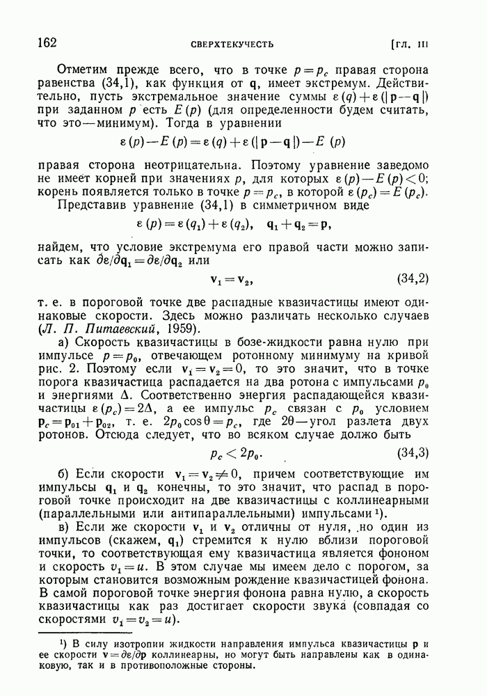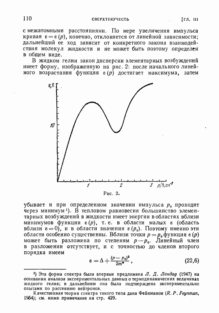 где Квазичастицы этого типа называют ротонами. Подчеркнем, однако, что оба типа квазичастиц — фононы и ротоны — отвечают лишь разным участкам одной и той же кривой, между которыми имеется непрерывный переход. Эмпирические значения параметров энергетического спектра жидкого гелия (экстраполированные к нулевому давлению при плотности
