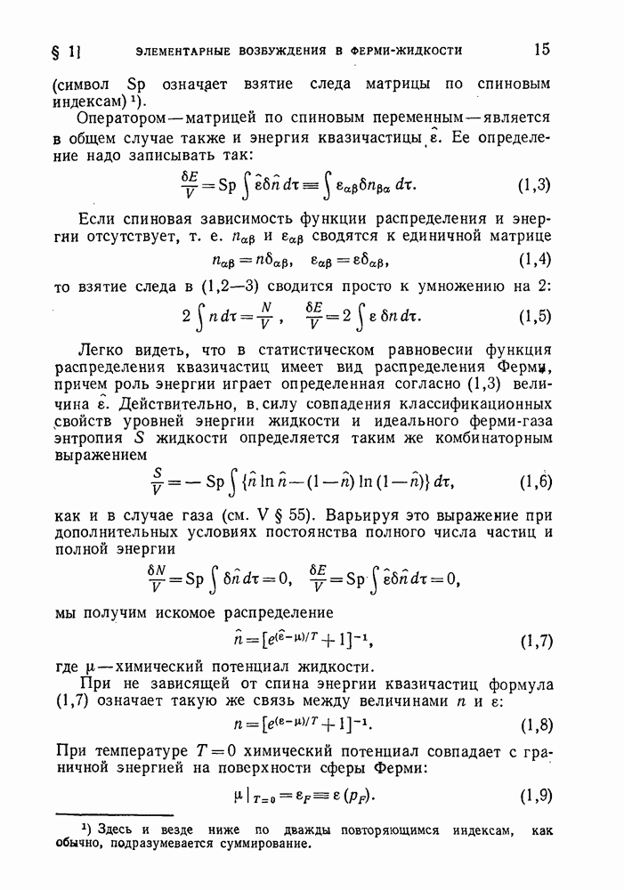 (см. V § 41). При этом под N в этой формуле надо понимать число ротонов в жидкости. Но это число само определяется условием термодинамического равновесия, т. е. условием минимальности свободной энергии. Приравняв