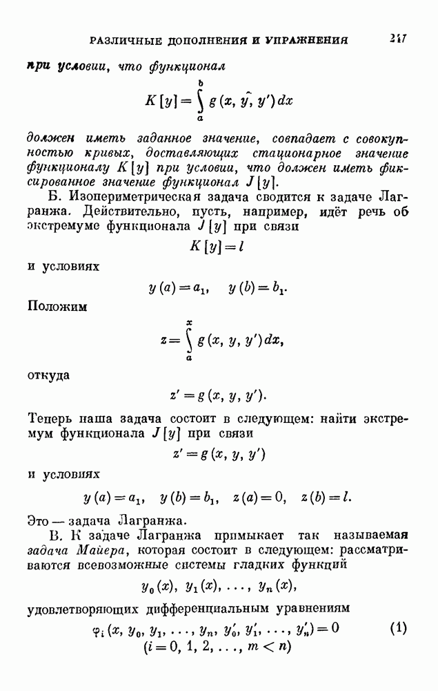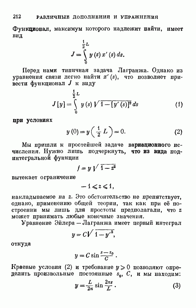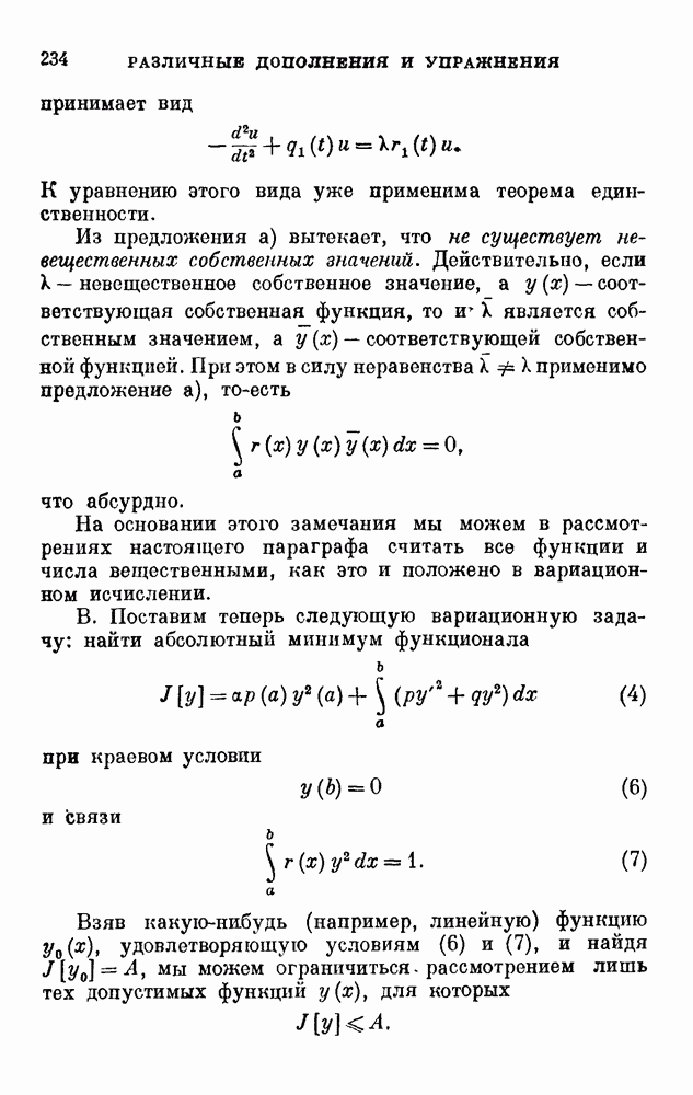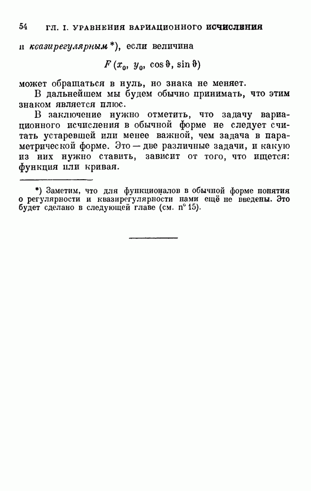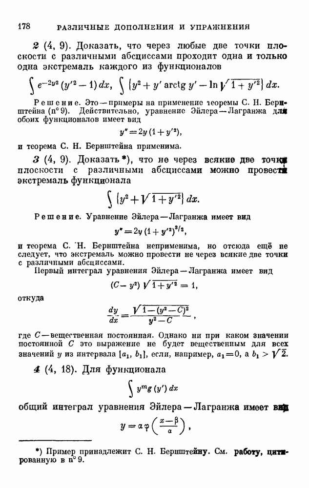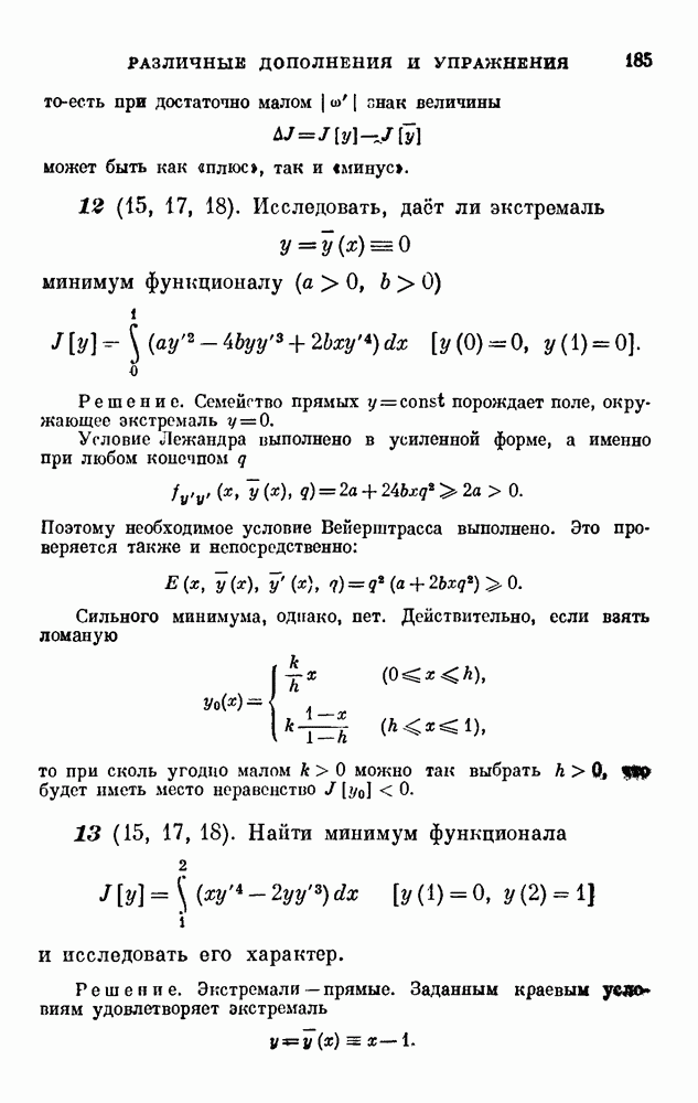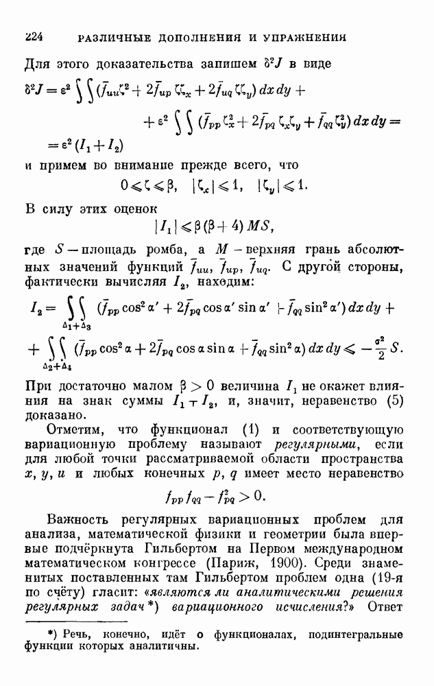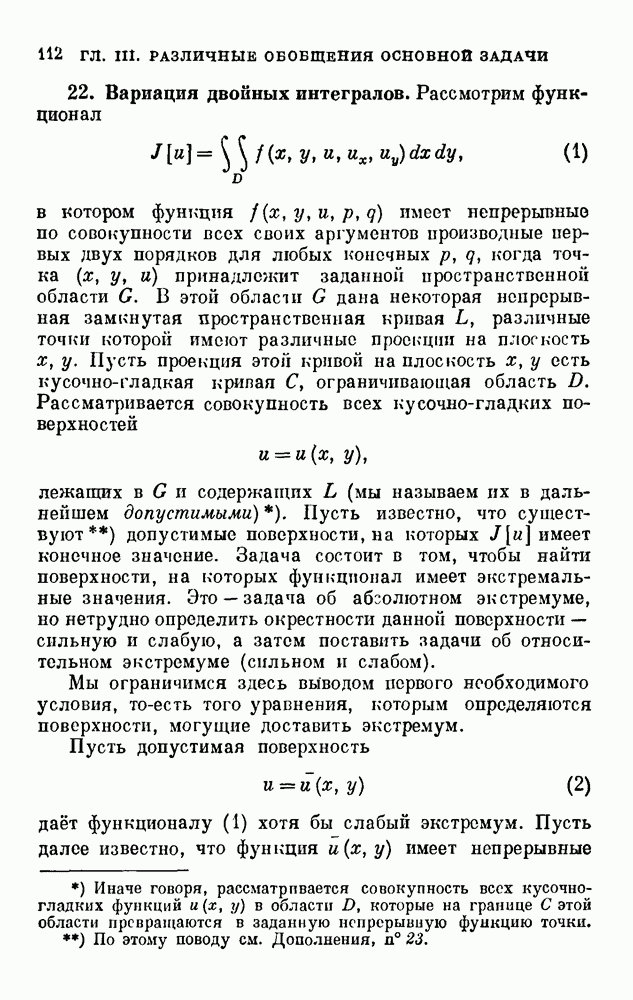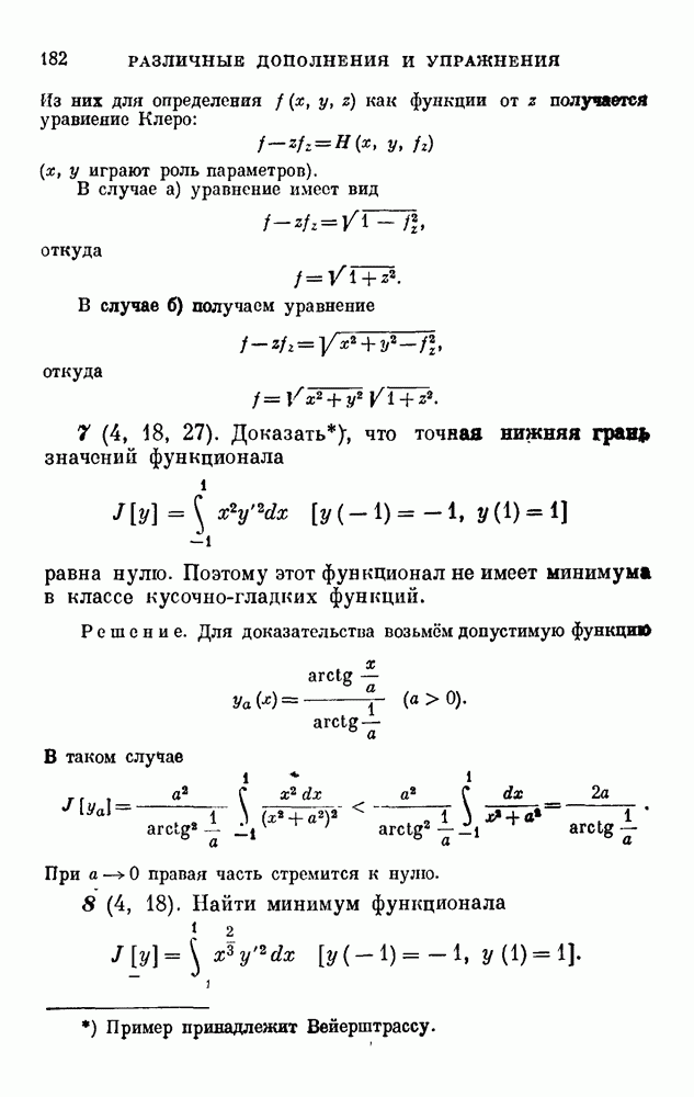 В соответствии с существующими программами и общими задачами университетского преподаванпя я стремился не столько к подробной трактовке всех задач вариационного исчисления, сколько к ознакомлению студентов с проблематикой и главными методами вариационного исчисления — классическими и прямыми. Поэтому в основном тексте полному разбору подвергнуты лишь главнейшие проблемы. Частично этот пробел восполняет раздел «Различные дополнения и упражнения» (коротко: Дополнения). Для большей компактности туда же отнесены и классические примеры вариационного исчисления. Рядом с номером параграфа Дополнений указаны в скобках те параграфы основного текста, с которыми он в первую очередь связан.