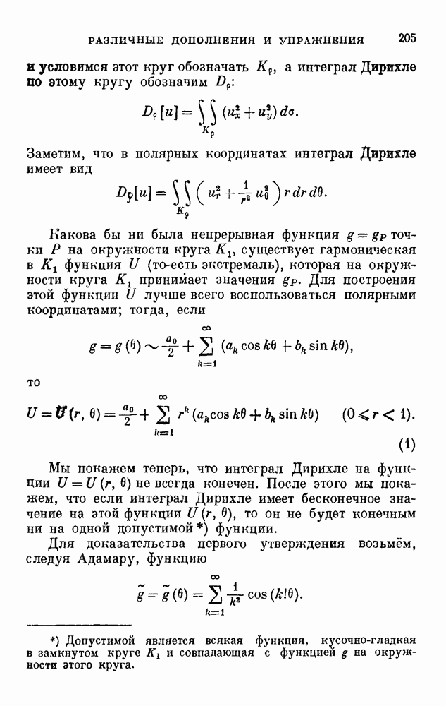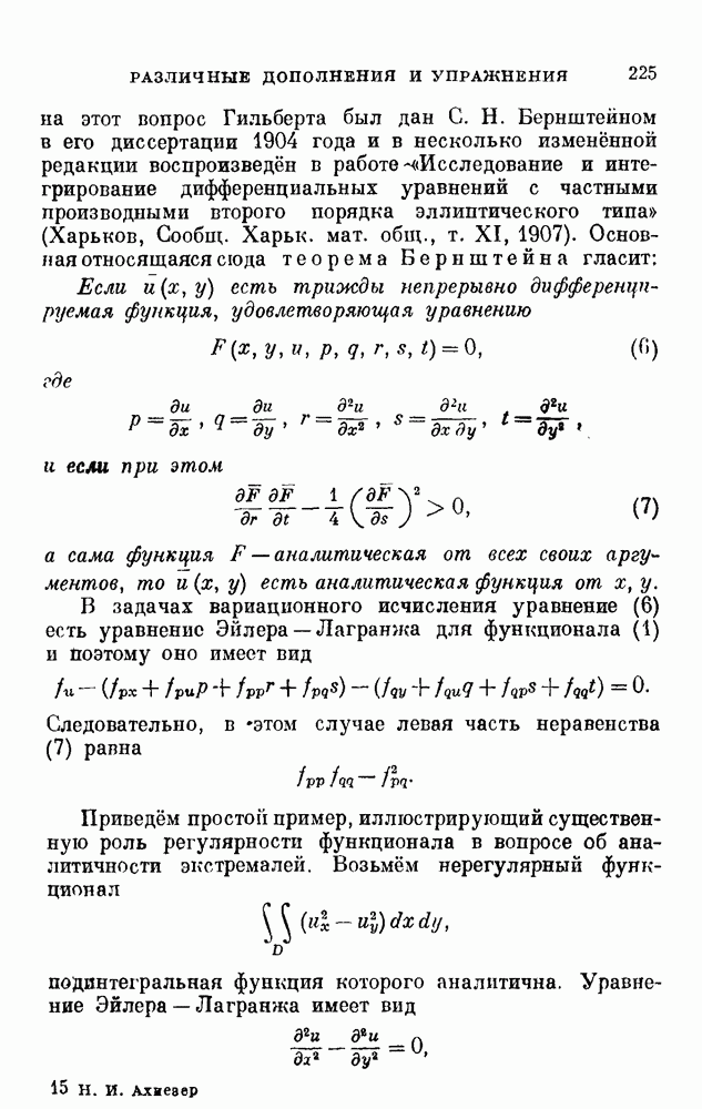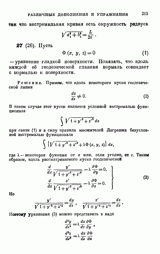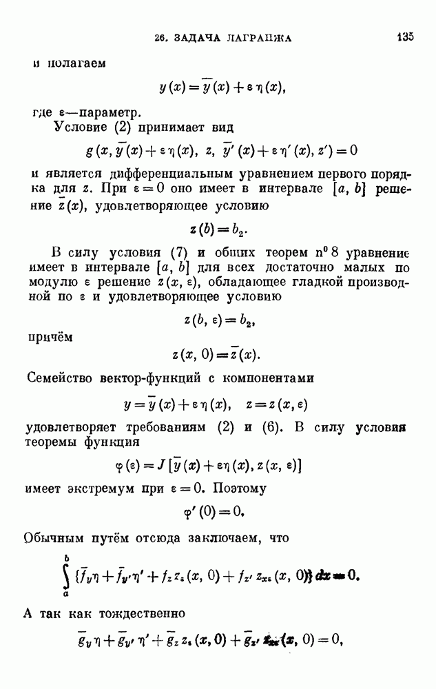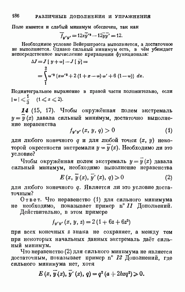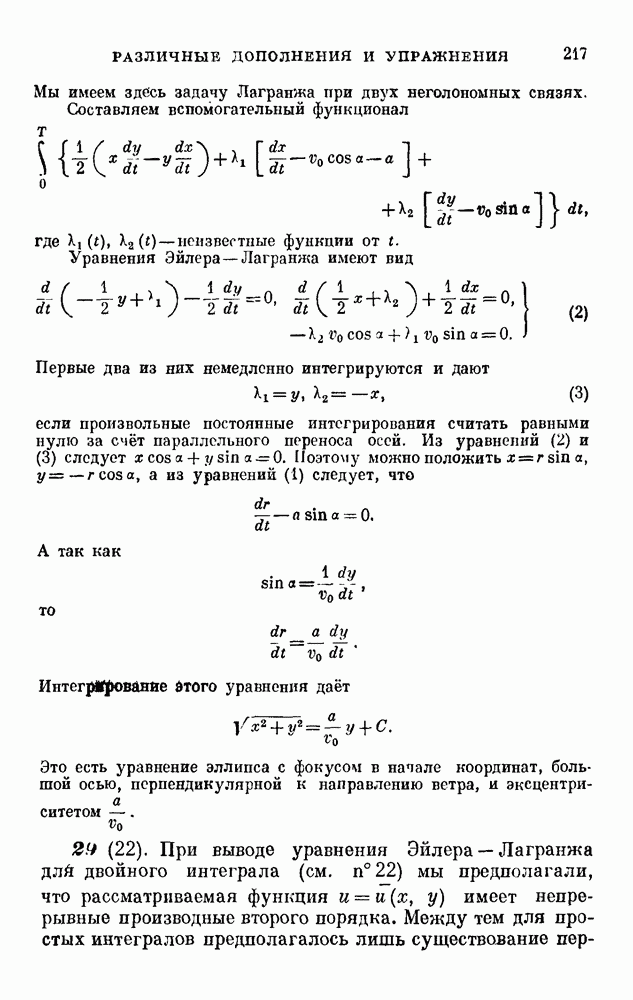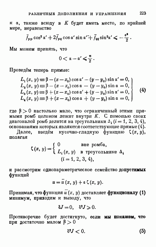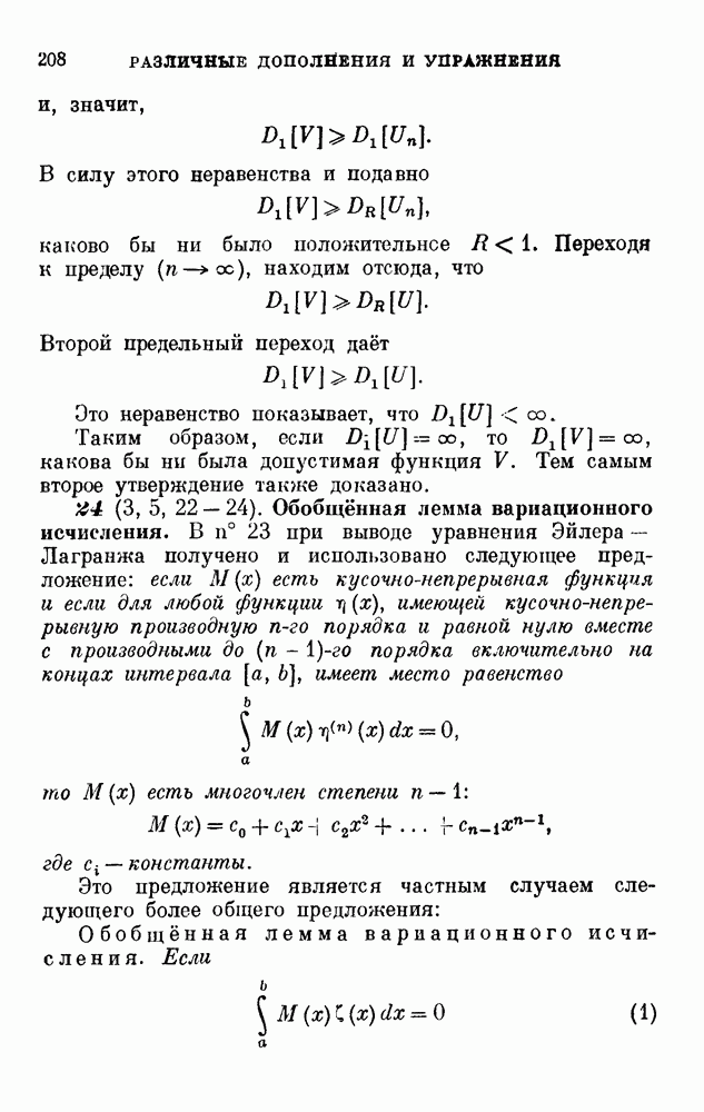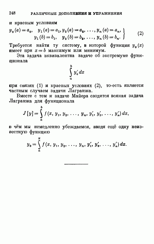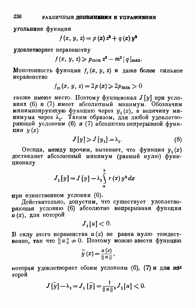 В соответствии с существующими программами и общими задачами университетского преподаванпя я стремился не столько к подробной трактовке всех задач вариационного исчисления, сколько к ознакомлению студентов с проблематикой и главными методами вариационного исчисления — классическими и прямыми. Поэтому в основном тексте полному разбору подвергнуты лишь главнейшие проблемы. Частично этот пробел восполняет раздел «Различные дополнения и упражнения» (коротко: Дополнения). Для большей компактности туда же отнесены и классические примеры вариационного исчисления. Рядом с номером параграфа Дополнений указаны в скобках те параграфы основного текста, с которыми он в первую очередь связан.