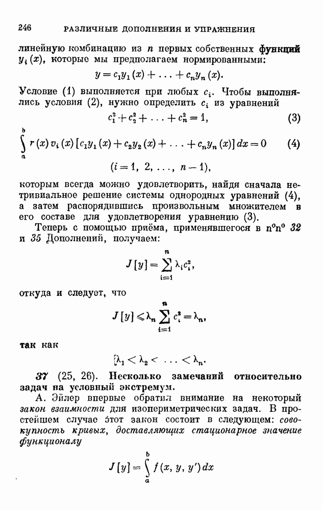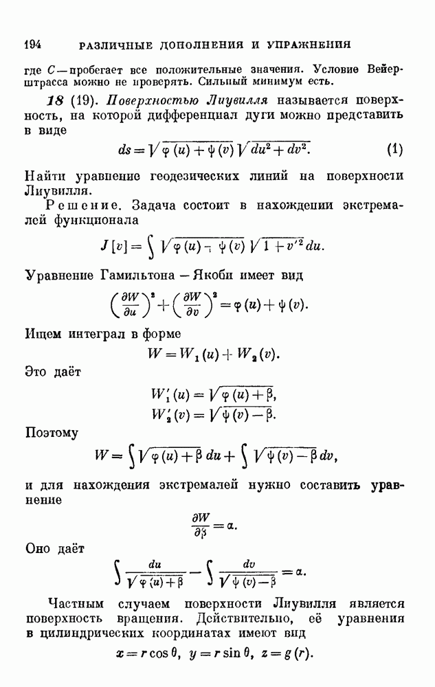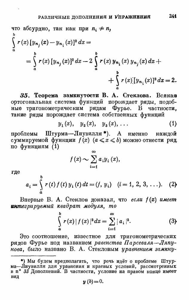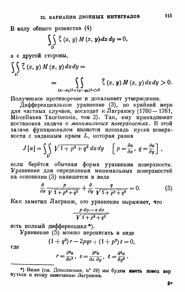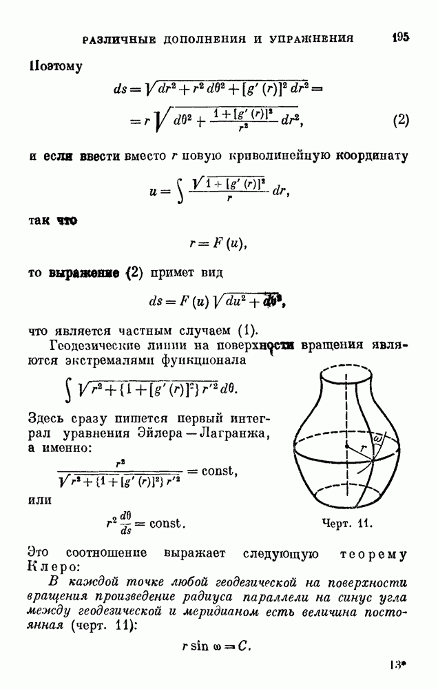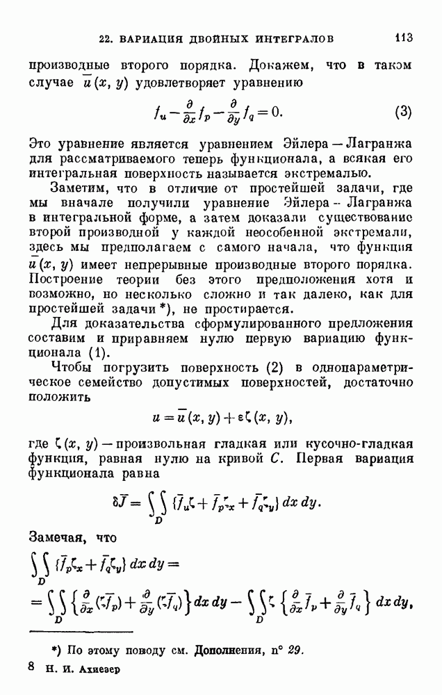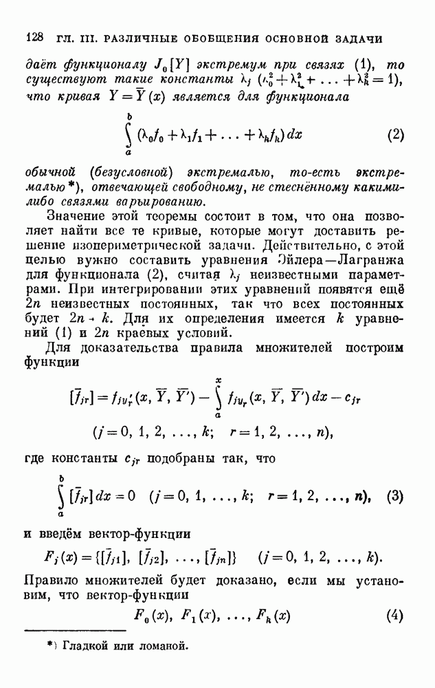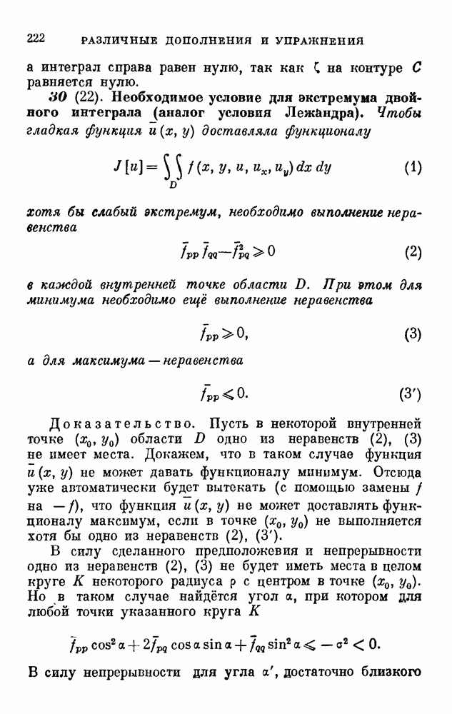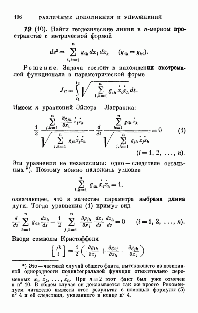 В соответствии с существующими программами и общими задачами университетского преподаванпя я стремился не столько к подробной трактовке всех задач вариационного исчисления, сколько к ознакомлению студентов с проблематикой и главными методами вариационного исчисления — классическими и прямыми. Поэтому в основном тексте полному разбору подвергнуты лишь главнейшие проблемы. Частично этот пробел восполняет раздел «Различные дополнения и упражнения» (коротко: Дополнения). Для большей компактности туда же отнесены и классические примеры вариационного исчисления. Рядом с номером параграфа Дополнений указаны в скобках те параграфы основного текста, с которыми он в первую очередь связан.