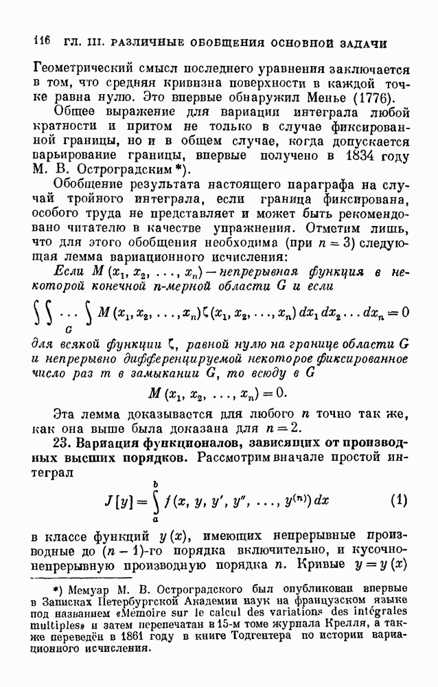 Кроме известных трактатов по вариационному исчислению, я частично использовал небольшой литографированный курс покойного Н. Г. Чеботарёва, а также несколько упомянутых в тексте журнальных статей.