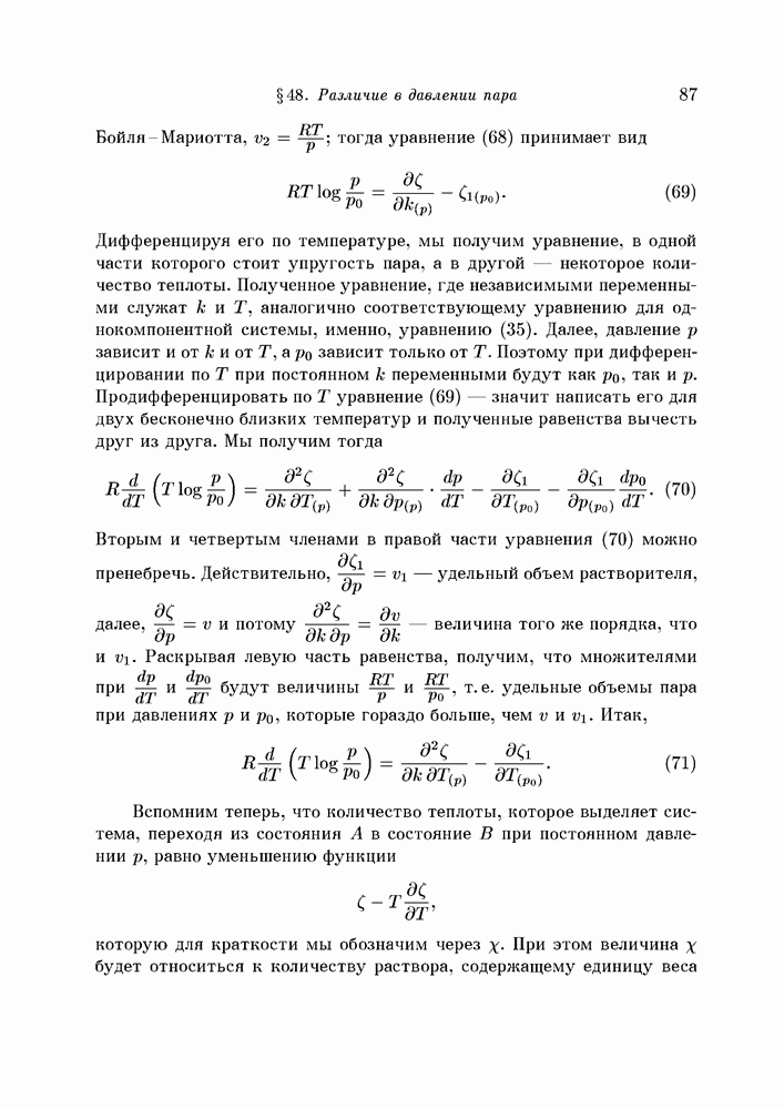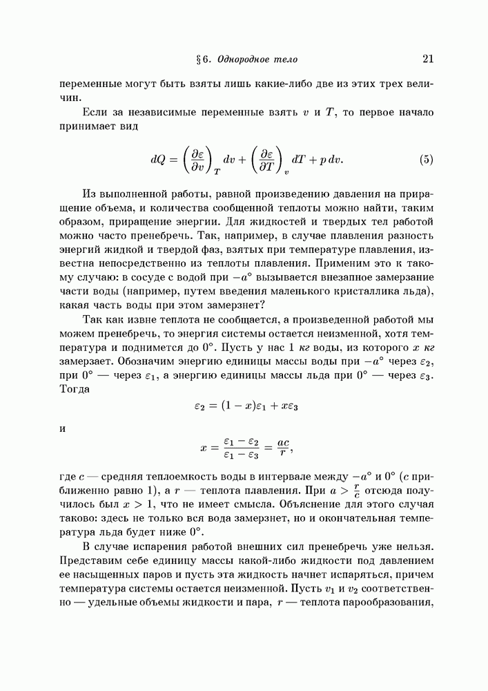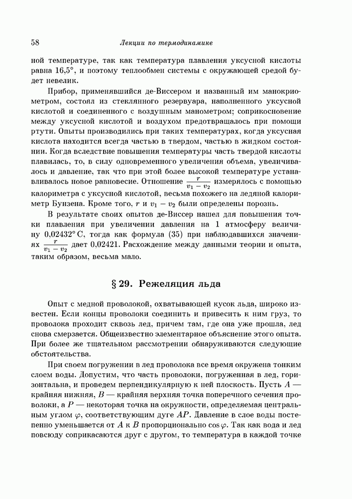 — теплота плавления, величина положительная. Если плавление сопровождается увеличением объема, то, согласно уравнению (35), температура плавления (температура замерзания) с ростом давления также повысится. В случае льда и некоторых других веществ плавление сопровождается сжатием, так что с возрастанием давления температура плавления понижается.