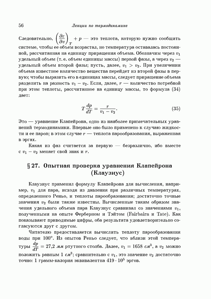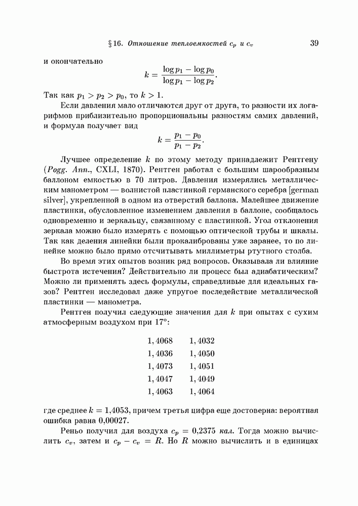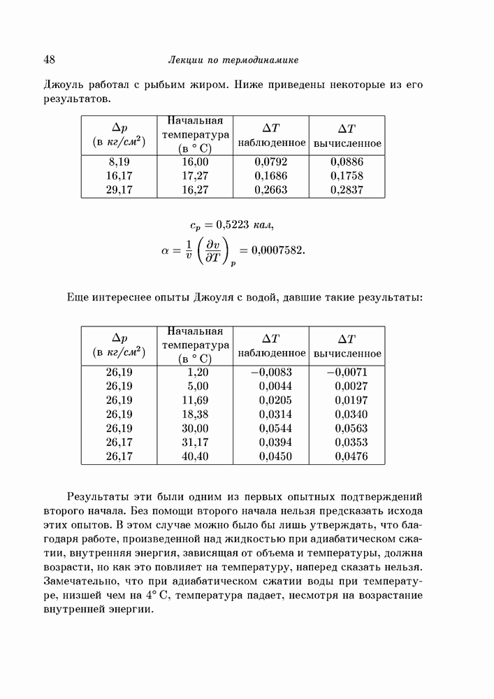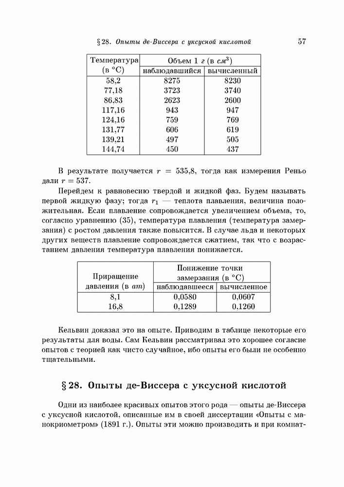 Кельвин доказал это на опыте. Приводим в таблице некоторые его результаты для воды. Сам Кельвин рассматривал это хорошее согласие опытов с теорией как чисто случайное, ибо опыты его были не особенно тщательными.