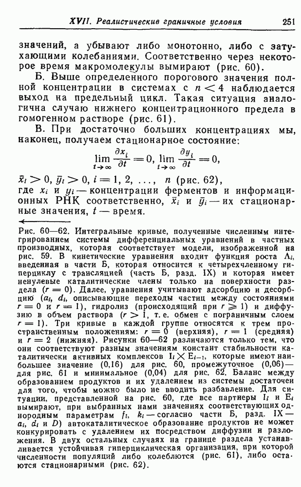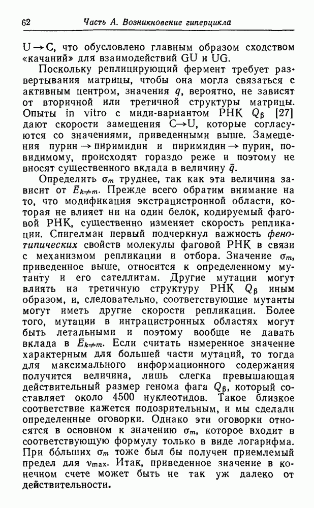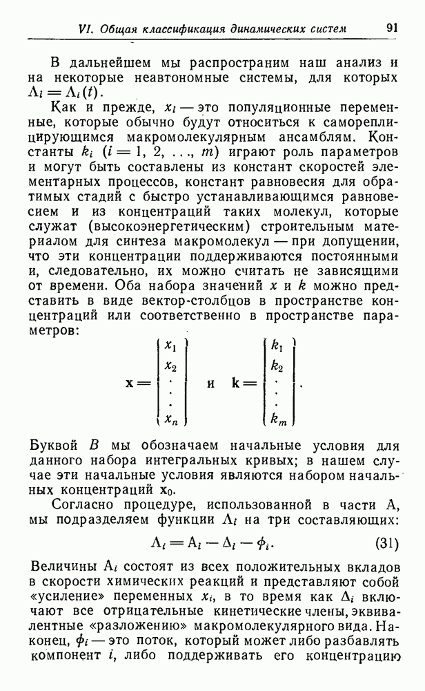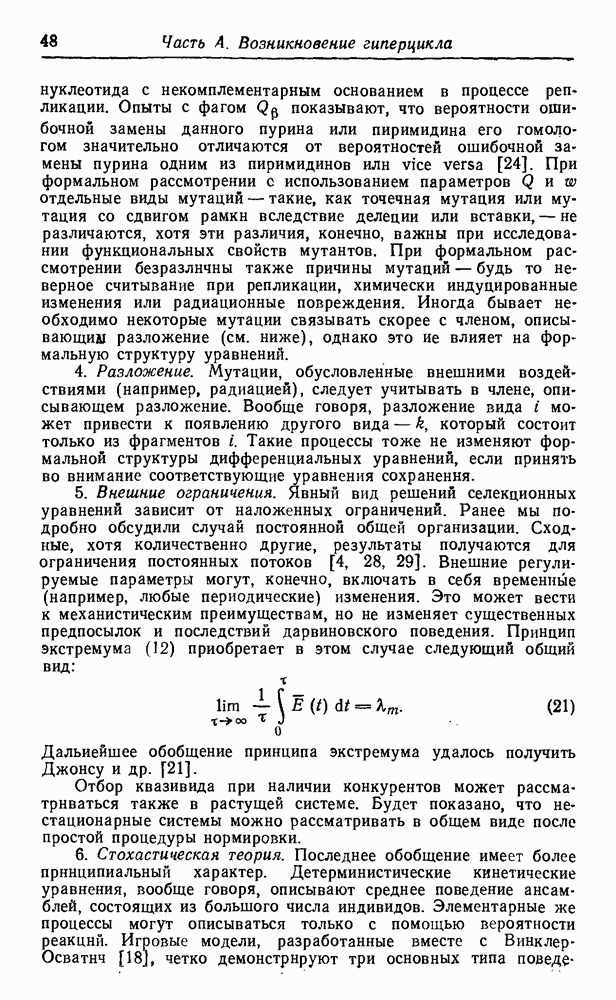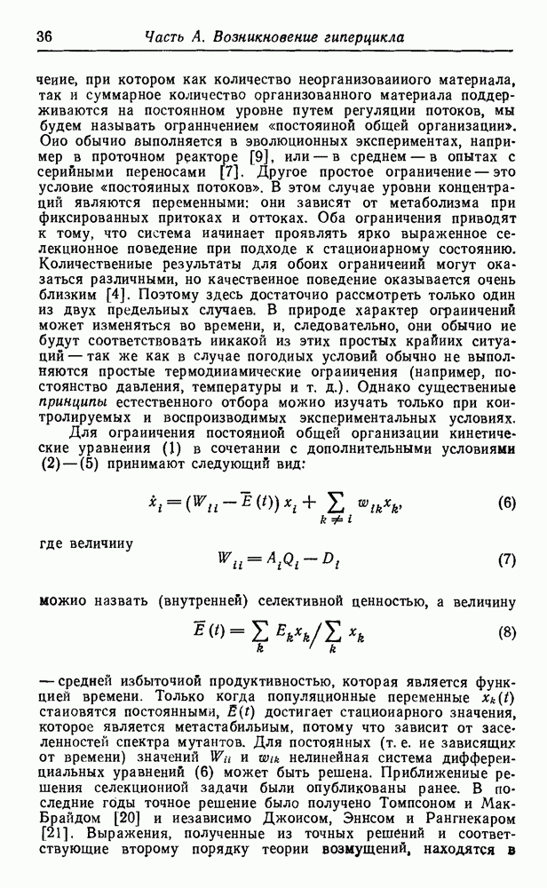 Кинетические уравнения, описывающие процессы полимеризации на матрице и трансляции, включают только численности популяций макромолекул, синтез которых завершен. Таким образом, инициация цепи и этапы ее роста в явном виде не рассматриваются. О правомочности этих аппроксимаций можно судить, сравнивая результаты с экспериментальными данными. В действительности тот тип «суммарной» кинетики, который мы здесь используем, достаточно хорошо известен (см. часть В).