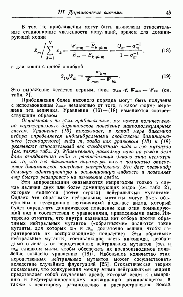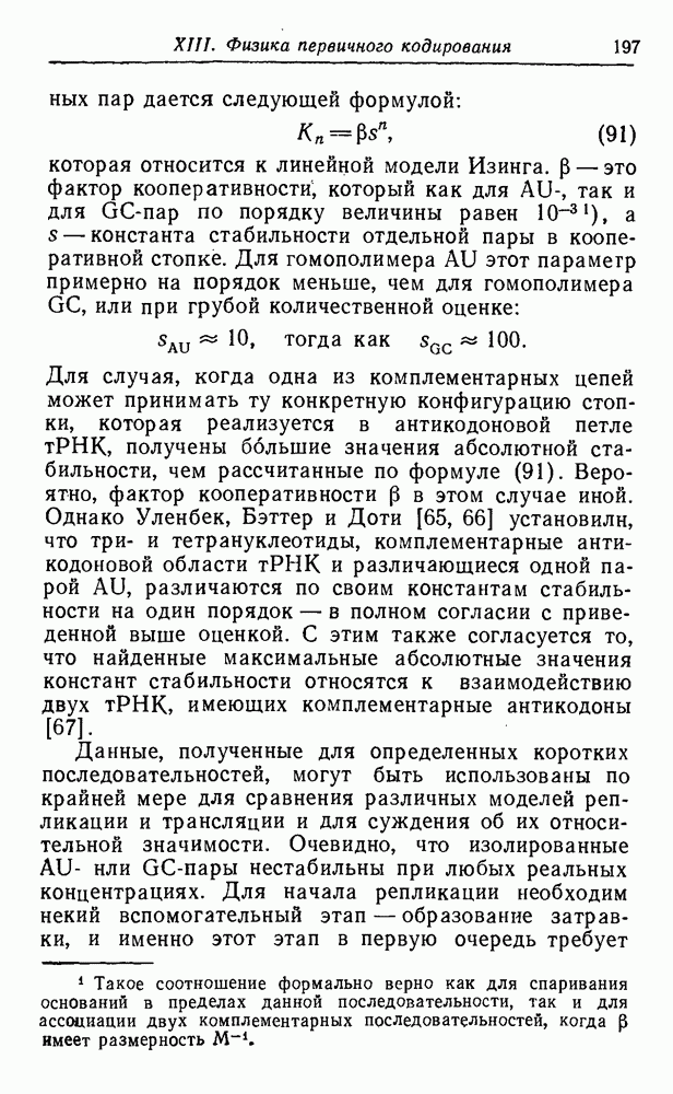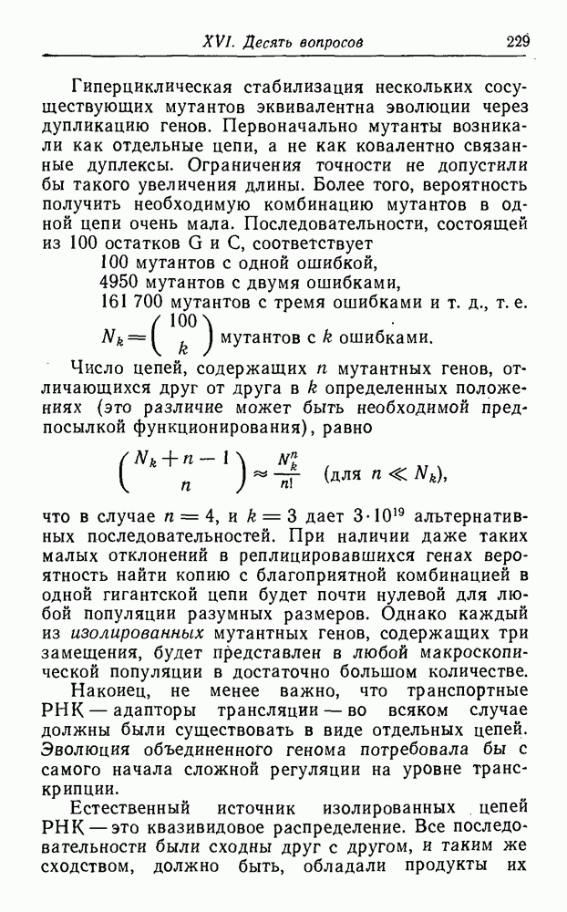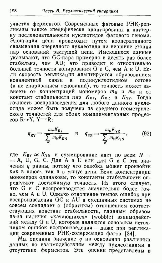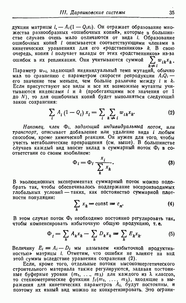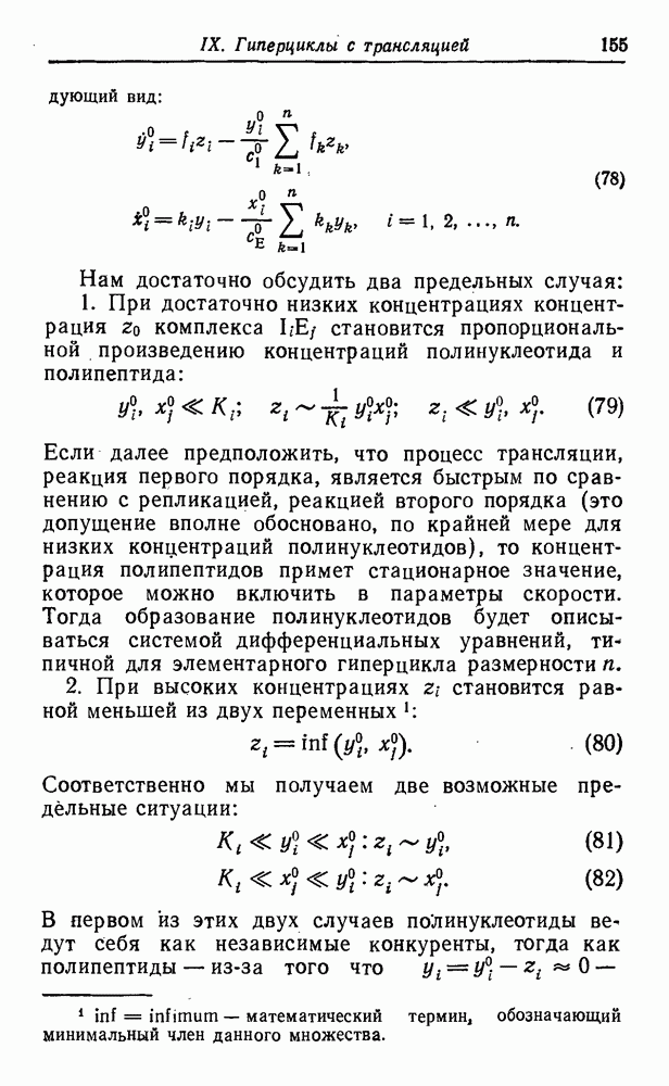 Кинетические уравнения, описывающие процессы полимеризации на матрице и трансляции, включают только численности популяций макромолекул, синтез которых завершен. Таким образом, инициация цепи и этапы ее роста в явном виде не рассматриваются. О правомочности этих аппроксимаций можно судить, сравнивая результаты с экспериментальными данными. В действительности тот тип «суммарной» кинетики, который мы здесь используем, достаточно хорошо известен (см. часть В).