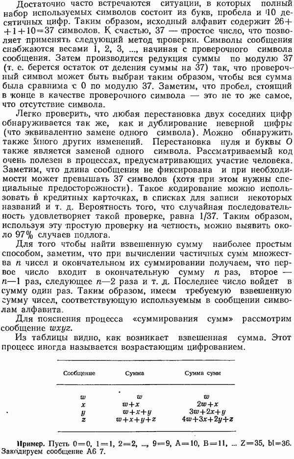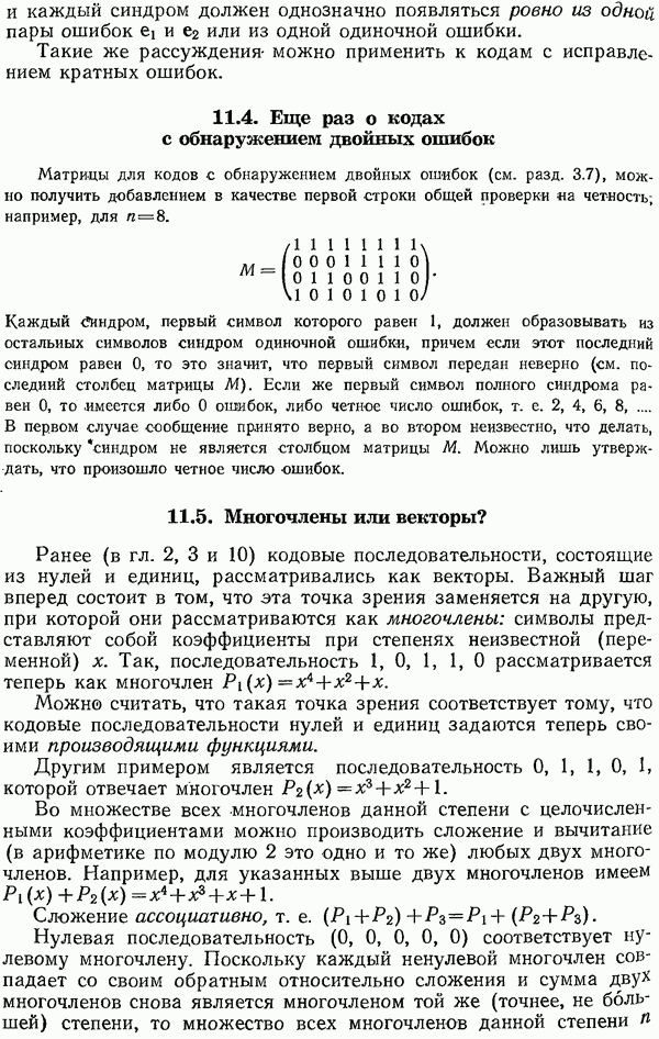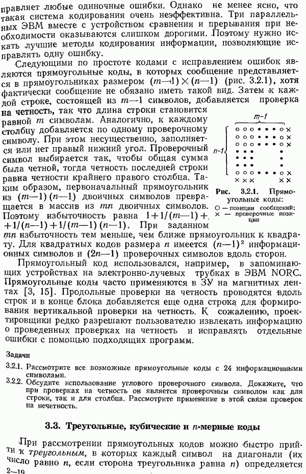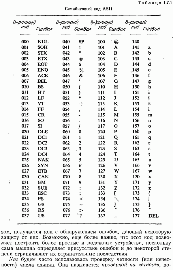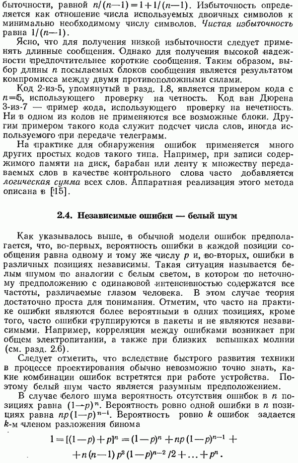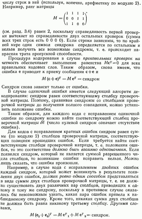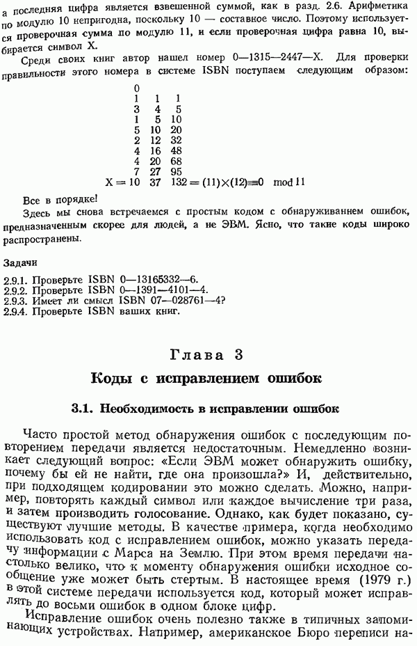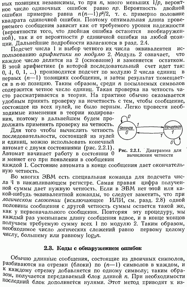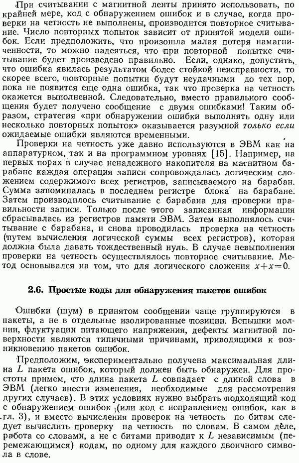 совпадает с длиной слова в ЭВМ (легко внести изменения, необходимые для рассмотрения других случаев). В этих условиях нужно выбрать подходящий код с обнаружением ошибок; (или код с исправлением ошибок, как в гл. 3), и вместо вычисления проверок на четность по битам следует вычислить проверку на четность по словам. В самом дёле, работа со словами, а не с битами приводит к
