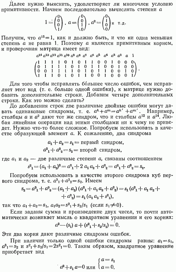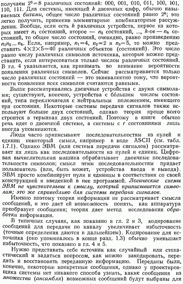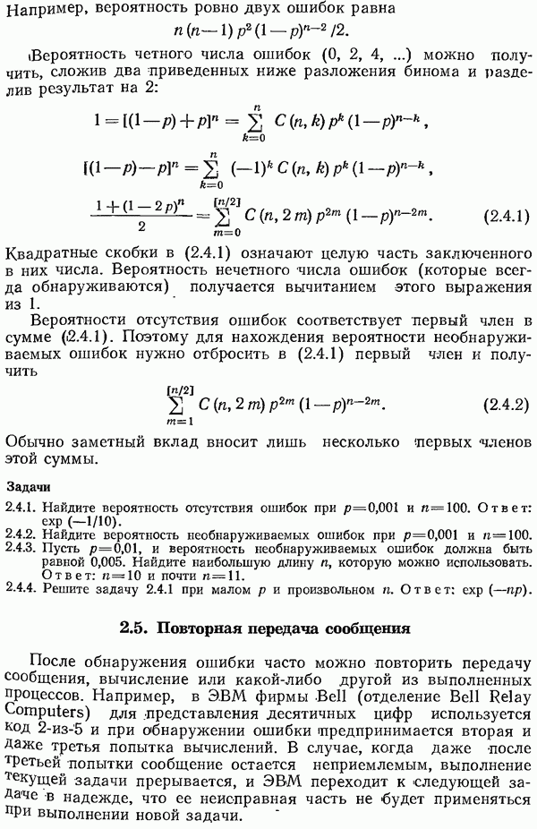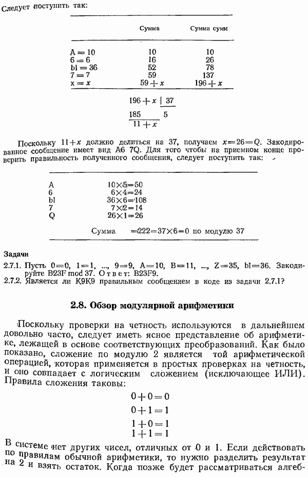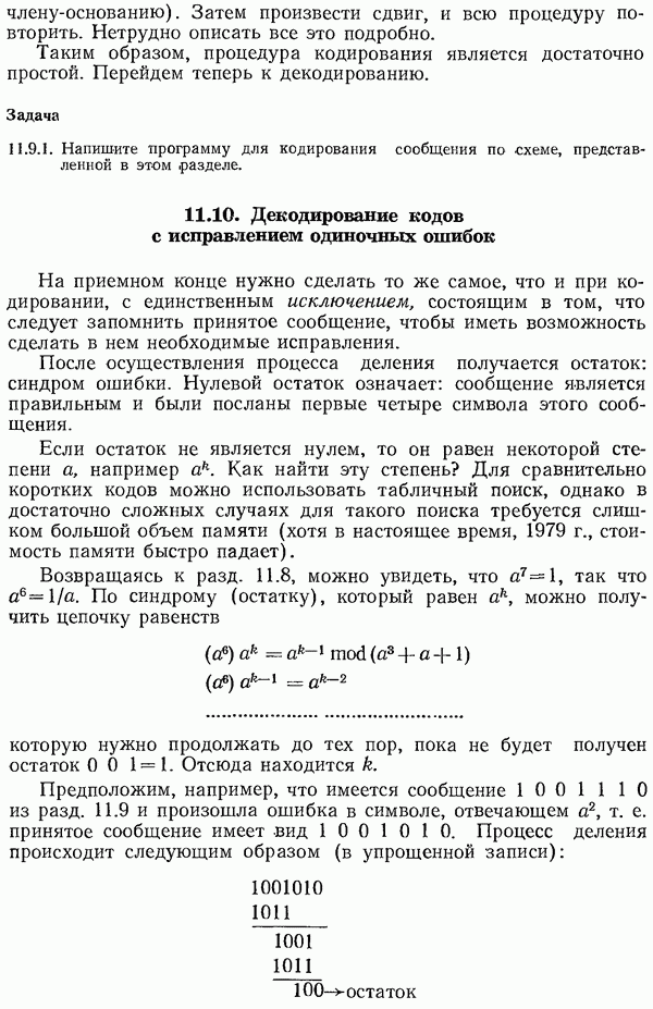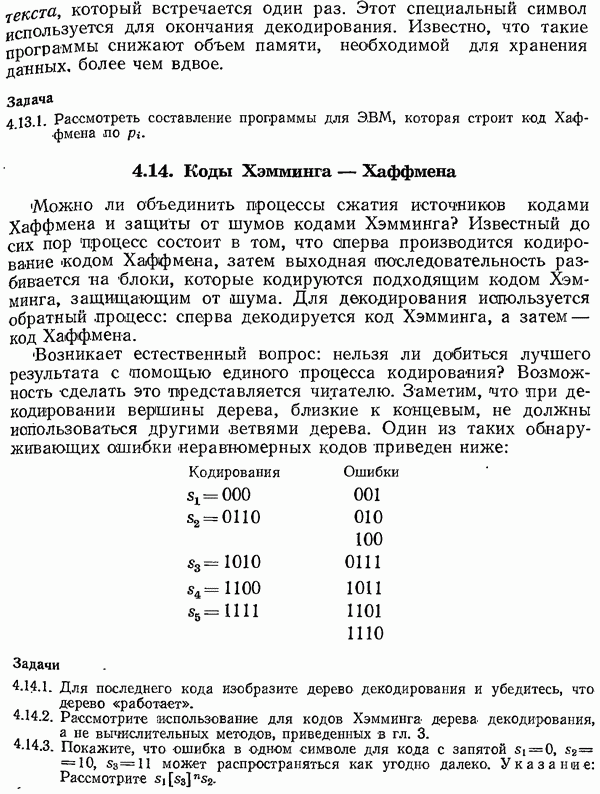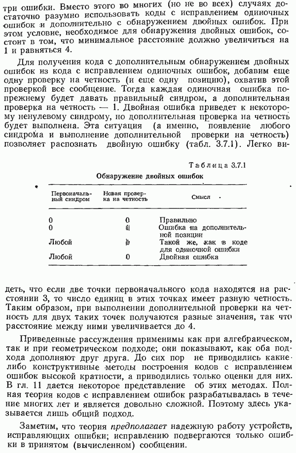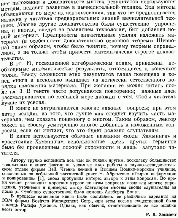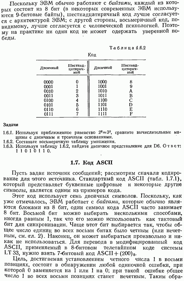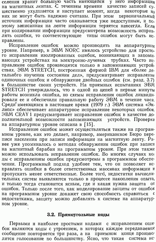 совпадает с длиной слова в ЭВМ (легко внести изменения, необходимые для рассмотрения других случаев). В этих условиях нужно выбрать подходящий код с обнаружением ошибок; (или код с исправлением ошибок, как в гл. 3), и вместо вычисления проверок на четность по битам следует вычислить проверку на четность по словам. В самом дёле, работа со словами, а не с битами приводит к