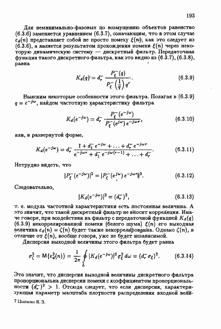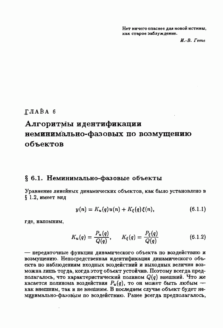 § 6.2. Особенности оптимальной настраиваемой моделиДля синтеза наилучшей настраиваемой модели, пригодной для идентификации неминимально-фазового по возмущению объекта, необходимо решить задачу минимизации второго момента невязки