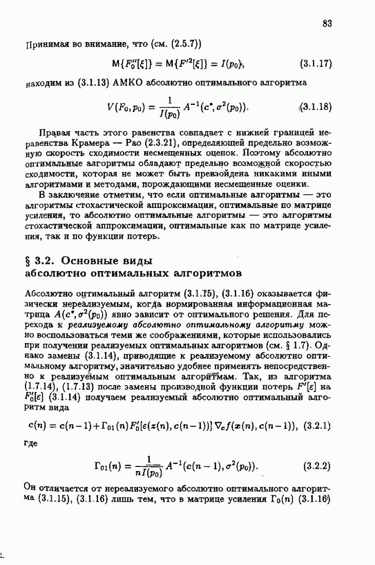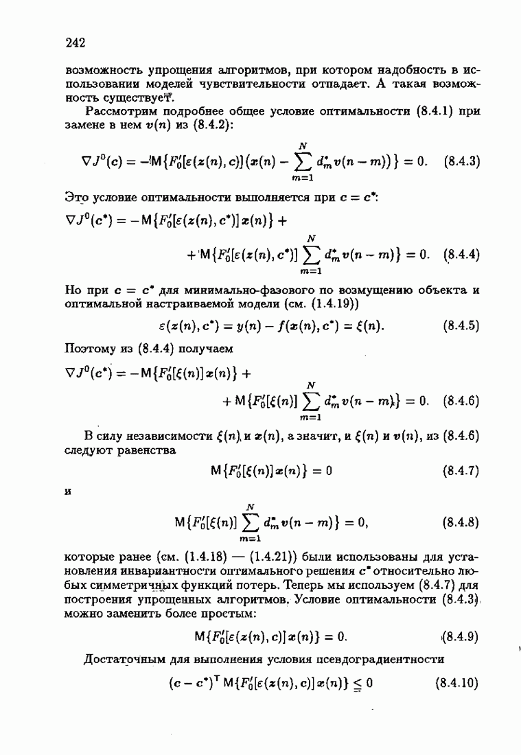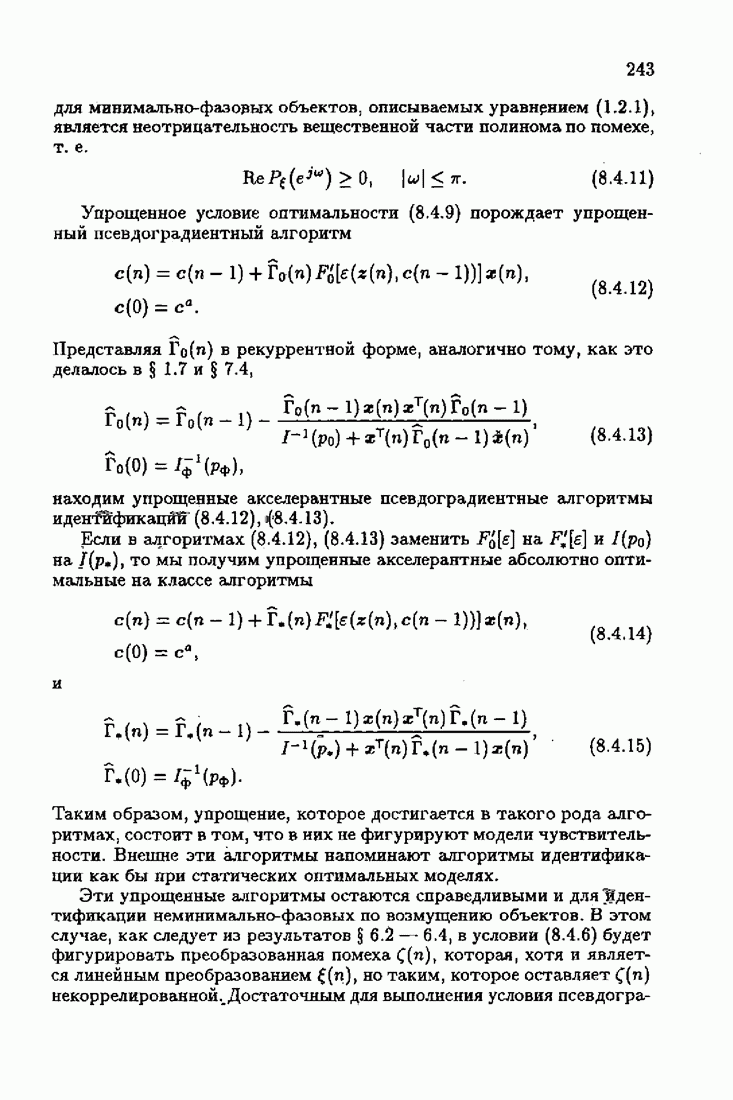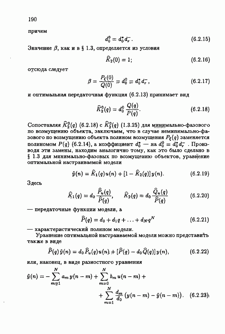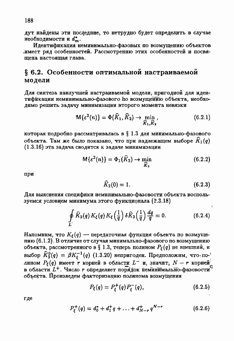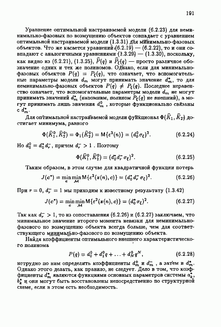 Уравнение оптимальной настраиваемой модели (6.2.23) для неминимально-фазовых по возмущению объектов совпадает с уравнением оптимальной настраиваемой модели (1.3.31) для минимально-фазовых объектов. Что же касается уравнений (6.2.19) — (6.2.22), то и они совпадают с аналогичными уравнениями (1.3.29) — (1.3.30), поскольку, как видно Для оптимальной настраиваемой модели функционал