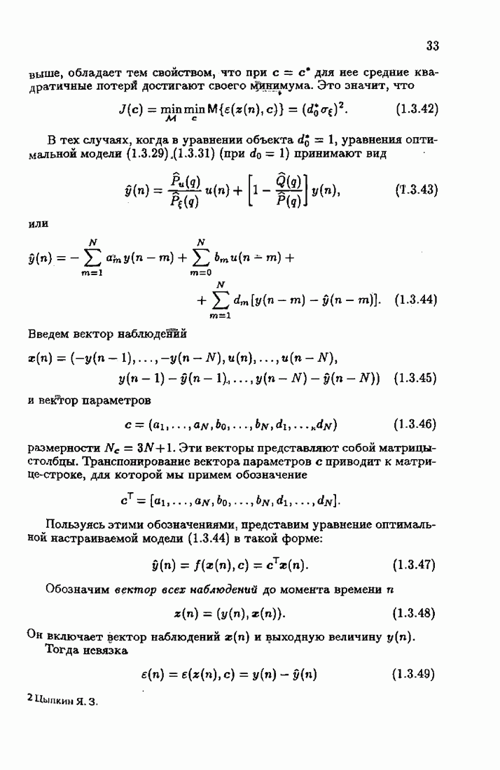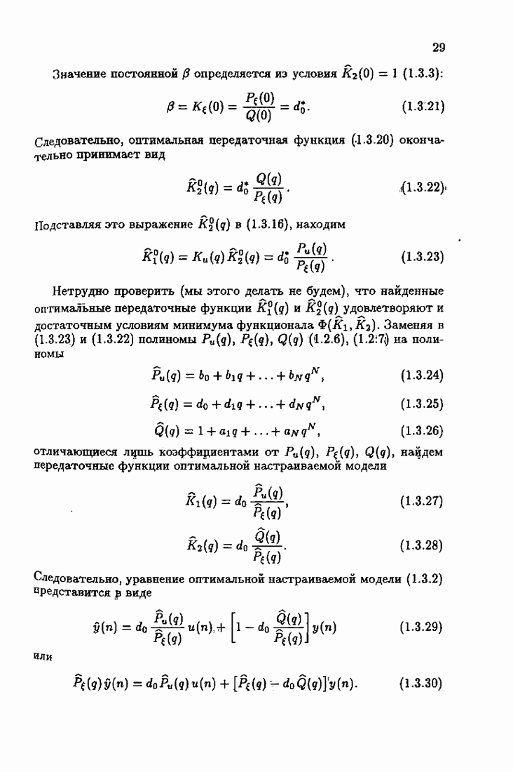 — характеристический полином модели. Уравнение оптимальной настраиваемой модели можно представить также в виде