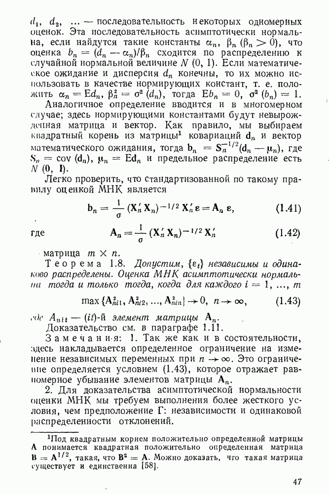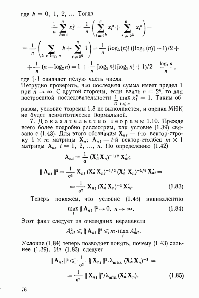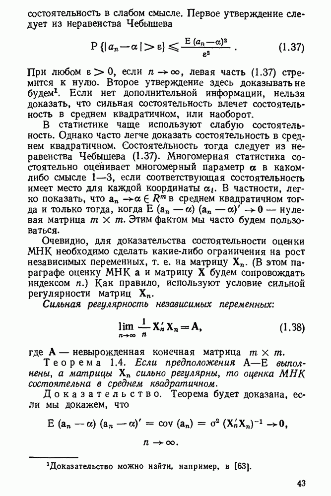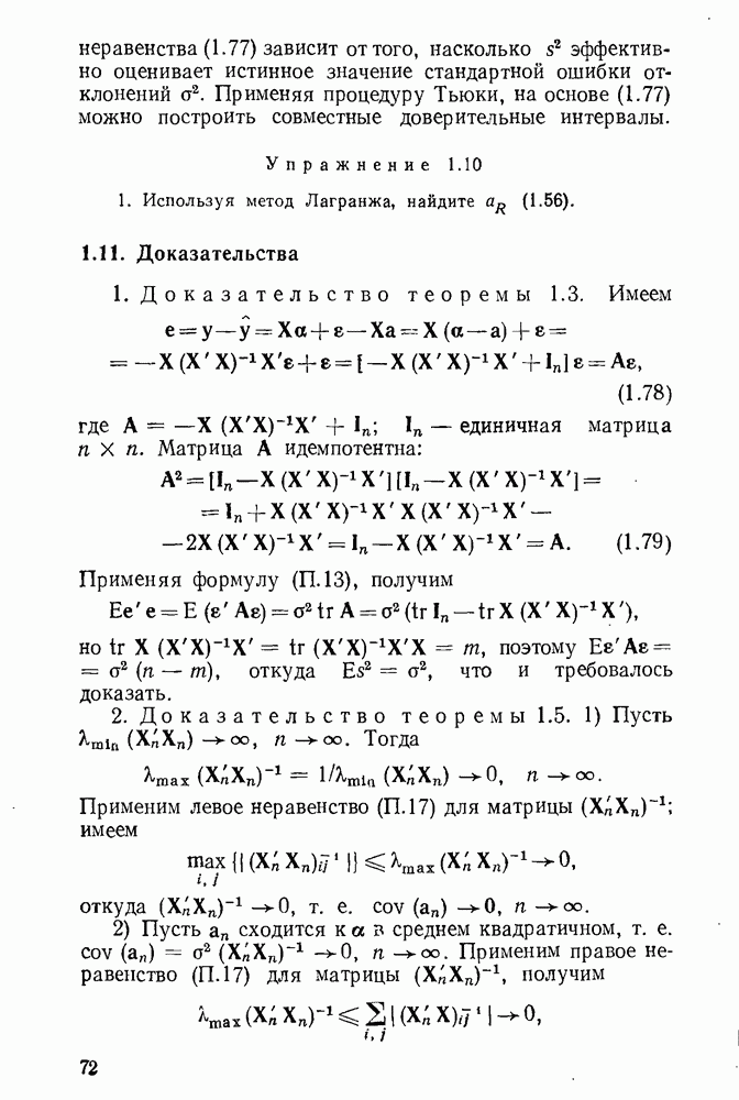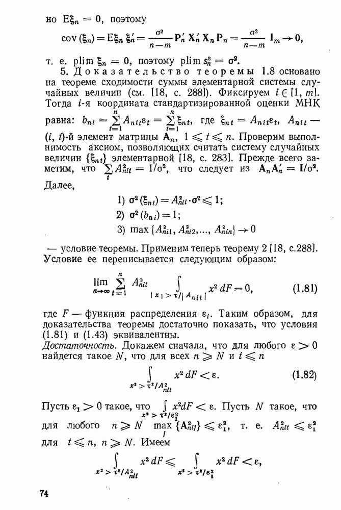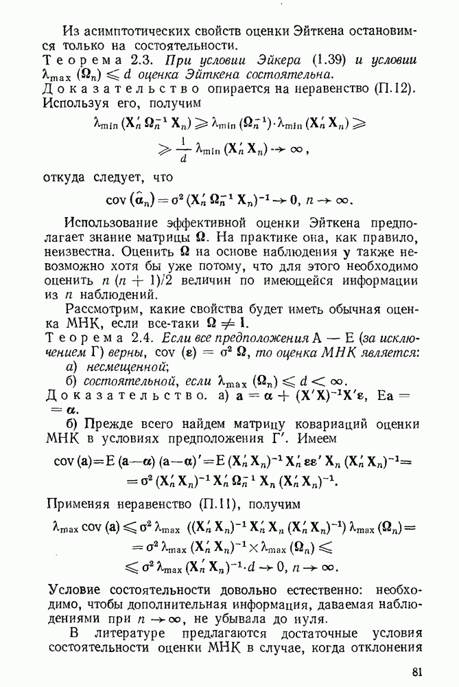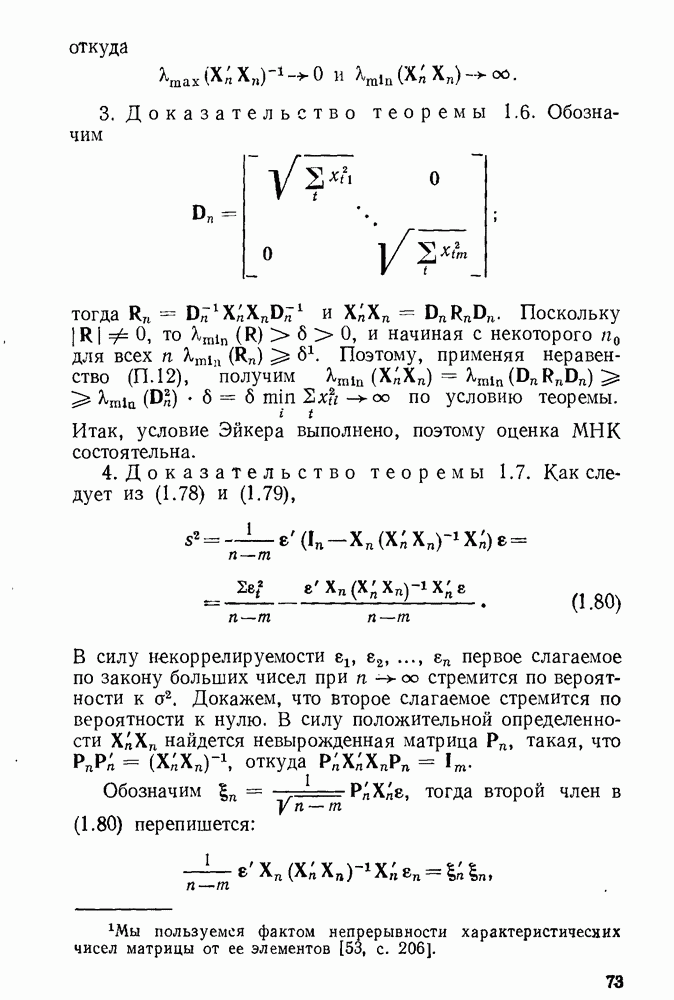 тогда Итак, условие Эйкера выполнено, поэтому оценка МНК состоятельна. 4. Доказательство теоремы 1.7. Как следует из (1.78) и (1.79),