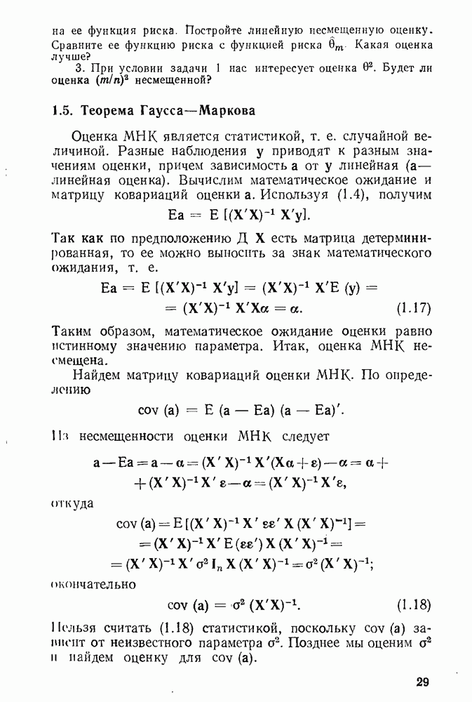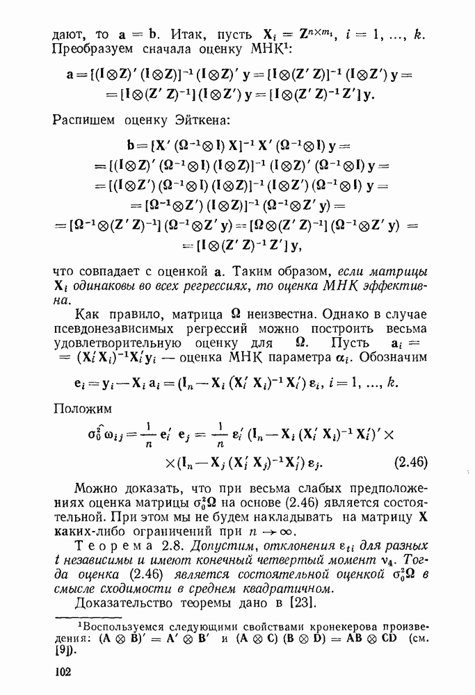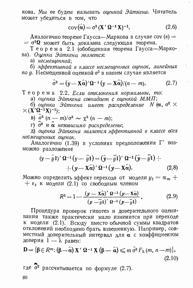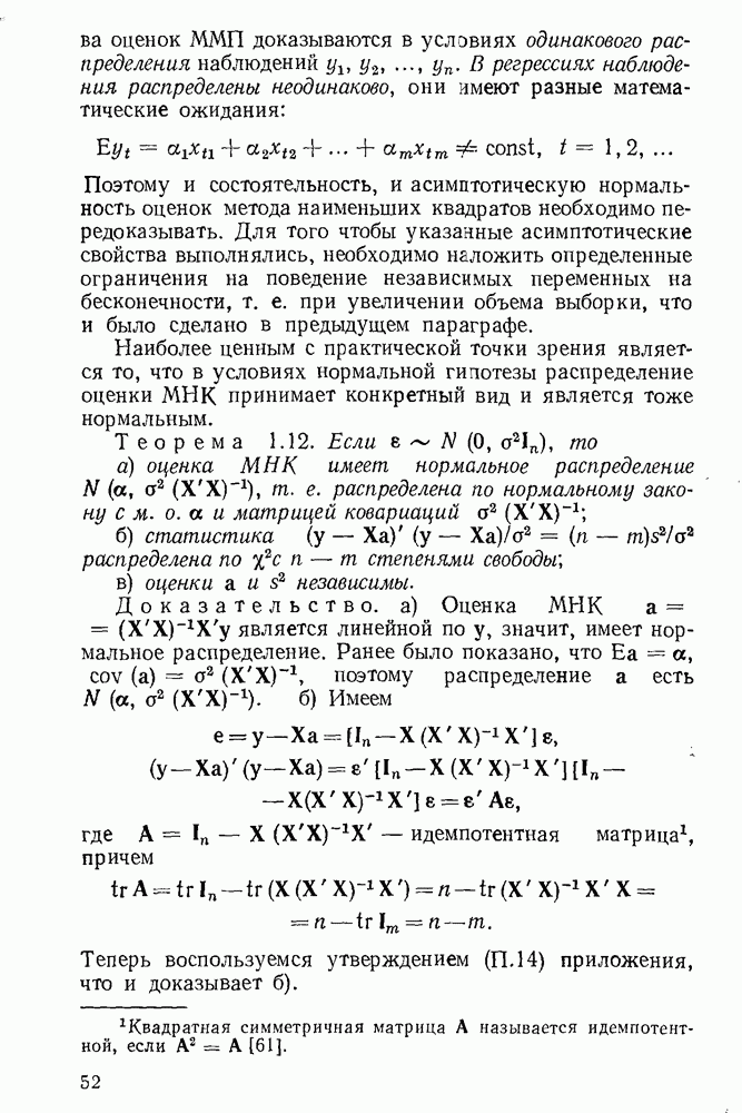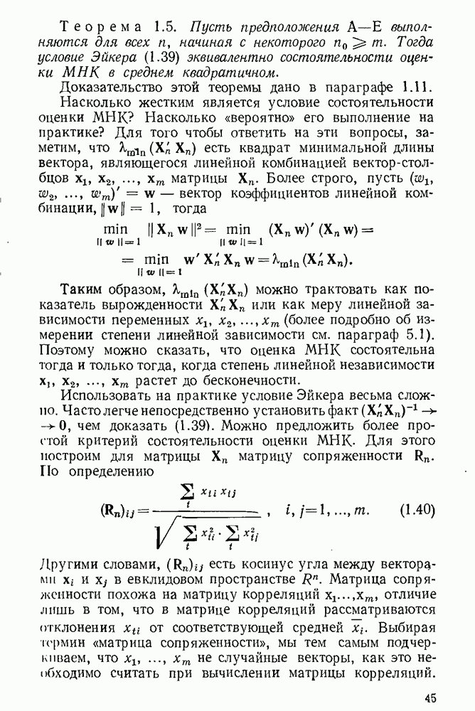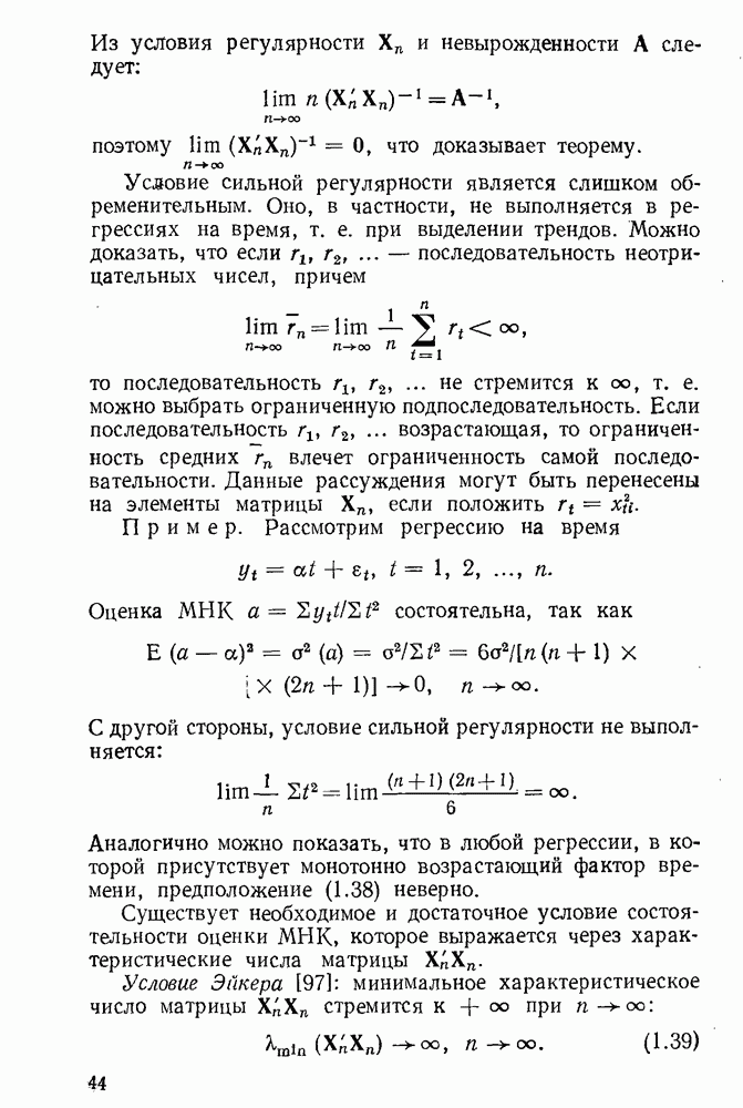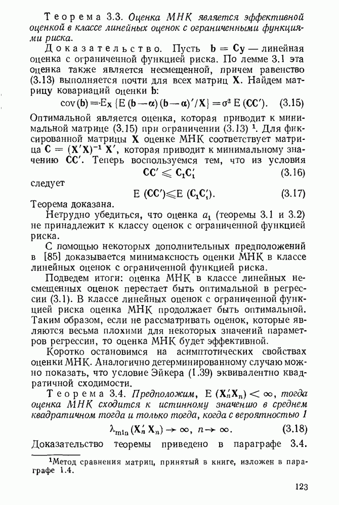 тогда Итак, условие Эйкера выполнено, поэтому оценка МНК состоятельна. 4. Доказательство теоремы 1.7. Как следует из (1.78) и (1.79),