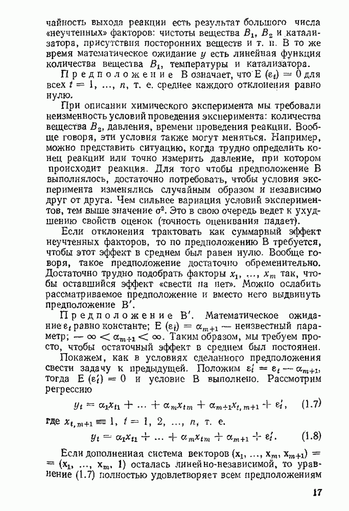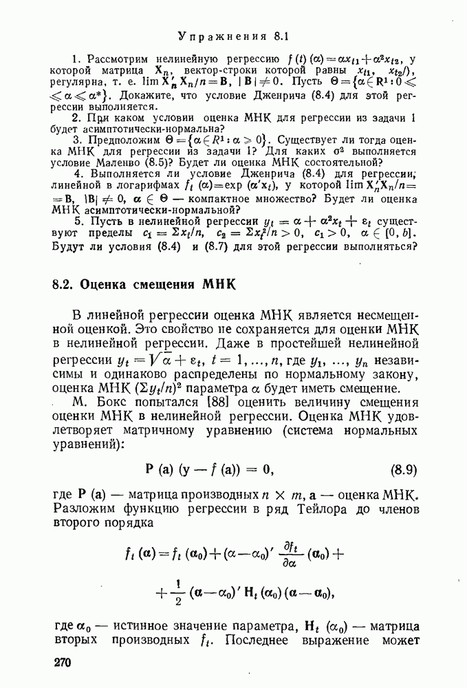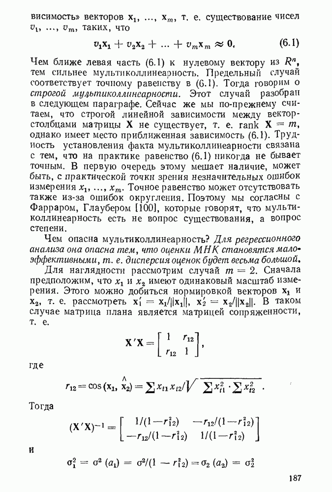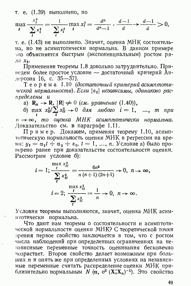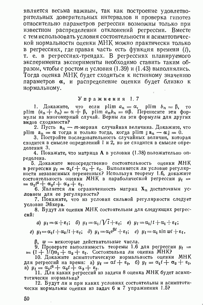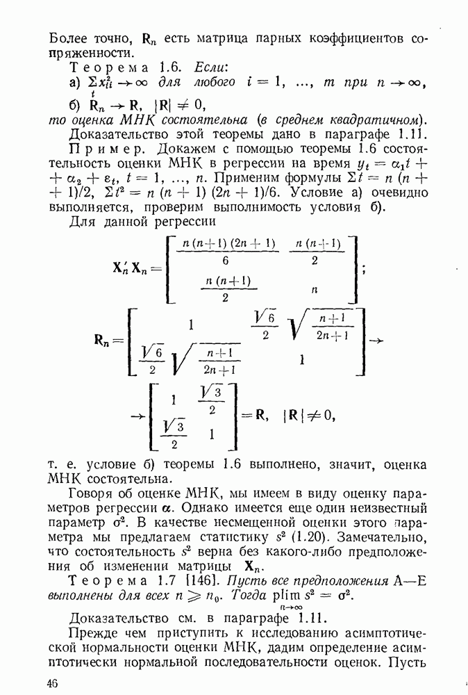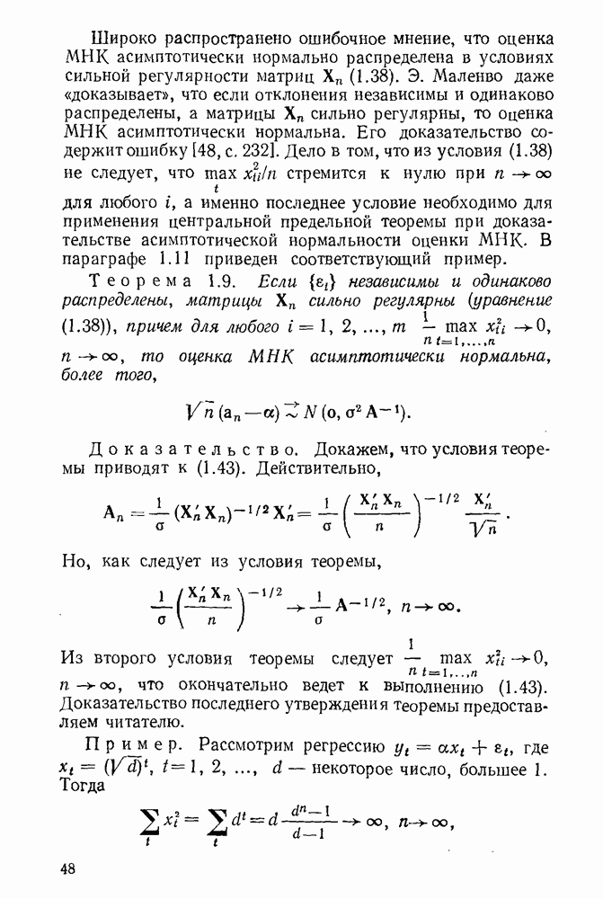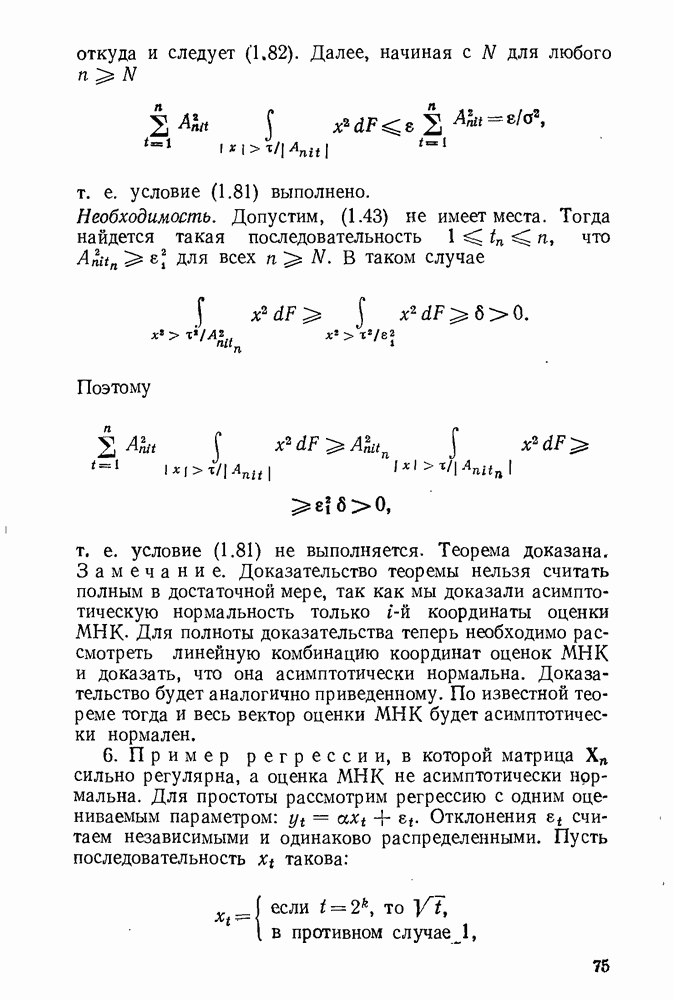 т. е. условие (1.81) не выполняется. Теорема доказана. Замечание. Доказательство теоремы нельзя считать полным в достаточной мере, так как мы доказали асимптотическую нормальность только 6. Пример регрессии, в которой матрица