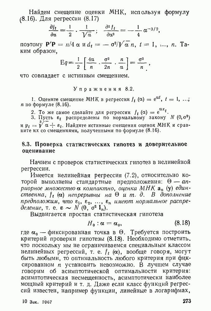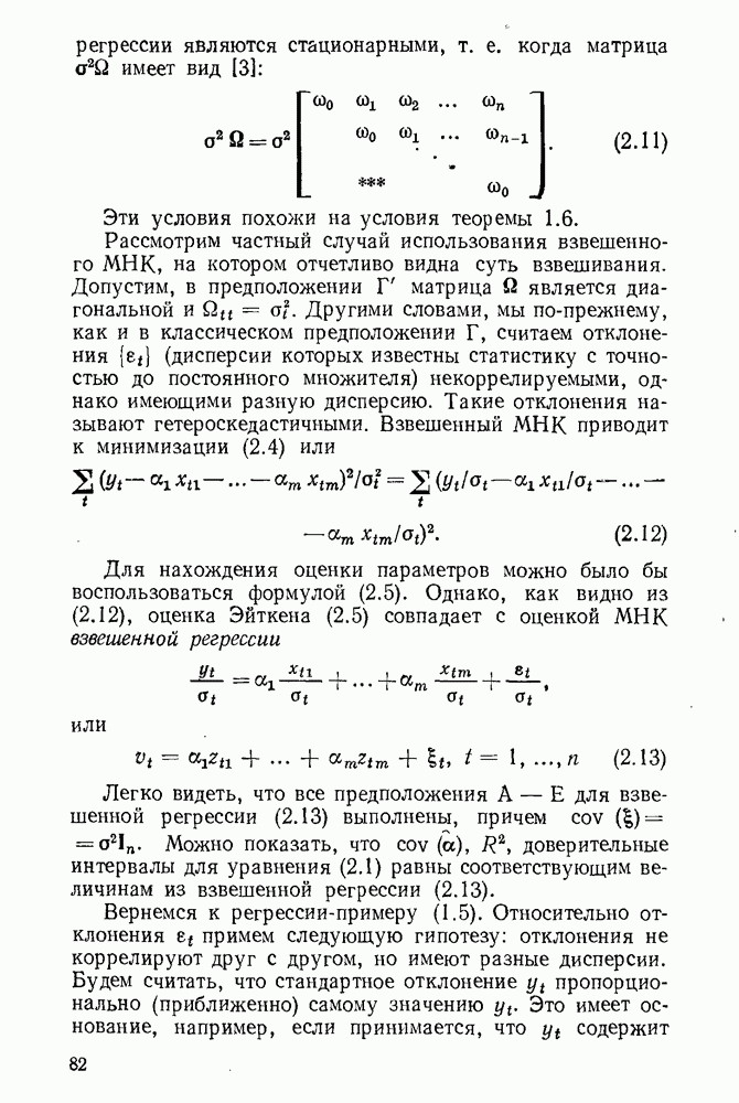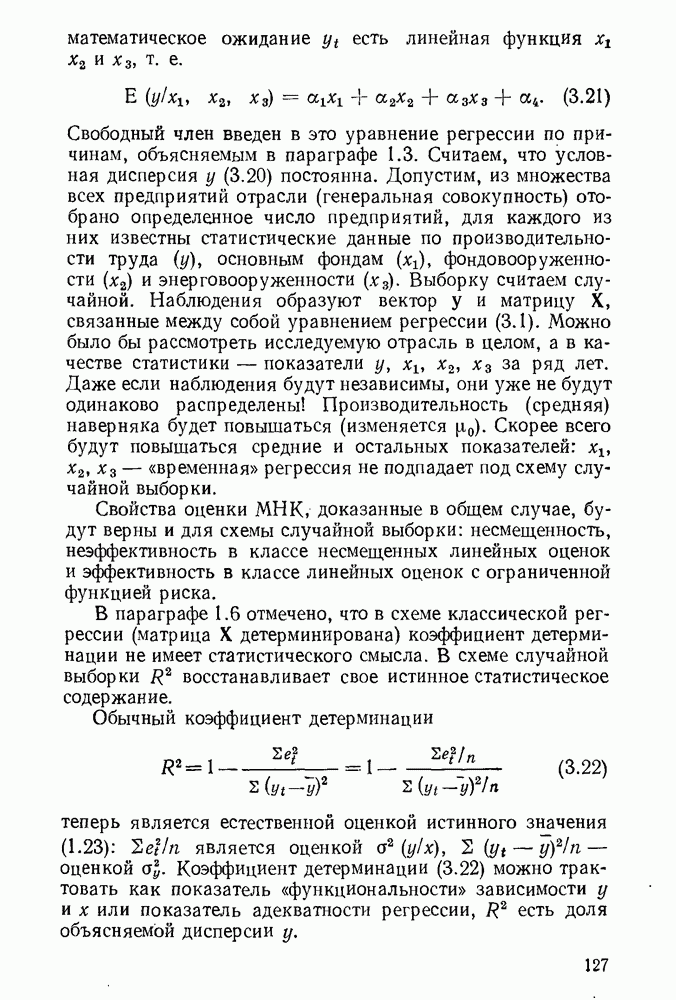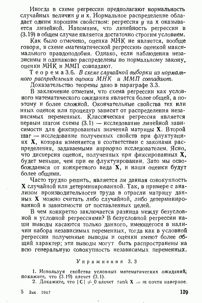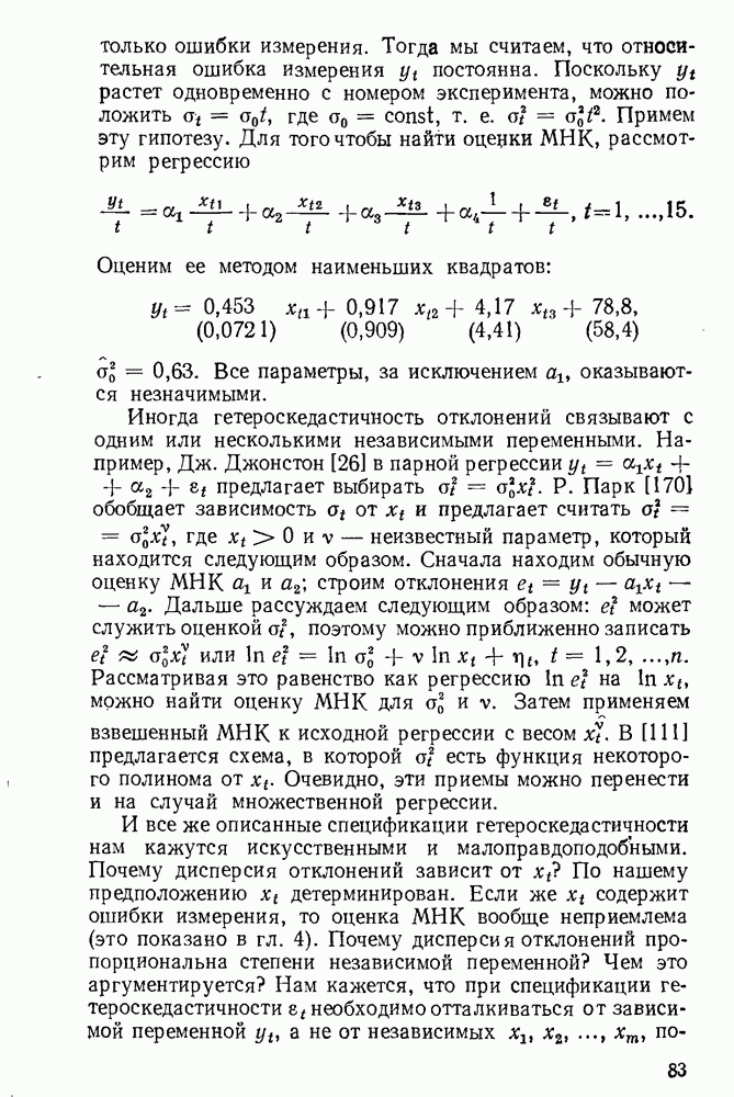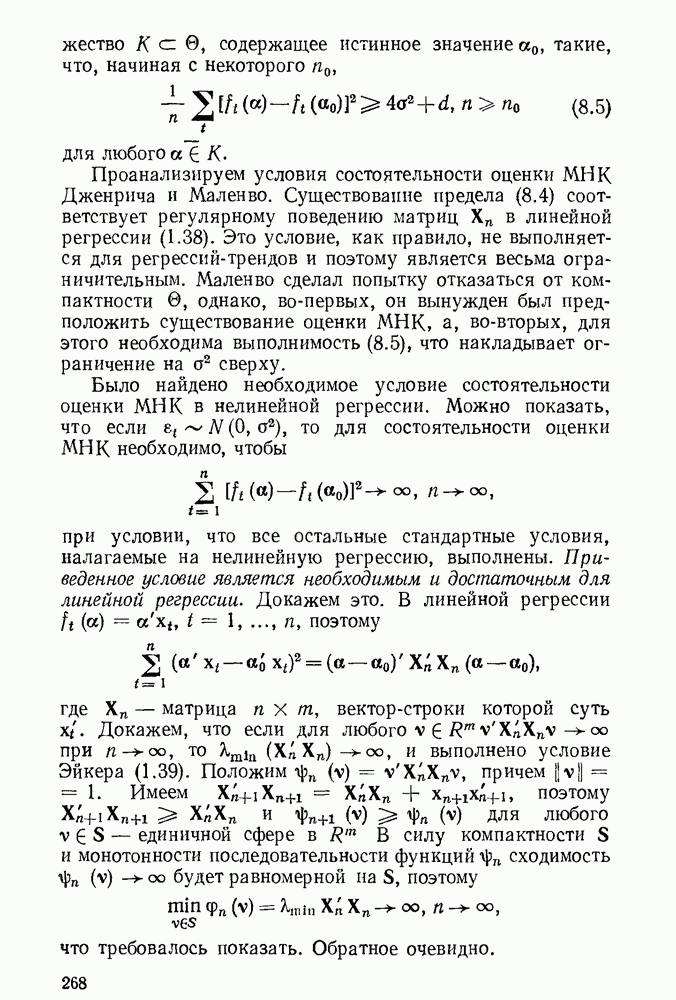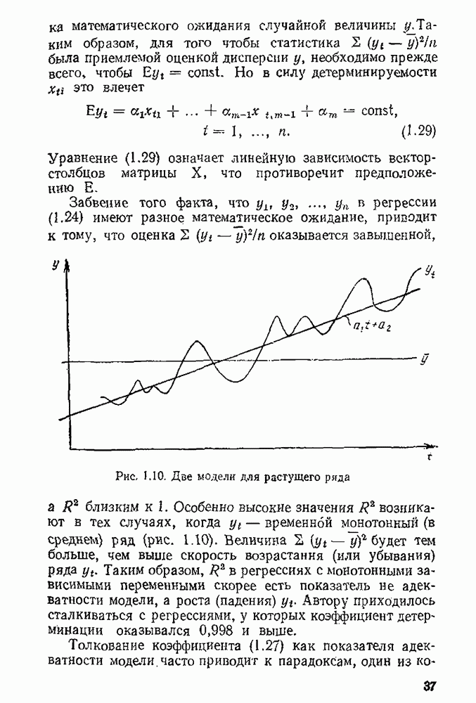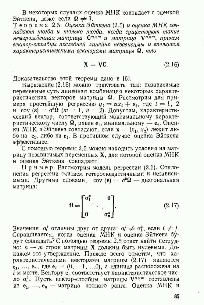 т. е. условие (1.81) не выполняется. Теорема доказана. Замечание. Доказательство теоремы нельзя считать полным в достаточной мере, так как мы доказали асимптотическую нормальность только 6. Пример регрессии, в которой матрица
