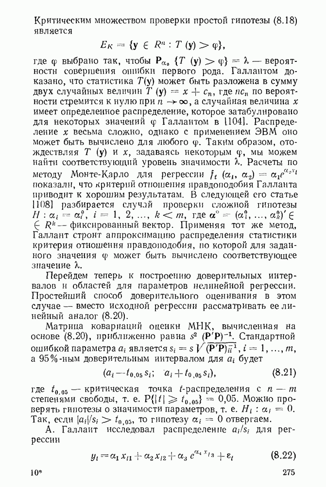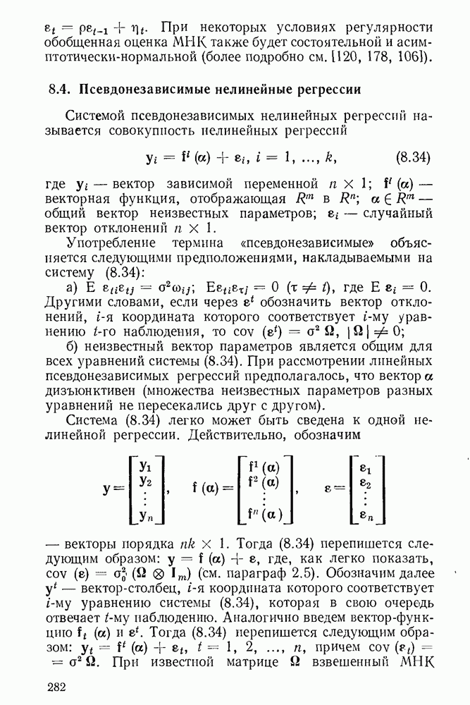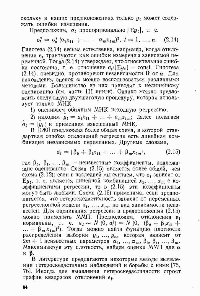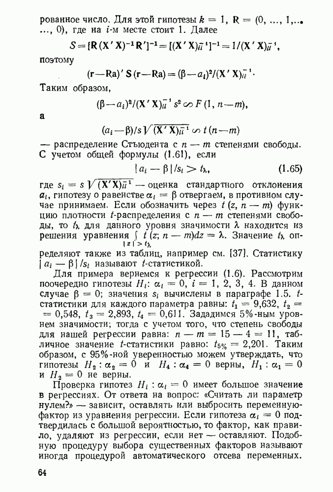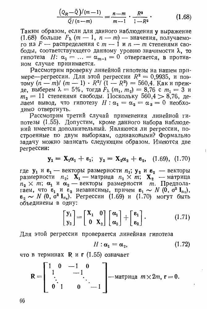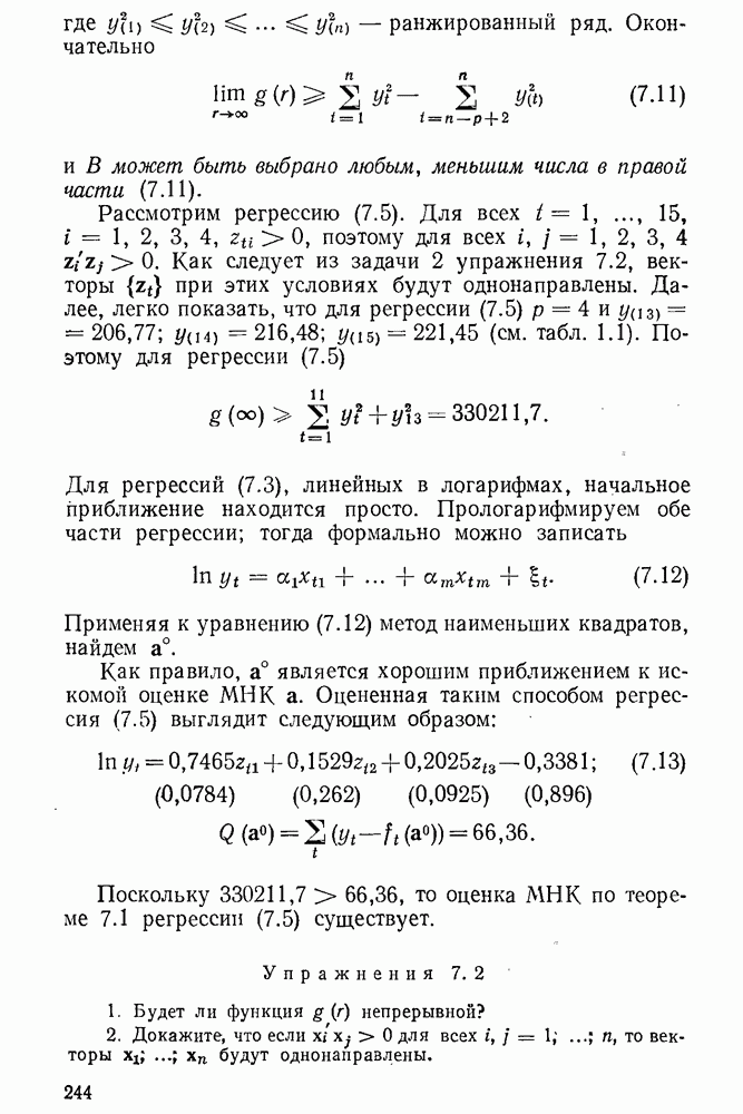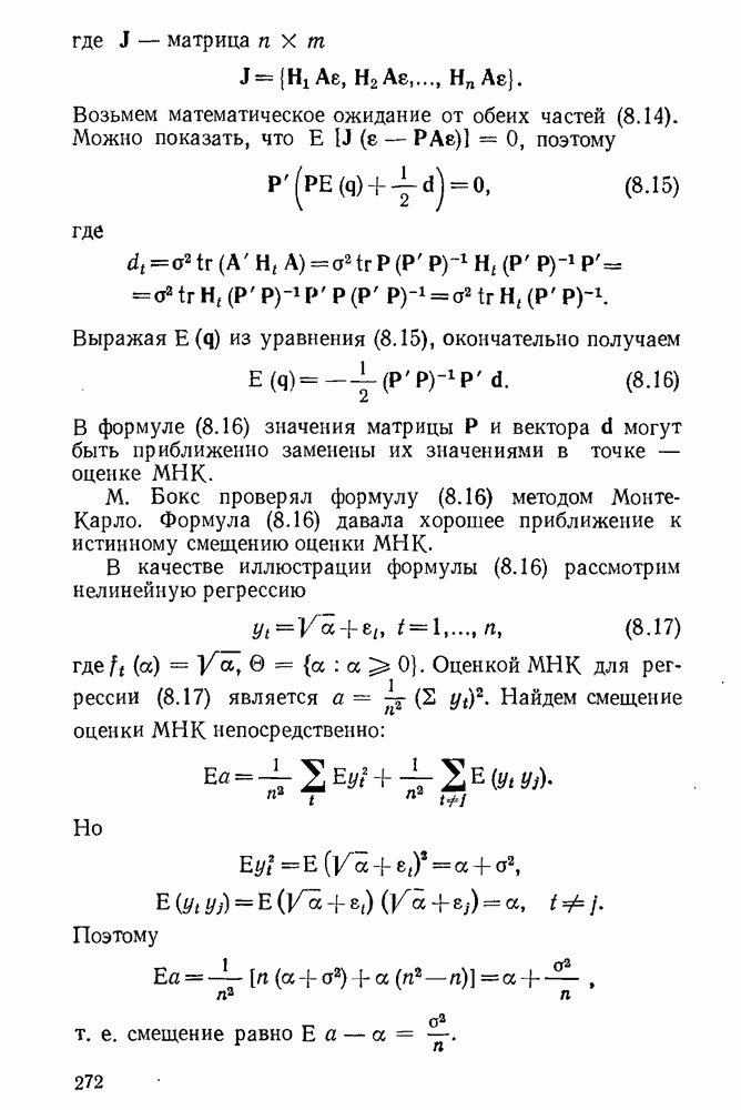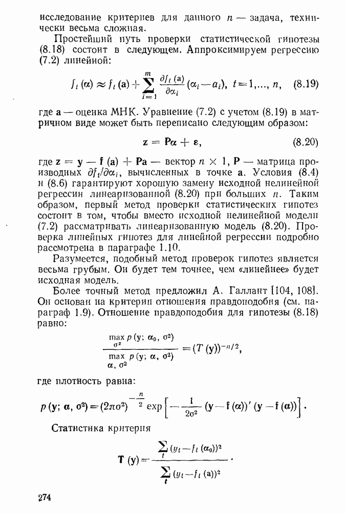 т. е. условие (1.81) не выполняется. Теорема доказана. Замечание. Доказательство теоремы нельзя считать полным в достаточной мере, так как мы доказали асимптотическую нормальность только 6. Пример регрессии, в которой матрица