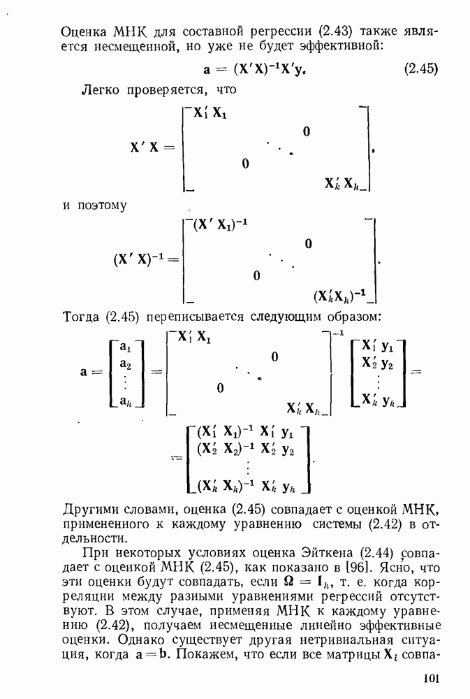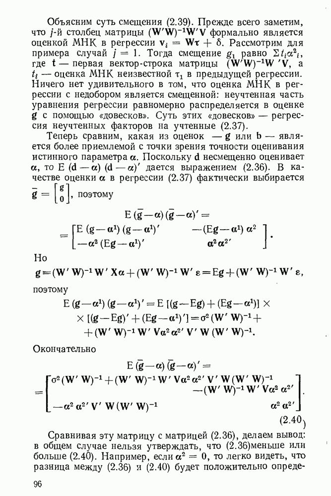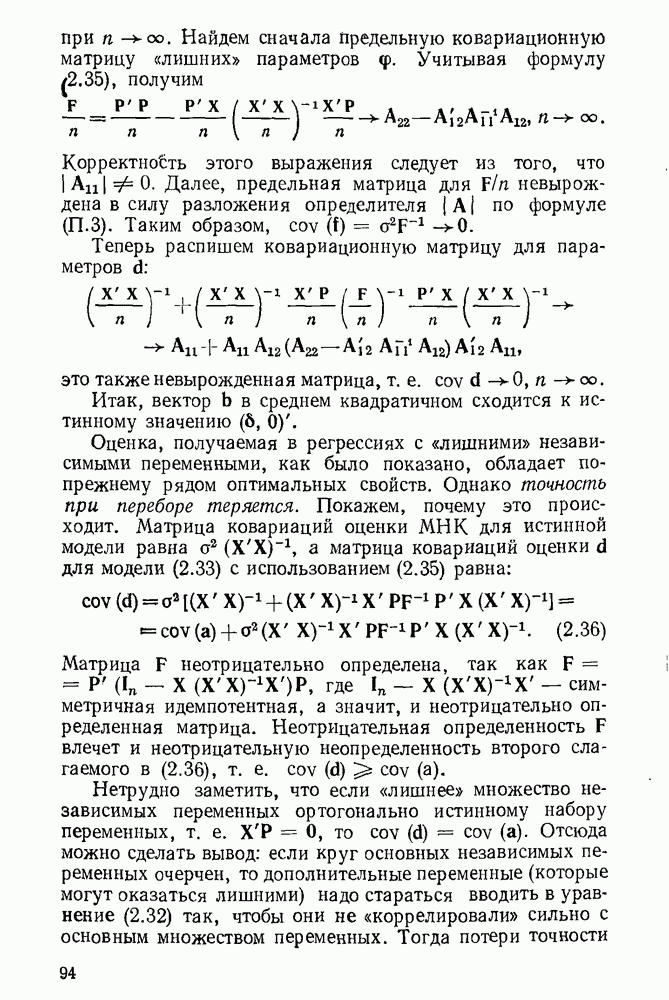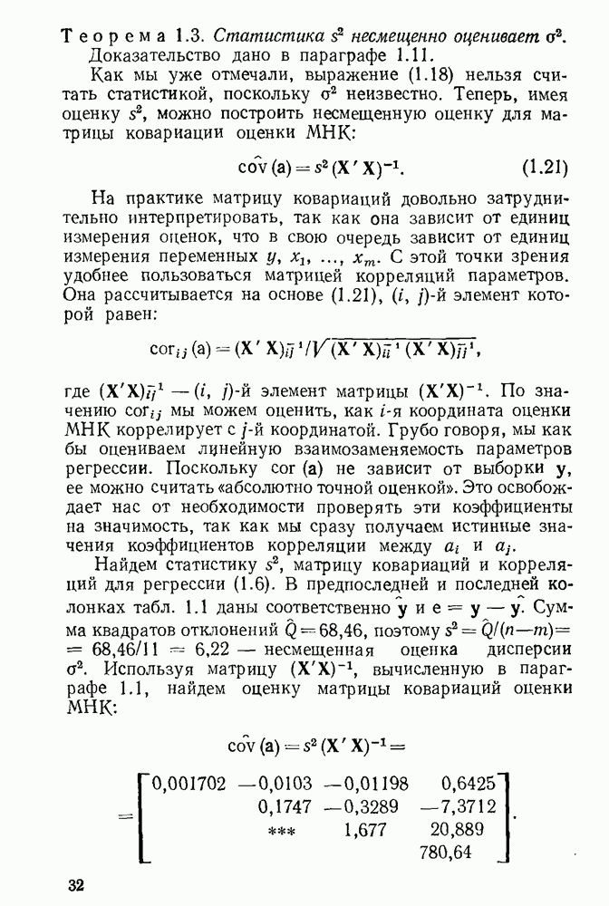 Но матрица ковариации оценки МНК как раз равна