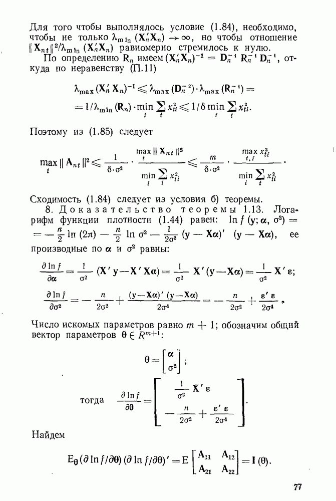 Сходимость (1.84) следует из условия б) теоремы. 8. Доказательство теоремы 1.13. Логарифм функции плотности (1.44) равен: