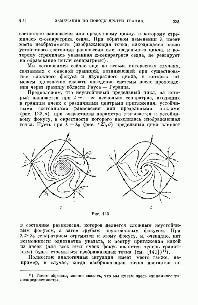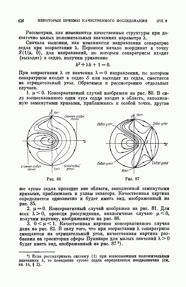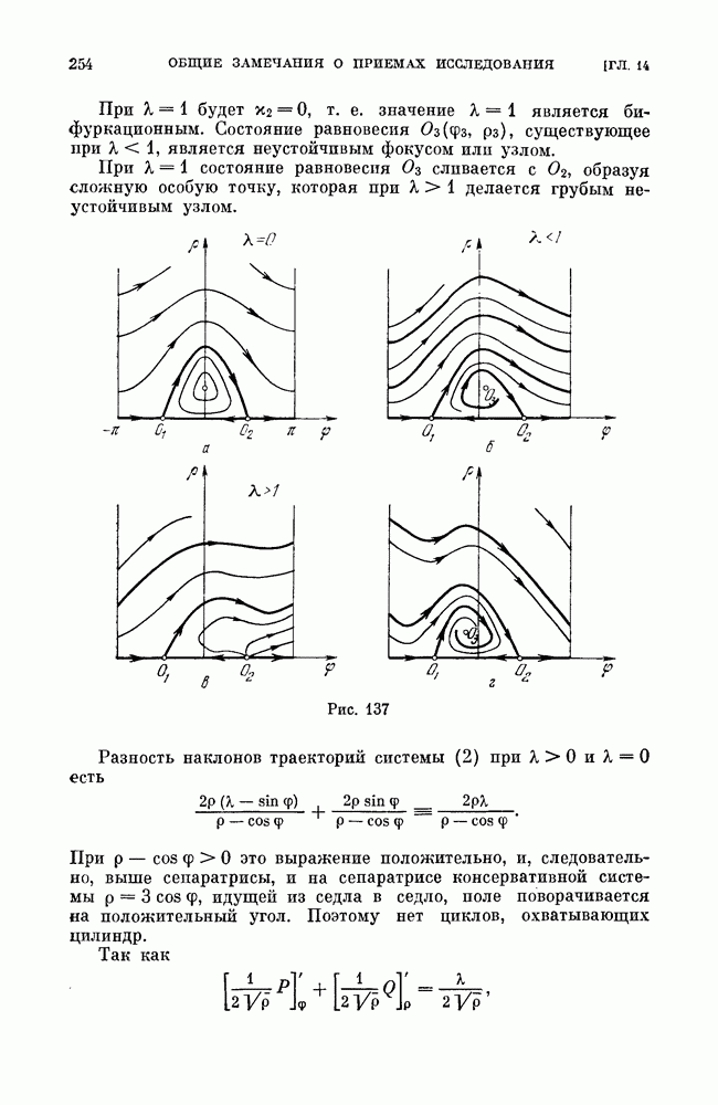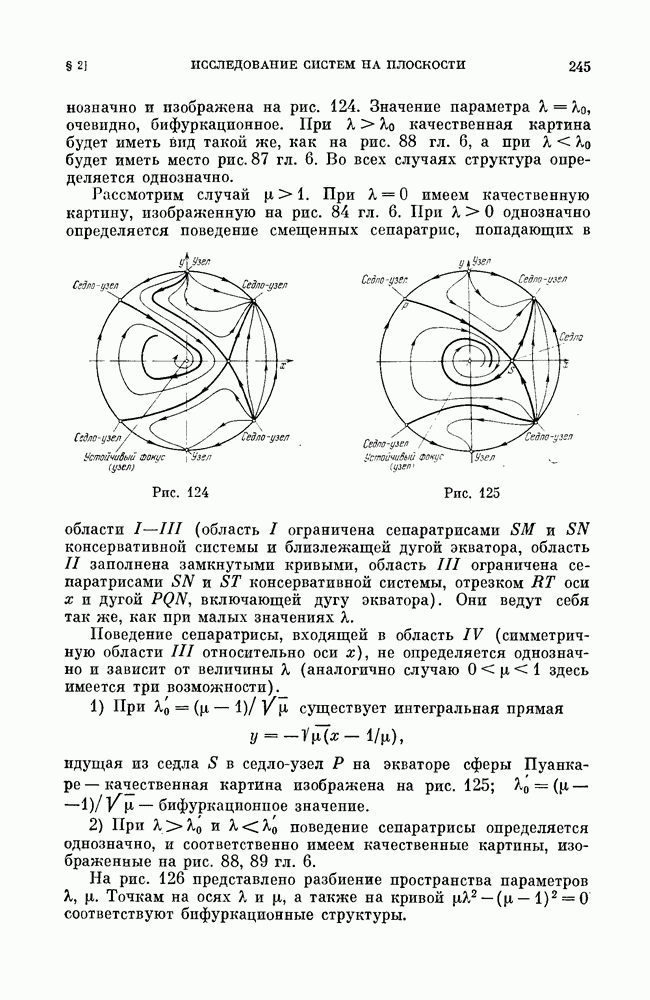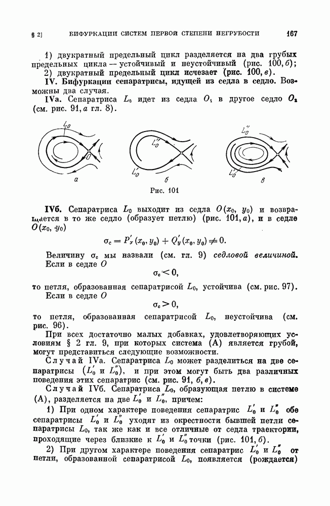 г) сепаратрису, идущую из седла в седло, причем в случае, когда сепаратриса идет из седла