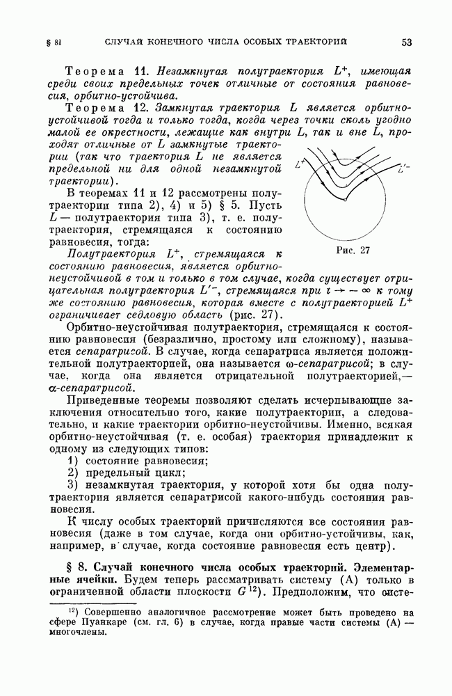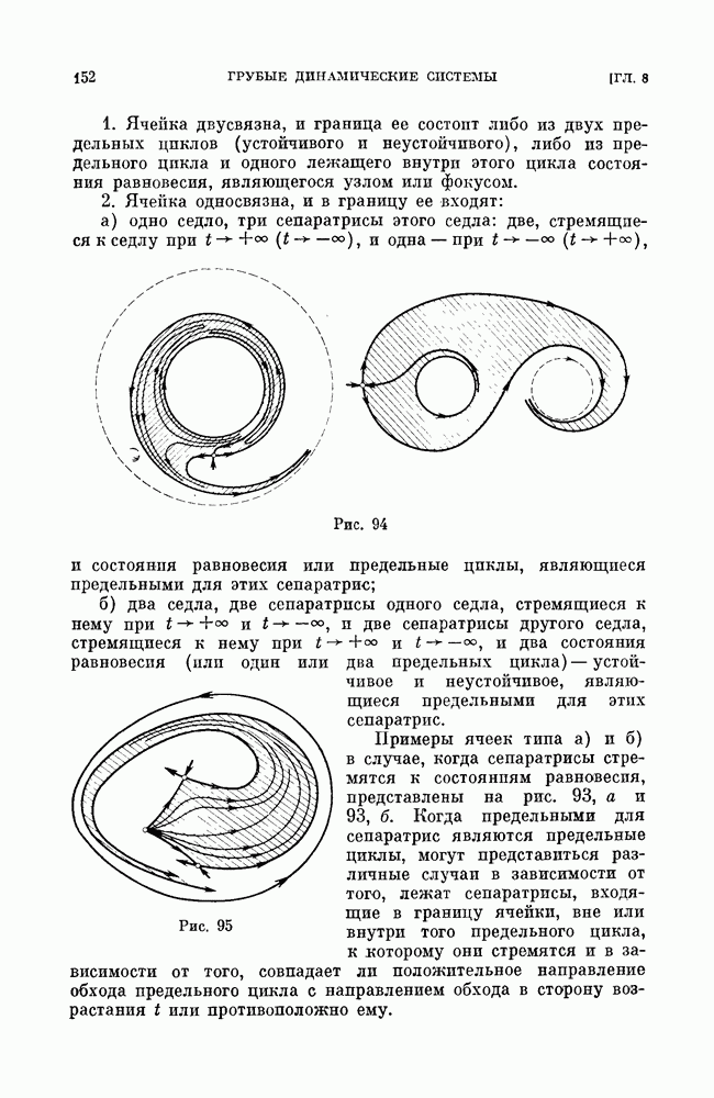 2) Сепаратриса седла не может иметь в качестве своей предельной траектории сепаратрису, идущую из седла в то же седло (образующую петлю, либо не охватывающую, либо охватывающую цилиндр).