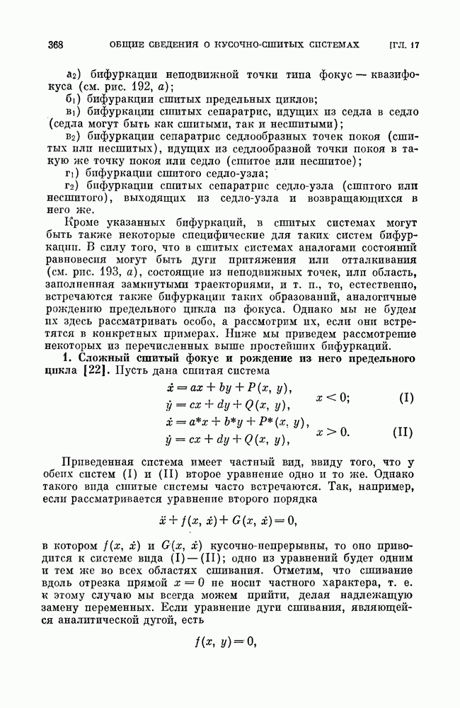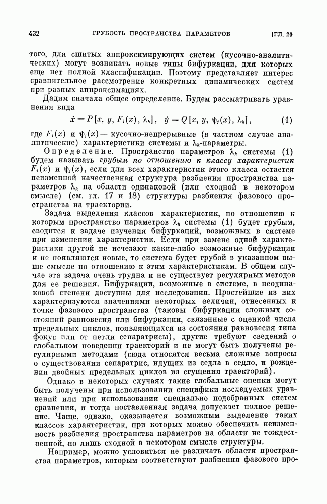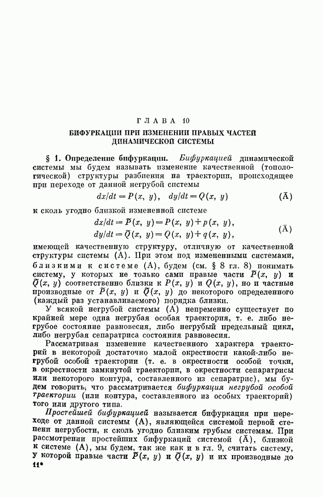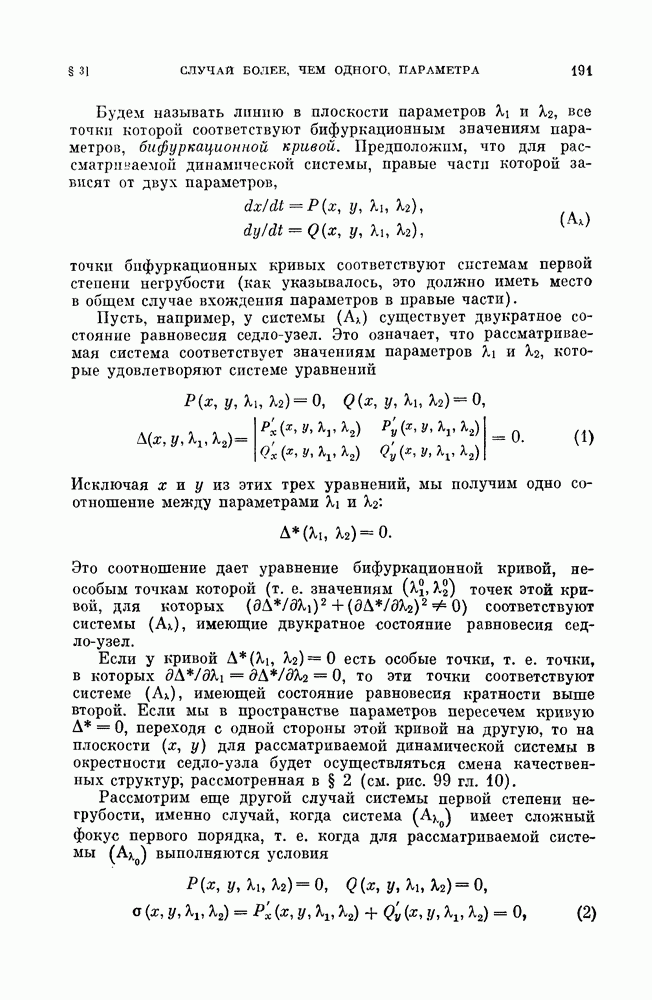 бифуркационному значению параметра, в случае, когда рассматривается система, правые части которой зависят от параметра) является системой первой степени негрубости, те же, что и описанные в гл. 10, со следующими очевидными добавлениями.