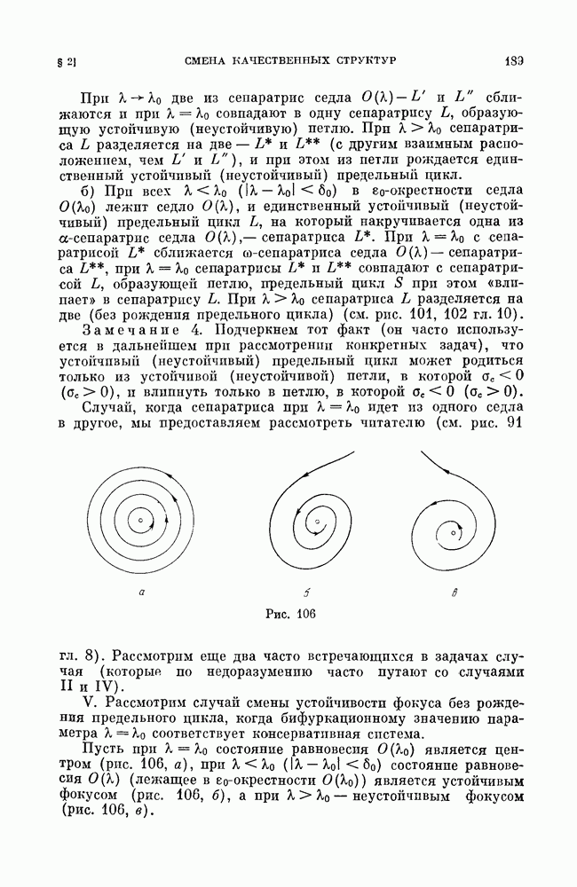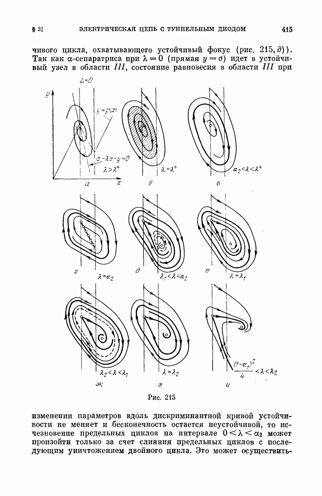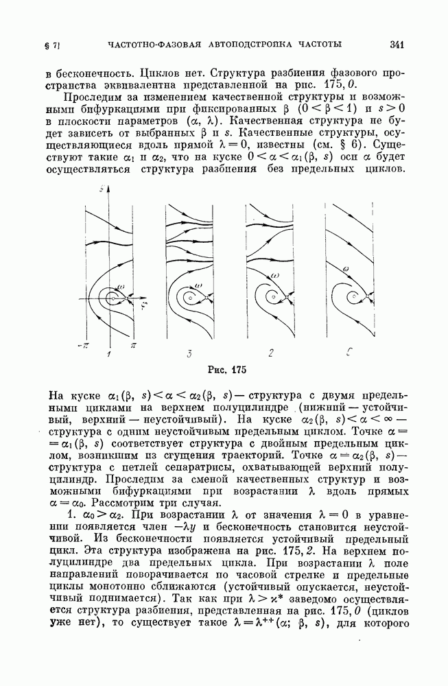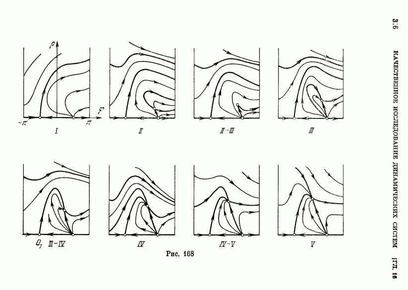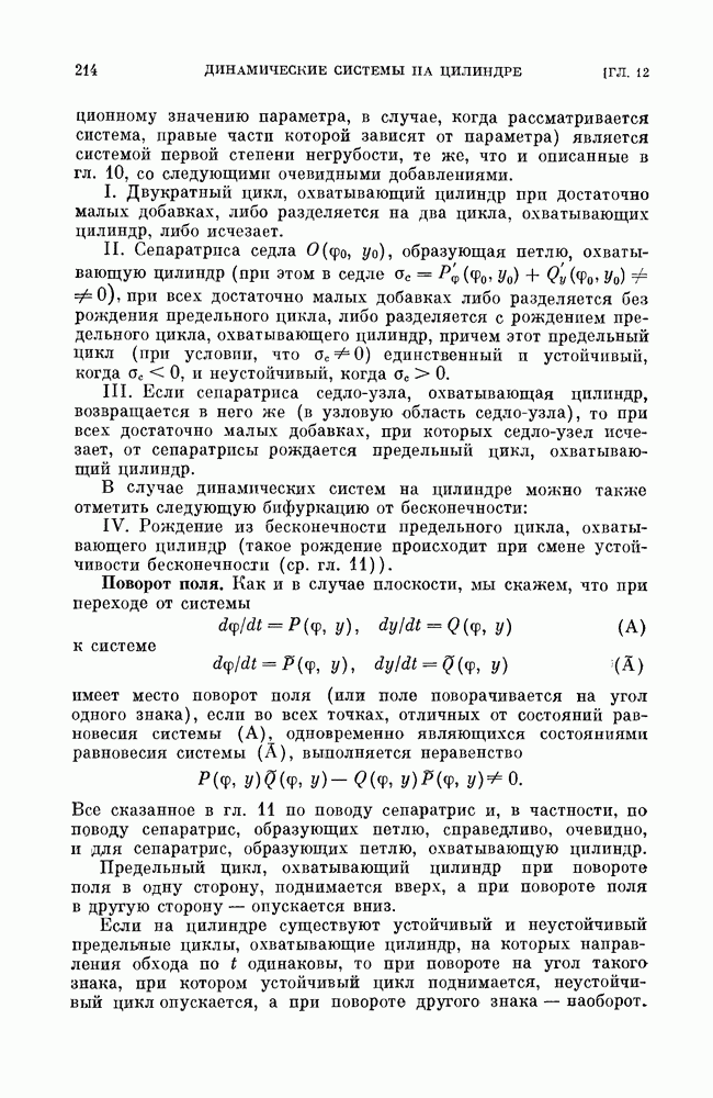 IV. Рождение из бесконечности предельного цикла, охватывающего цилиндр (такое рождение происходит при смене устойчивости бесконечности (ср. гл. 11)).