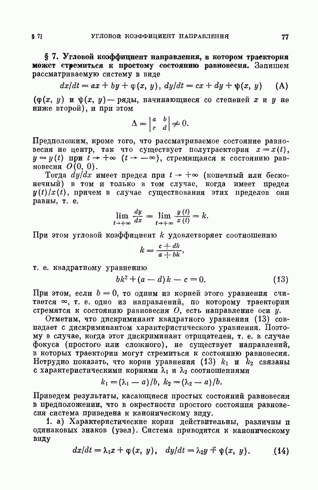имеет место поворот поля (или поле поворачивается на угол одного знака), если во всех точках, отличных от состояний равновесия системы (А), одновременно являющихся состояниями равновесия системы (А), выполняется неравенство