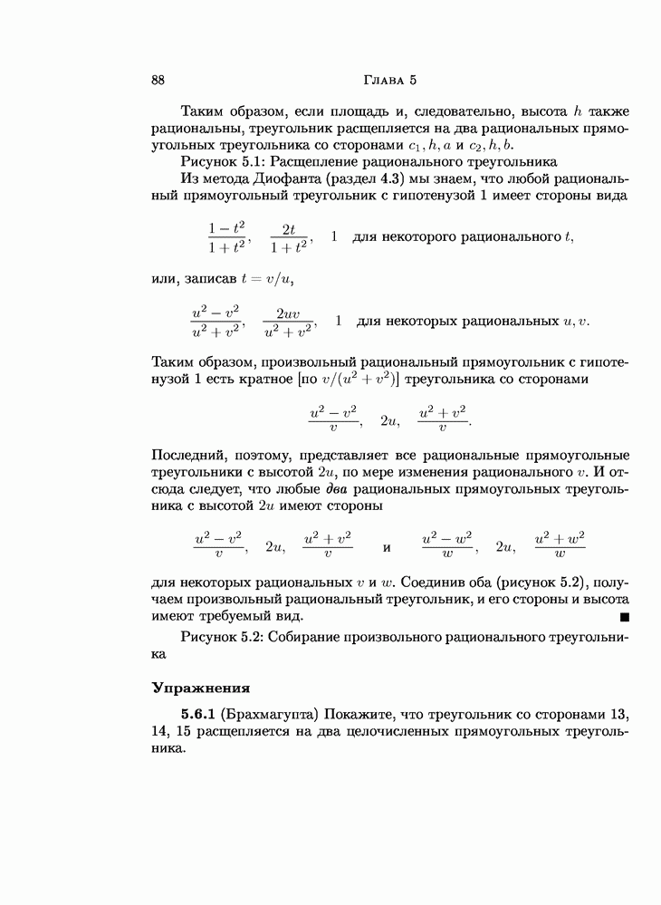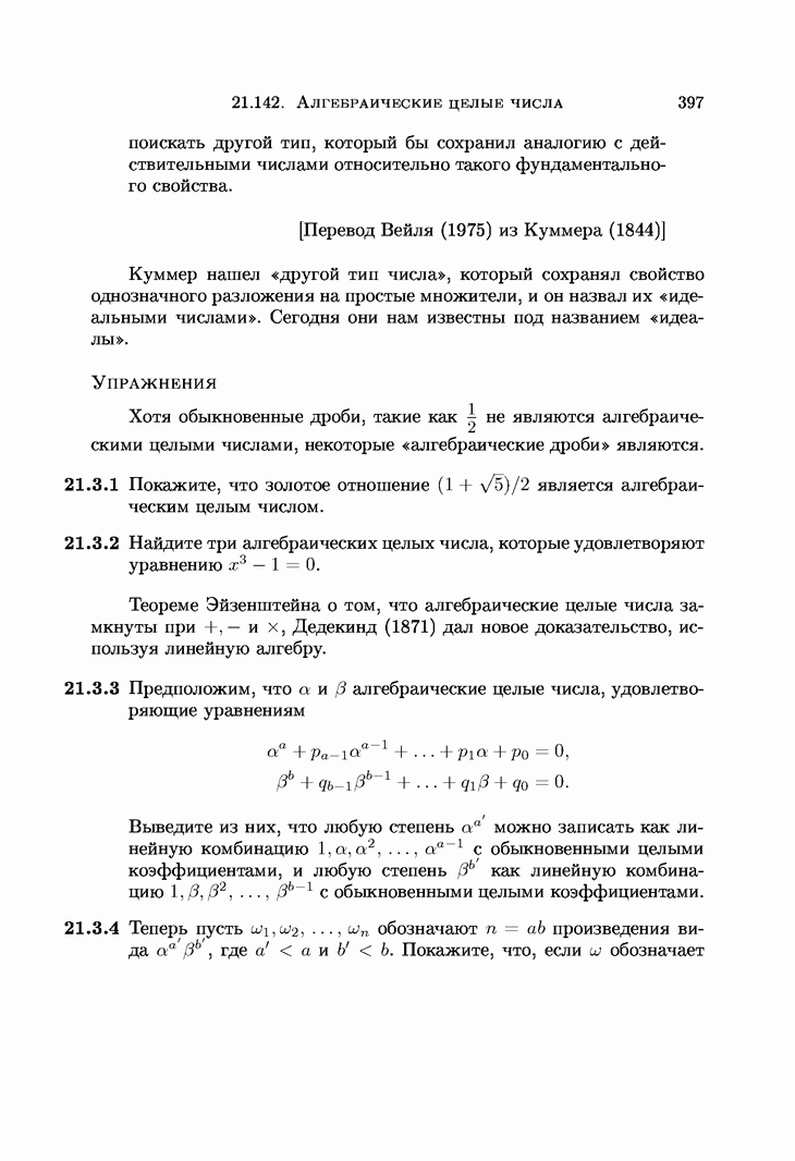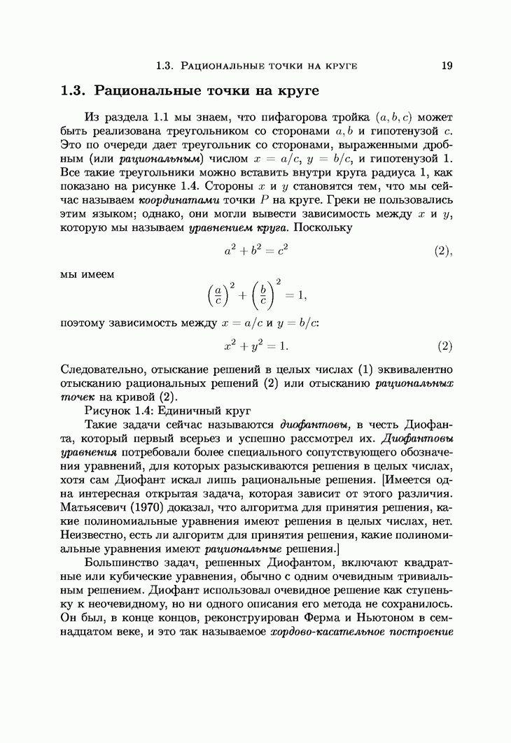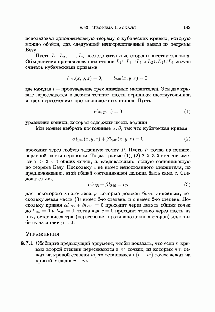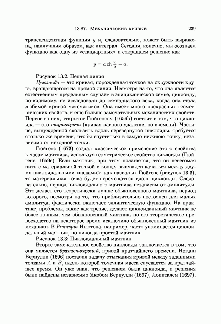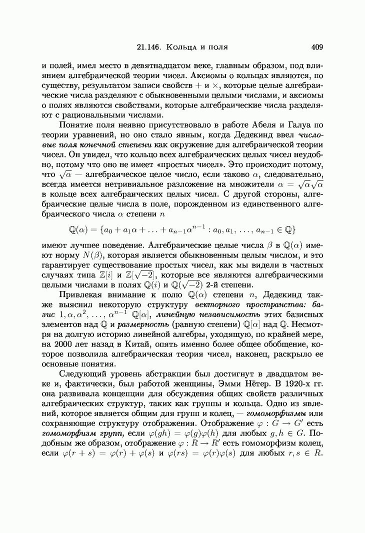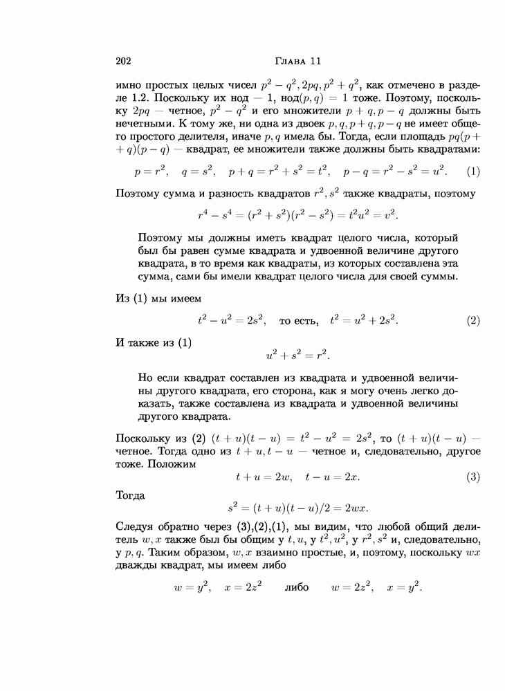 22.153. Поверхности и плоскостиВ разделе 16.5 мы отметили, что эллиптическая функция определяет отображение плоскости на тор. Такие отображения также интересны в топологическом контексте, где они называются универсальными покрытиями. Вообще, отображение Еще один интересный пример покрытия, который мы уже встречали, — отображение сферы на проективную плоскость, данное Клейном (1874) (раздел 8.5). Это отображает посылает каждую пару антиподальных точек сферы в одну и ту же точку проективной плоскости, и, следовательно, оно является гомеоморфизмом, когда ограничено любой частью сферы, меньшей, чем полусфера. Еще один пример — покрытие псевдосферы сектором орицикла (раздел 18.4) Бельтрами (1868а). Топологически, это покрытие — такое же, как покрытие полуцилиндра полуплоскостью (рисунок 22.9). Все эти покрытия универсальны в том смысле, что поверхность покрытия Рисунок 22.9: Покрытие цилиндра Пример неуниверсального покрытия — покрытие тора цилиндром, интуитивно похоже на бесконечную змею, глотающую свой собственный хвост (рисунок 22.10). Оно неуниверсально, потому что цилиндр можно, в свою очередь, покрыть плоскостью, точно также как полуцилиндр покрыт полуплоскостью на рисунке 22.9. Действительно, составляя композицию покрытий плоскость Рисунок 22.10: Покрытие тора Поскольку сфера может быть покрыта только собой, первые интересные примеры покрытий — покрытия ориентируемых поверхностей рода поверхность можно дважды покрыть ориентируемой поверхностью тагам же образом, каким проективная плоскость покрыта сферой, поэтому главное, что нам нужно понять, — универсальное покрытие ориентируемых поверхностей рода Основная идея появилась благодаря Шварцу, и стала общеизвестной из письма Клейна Пуанкаре [Клейн (1882а)]. Для того чтобы построить универсальное покрытие поверхности Рисунок 22.11: Тор и его фундаментальный многоугольник Если взамен мы возьмем бесконечно много отдельных копий Мозаику рисунва 22.12, конечно, можно реализовать квадратами в евлидовой плоскости. Мы, поэтому, накладываем евклидову геометрию на тор, определяя, что расстояние между (достаточно близгами) точвами на торе является евклидовым расстоянием между соответствующими точками прообраза в плоскости. В частности, «прямые линии» (геодезические) на торе являются образами прямых линий в евклидовой плоскости. Конечно, геометрия тора — не вполне геометрия плоскости, поскольку есть замкнутые геодезические, такие как образы отрезков линии a и b. Однако она евклидова, когда ограничена достаточно малыми областями. Например, сумма углов важдого треугольнива на торе равна Рисунок 22.12: Мозаива покрытия тора Для поверхностей рода Рисунок 22.13: Поверхность 2-го рода и ее фундаментальный многоугольник В универсальном покрытии восемь из этих восьмиугольников должны пересекаться в каждой вершине, как восемь углов единственного Рисунок 22.14: Мозаика покрытия 2-го рода Действительно, эта мозаика получена амальгамированием треугольников в мозаике Гаусса (рисунок 18.15). Мозаики для общего рода Упражнения(см. скан)