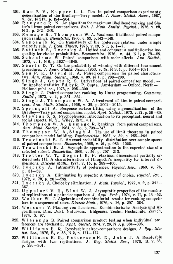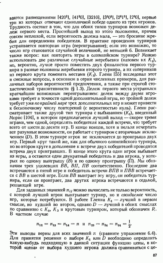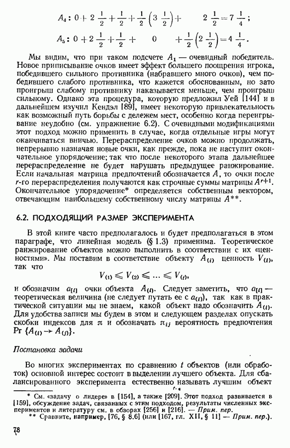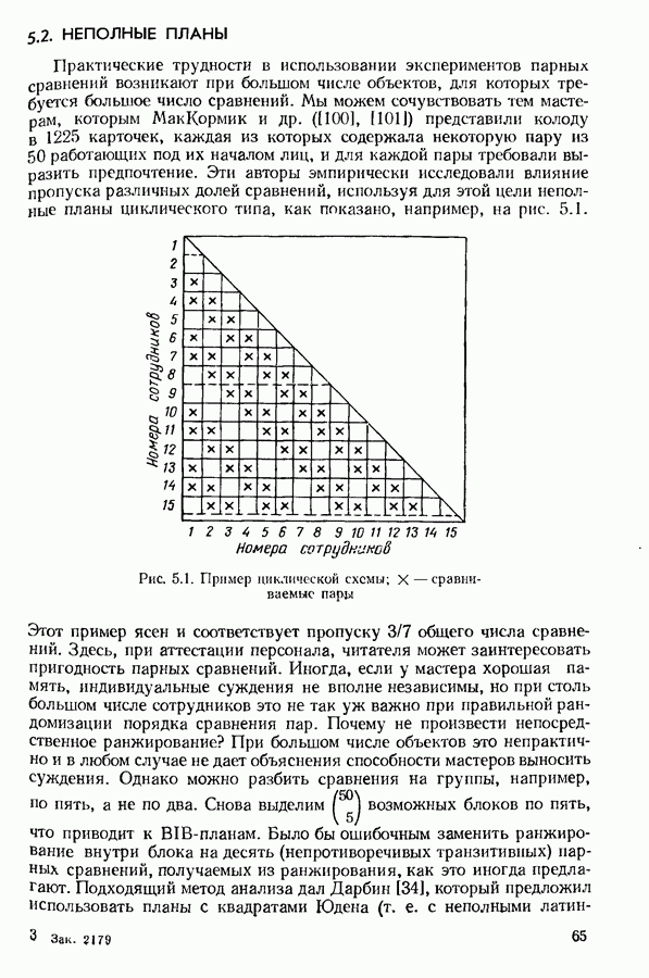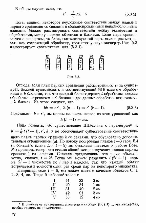 Есть, видимо, некоторое неуловимое соответствие между планами парного сравнения со связями и сбалансированными неполноблочными планами. Можно рассматривать соответствия между экспертами и обработками, между парами объектов и блоками. Если пара сравнивается с экспертом, то блок, соответствующий паре, можно рассматривать как содержащий обработку, соответствующую эксперту. Рис. 5.3 иллюстрирует соответствие для (5.3.1).