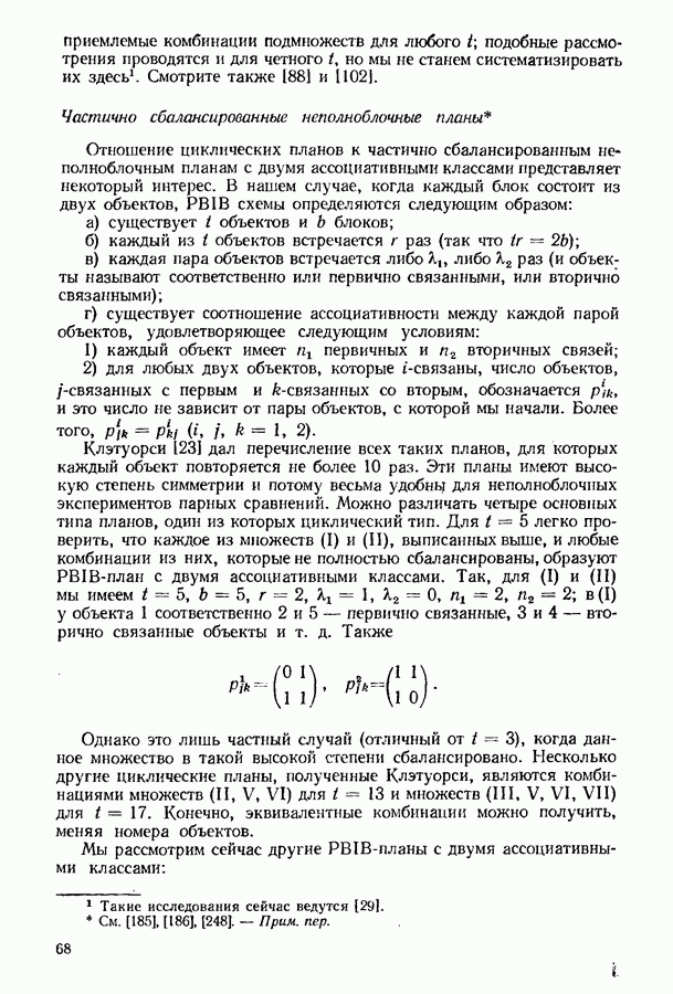 В случае Некоторые из этих планов рассматривались Кендэлом [89], который также обсуждал, насколько хорошо сбалансированы размещения. Упражнения(см. скан)