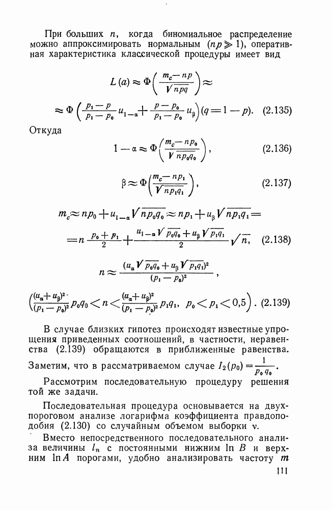 что оправдывает нормальную аппроксимацию. Далее, используя соотношение (2.138), имеем