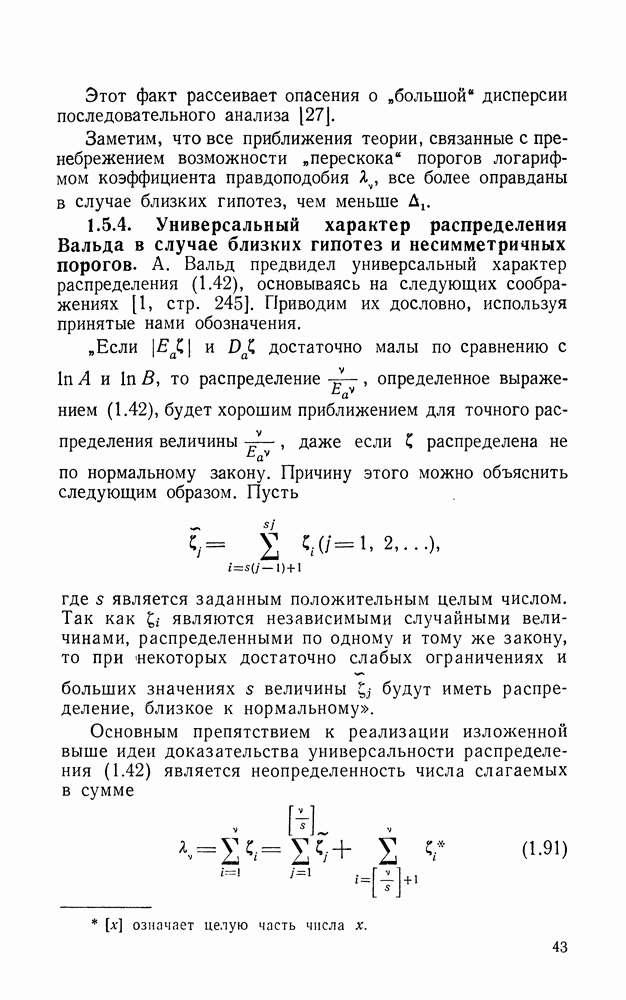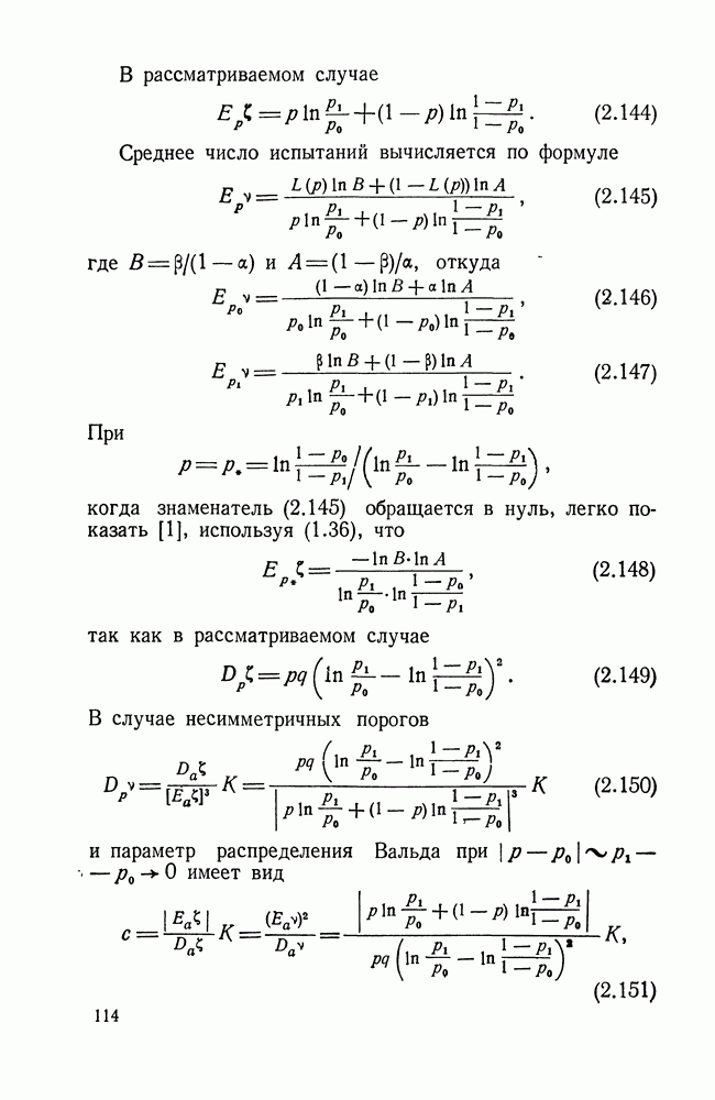 Подсчитаем для этого значение параметра с распределения Вальда по формуле (2.151). Имеем