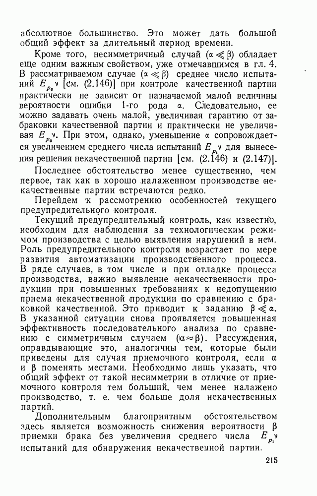 В примерах 1, 2, как и следовало ожидать, в соответствии с результатами гл. 1 для несимметричной ситуации, когда предпочтительнее прием некачественной партии, чем браковка качественной
