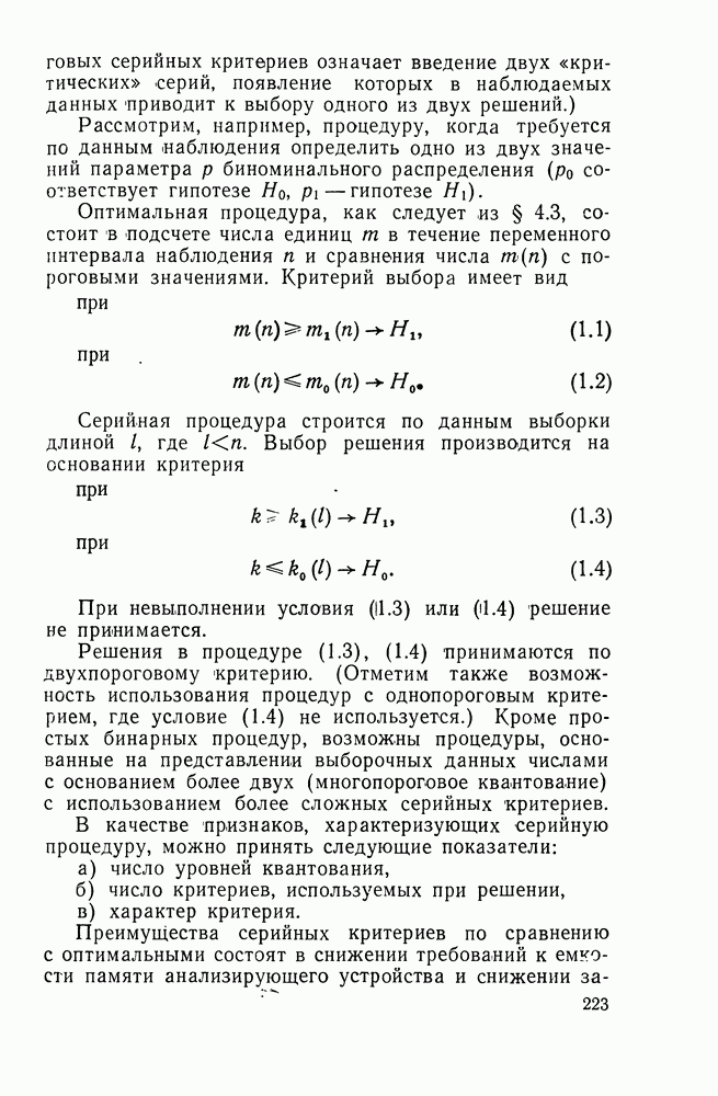 параметрами описанной последовательной процедуры контроля задается соотношениями (2.142) — (2.152).