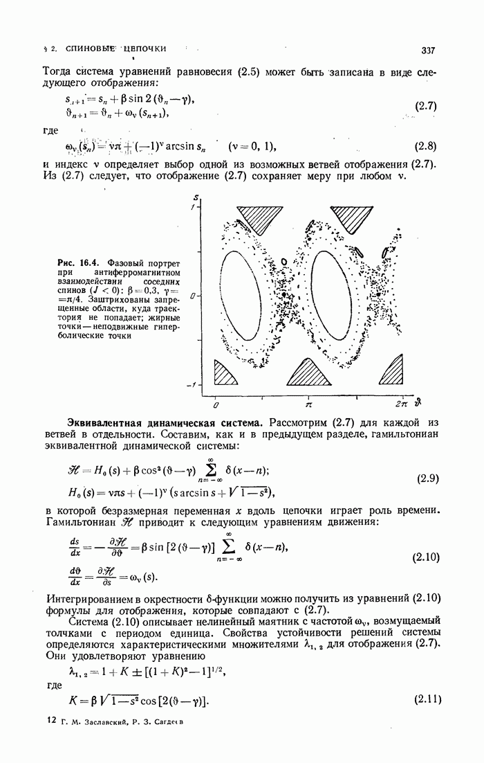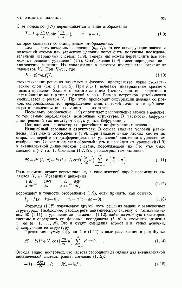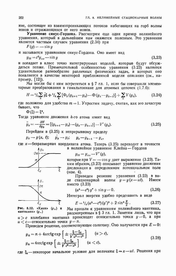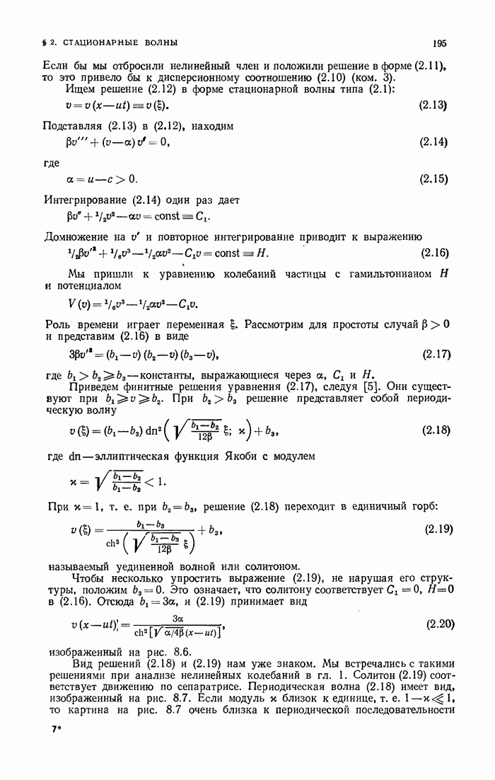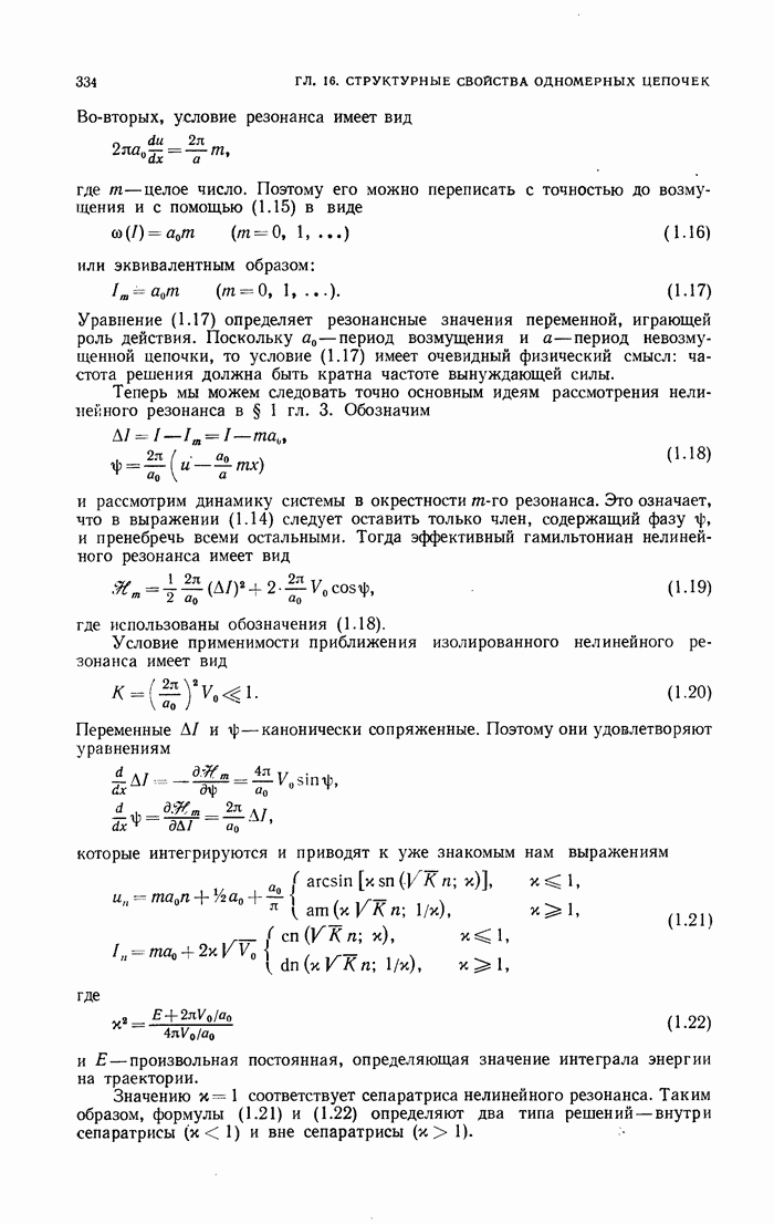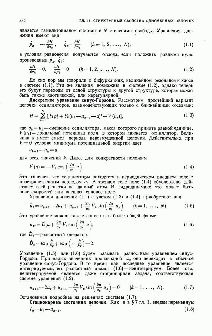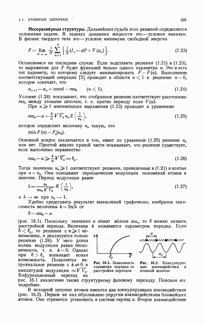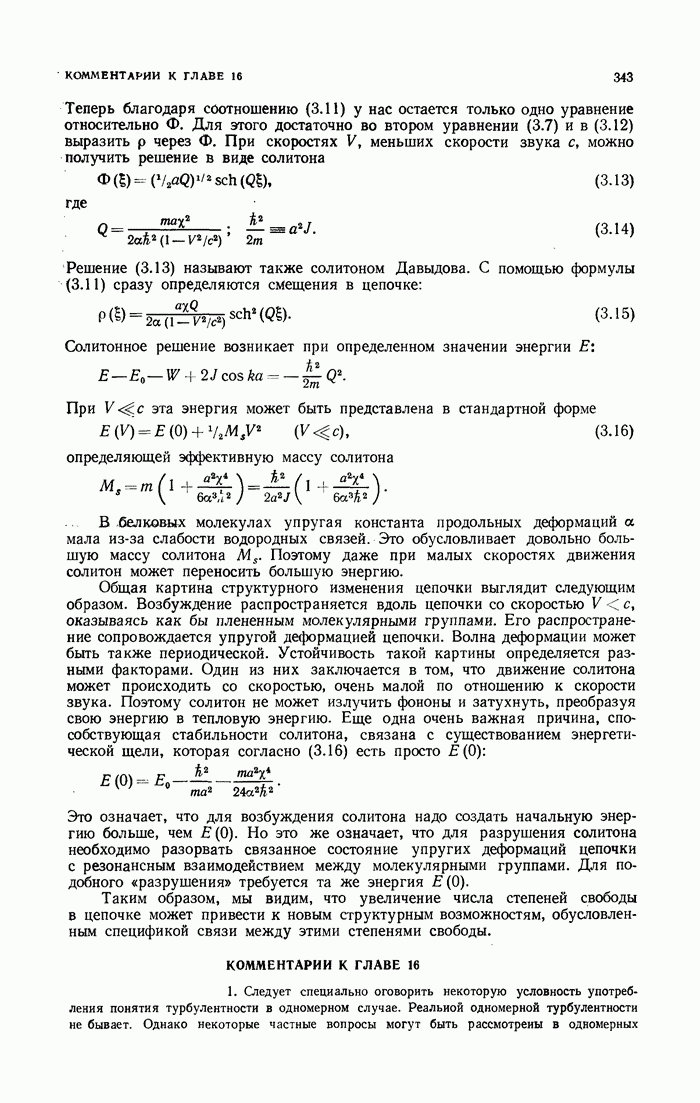 Это означает, что для возбуждения солитона надо создать начальную энергию больше, чем Таким образом, мы видим, что увеличение числа степеней свободы в цепочке может привести к новым структурным возможностям, обусловленным спецификой связи между этими степенями свободы. КОММЕНТАРИИ К ГЛАВЕ 16(см. скан)