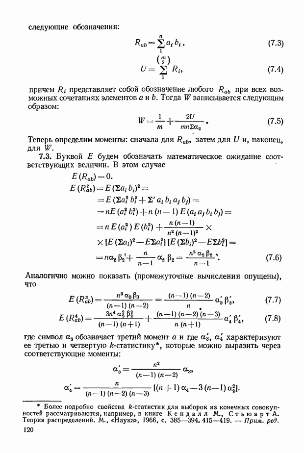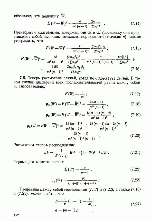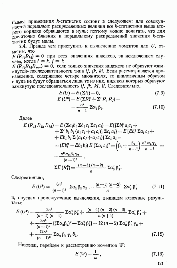 Вычисление третьего и четвертого моментов — дело гораздо более сложное; однако в принципе общий ход рассуждений не меняется. В результате расчетов можно получить следующие выражения: