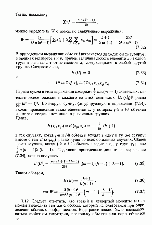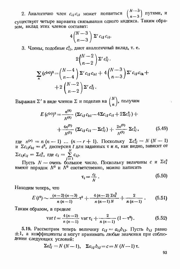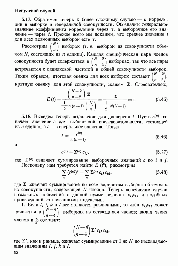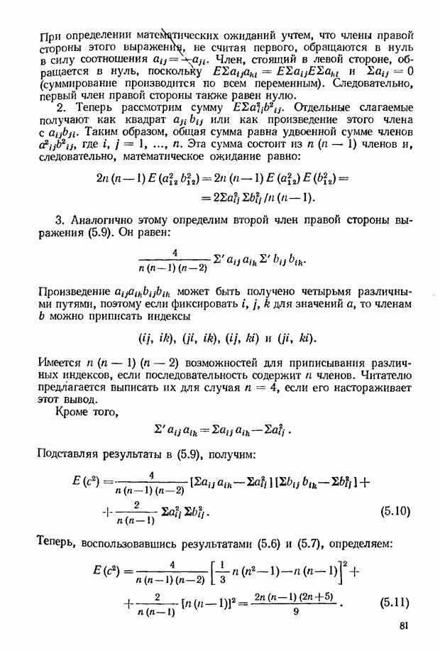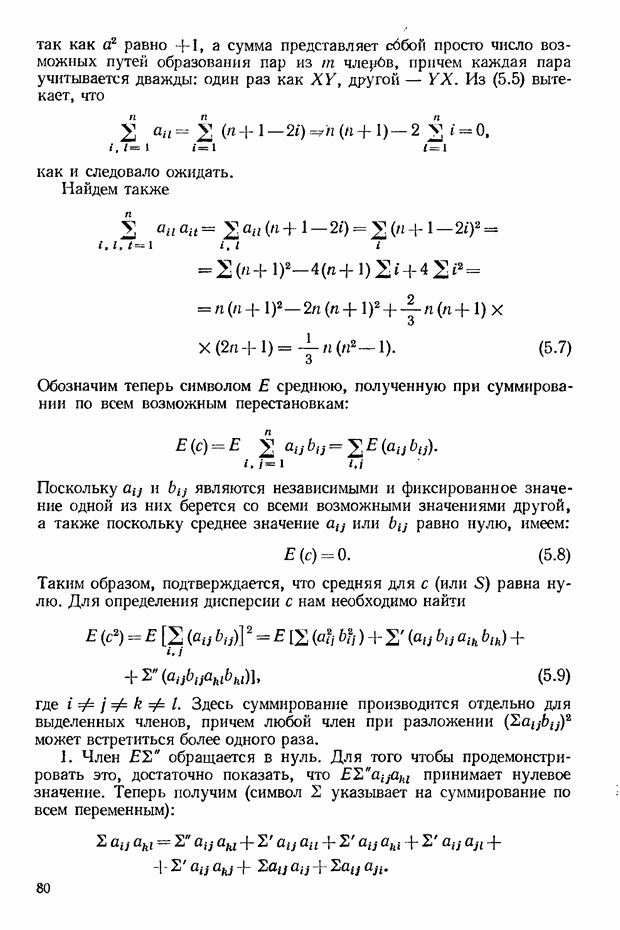 где ни одна пара индексов не совпадает. Обратившись к рассмотрению соответствующих конфигураций, можно подсчитать, что в первом случае математическое ожидание будет составлять