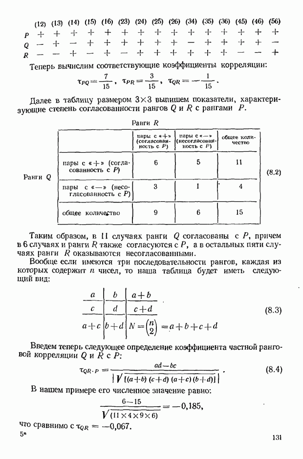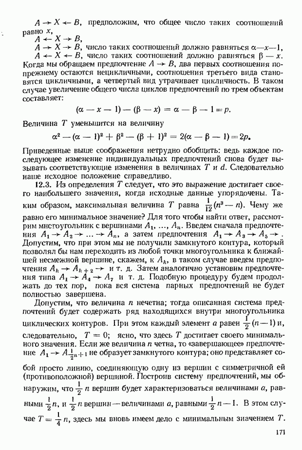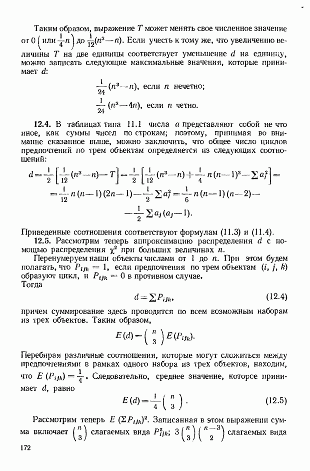 12.4. В таблицах типа 11.1 числа а представляют собой нечто иное, как суммы чисел по строкам; поэтому, принимая во внимание сказанное выше, можно заключить, что общее число циклов предпочтений по трем объектам определяется из следующих соотношений: