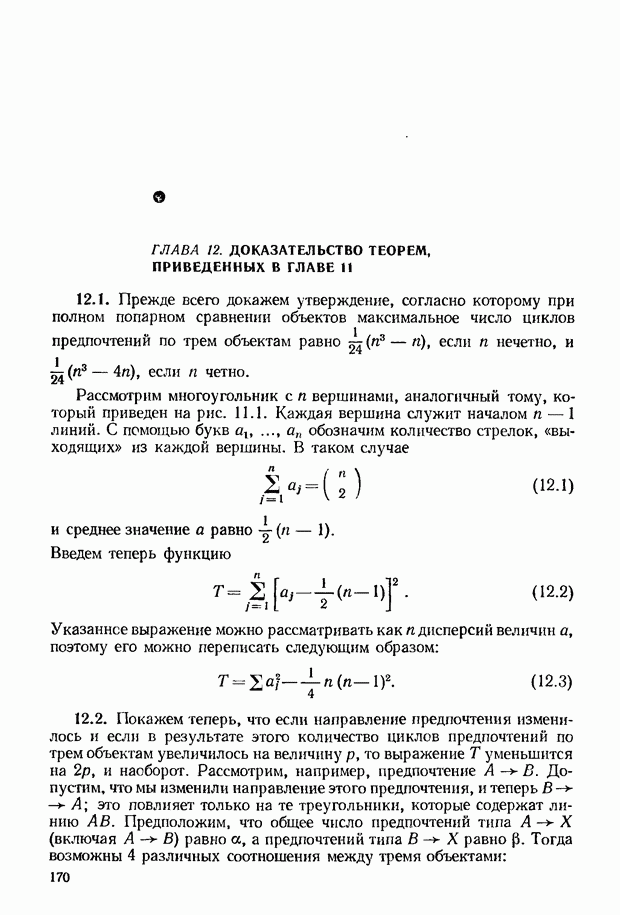 12.1. Прежде всего докажем утверждение, согласно которому при полном попарном сравнении объектов максимальное число циклов предпочтений по трем объектам равно