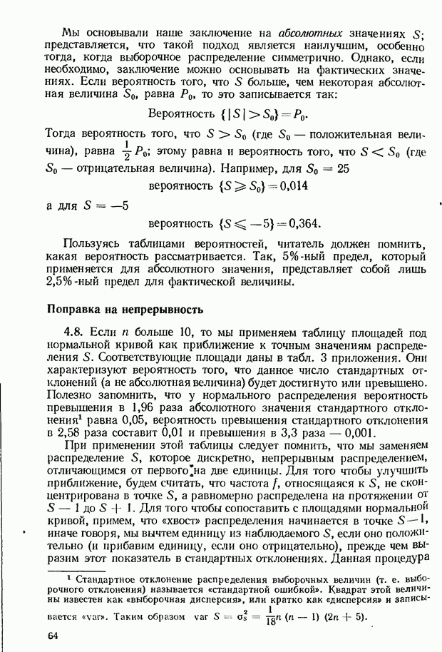 «с другого конца» их распределения. Введя поправку на непрерывность, мы можем записать следующее выражение: