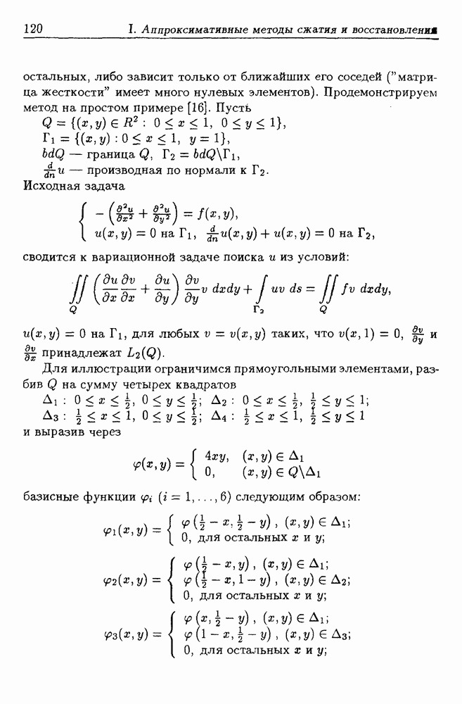 остальных, либо зависит только от ближайших его соседей ("матрица жесткости" имеет много нулевых элементов). Продемонстрируем метод на простом примере [16]. Пусть