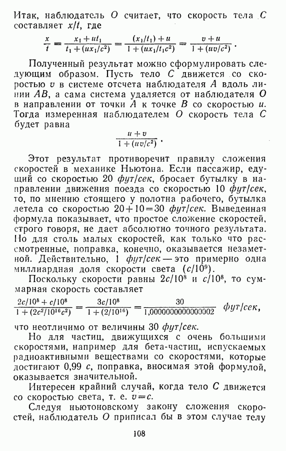 Итак, наблюдатель О утверждает, что тело С движется со скоростью