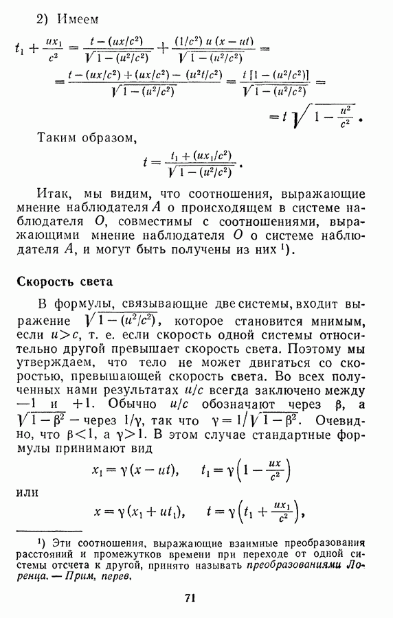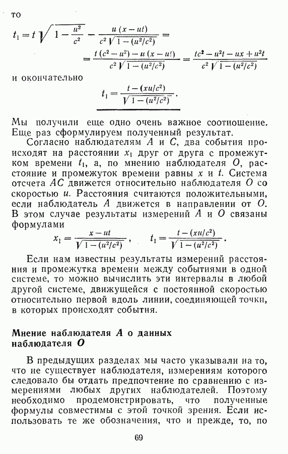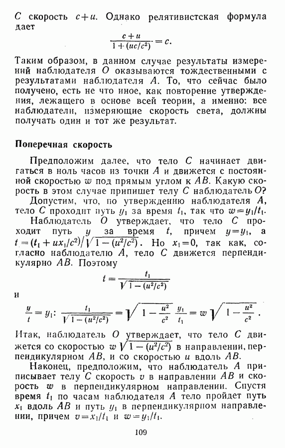 Таким образом, ясно, что результат, который получает наблюдатель О при измерении поперечной скорости тела, зависит от величины продольной скорости этого тела.