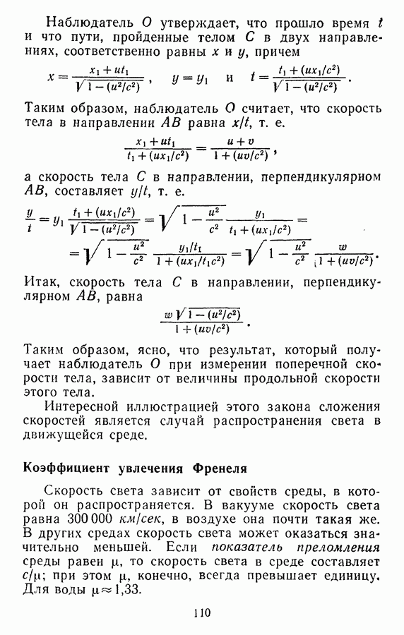 Таким образом, наблюдатель О считает, что скорость тела в направлении