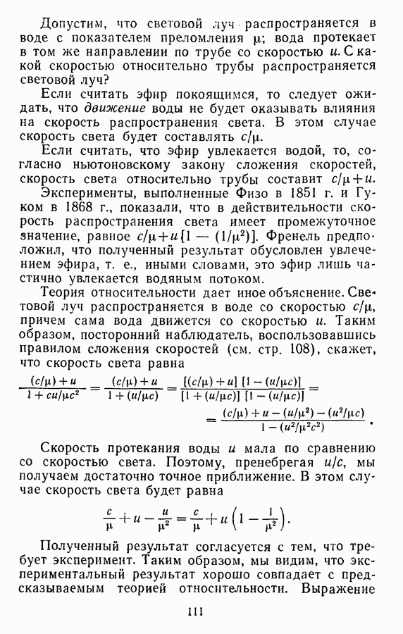 Интересной иллюстрацией этого закона сложения скоростей является случай распространения света в движущейся среде.