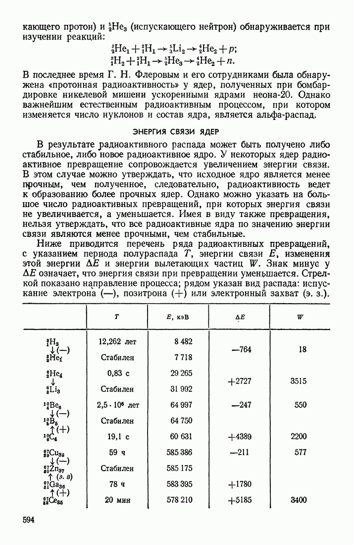 означает, что энергия связи при превращении уменьшается. Стрелкой показано направление процесса; рядом указан вид распада: испускание электрона