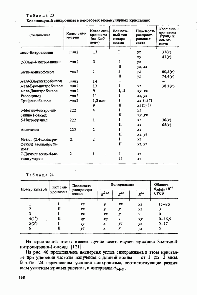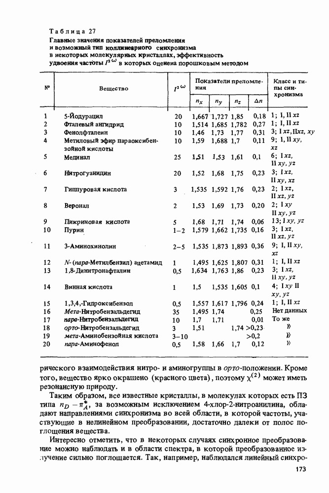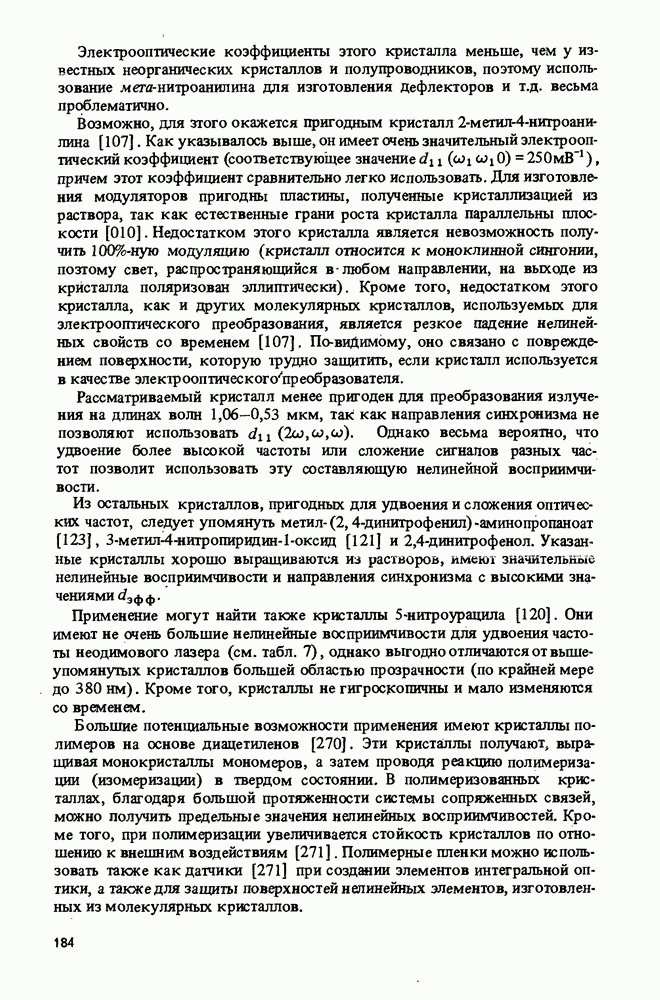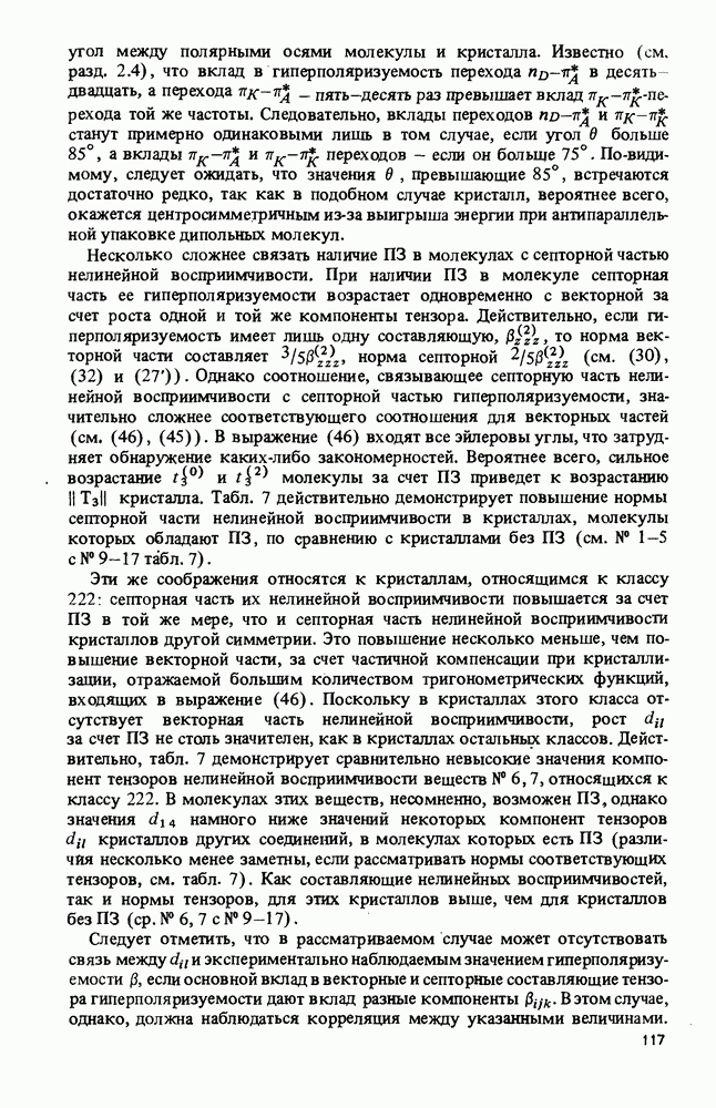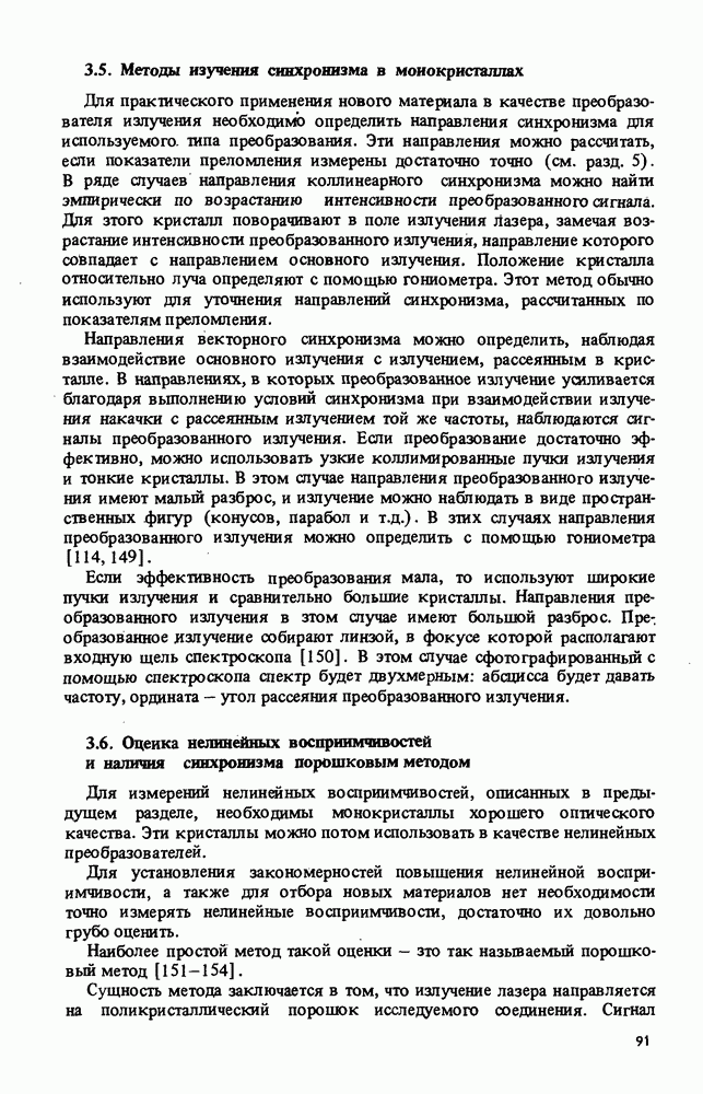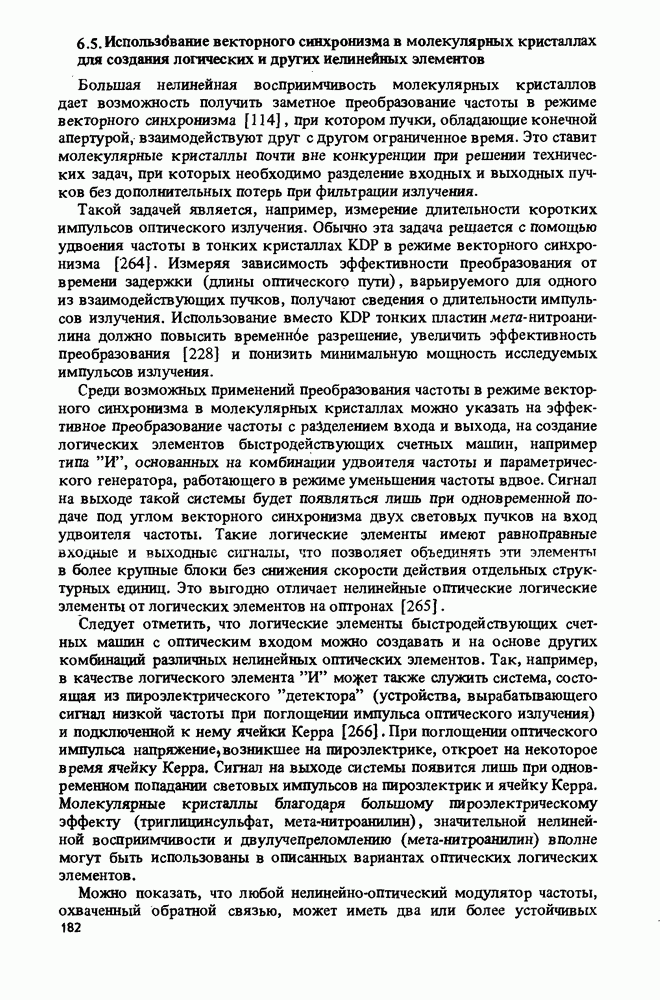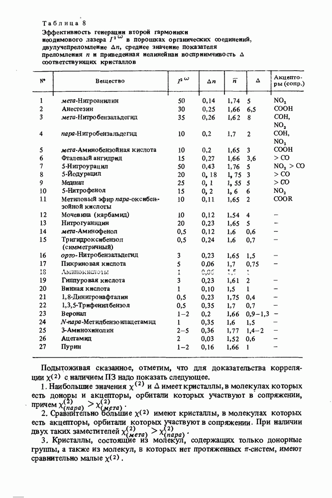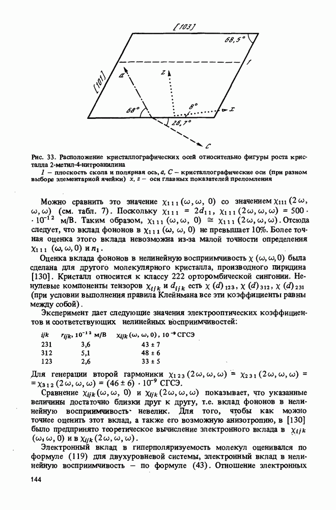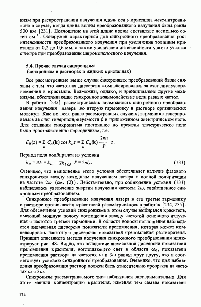 5.2. Векторный синхронизм в молекулярных кристаллахПеред тем как перейти к рассмотрению случаев выполнений условий коллинеарного синхронизма в конкретных молекулярных кристаллах, рассмотрим более общий случай синхронизма — векторный синхронизм. В случае векторного синхронизма векторы Векторный синхронизм изучен значительно меньше, чем коллинеарный. С одной стороны, направления векторного синхронизма гораздо более многочисленны, чем направления коллинеарного синхронизма, и их труднее изучать. С другой стороны, невозможно получить эффективное преобразование в режиме векторного синхронизма в кристаллах KDP и некоторых других хорошо изученных неорганических кристаллах. Последнее связано с тем, что взаимодействие основного и преобразованного излучения наблюдается лишь в области пересечения пучков, участвующих в преобразовании. Эта область определяется углом между к, и В случае молекулярных кристаллов ситуация иная. Многие Все вышеперечисленные соображения привели к тому, что векторный синхронизм в молекулярных кристаллах сравнительно часто исследуют и используют. Например, наблюдалось практически полное преобразование излучения неодимового лазера в его вторую гармонику на кристалле .мега-нитро анилина толщиной несколько миллиметров [227] при использовании режима векторного синхронизма. В режиме линейного синхронизма получили лишь 30%-ное преобразование (на кристаллах мета-нитро-анилина [228], метил-2,4-динитрофениламинопропаноата [123] и некоторых других). Рассмотрим способы расчета направлений векторного синхронизма. Выражение (2) можно переписать в виде [229]
