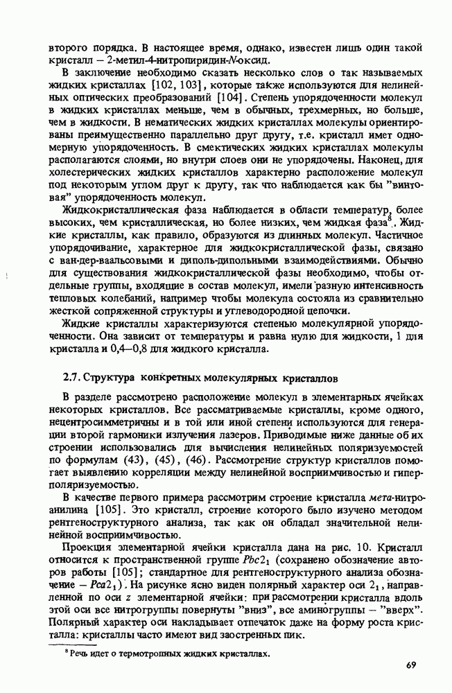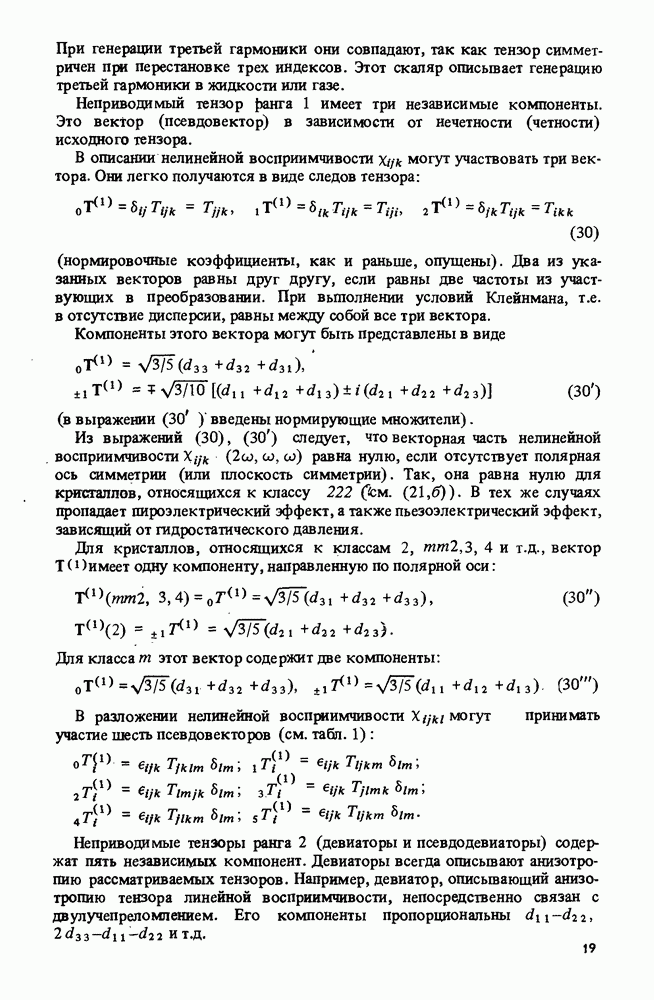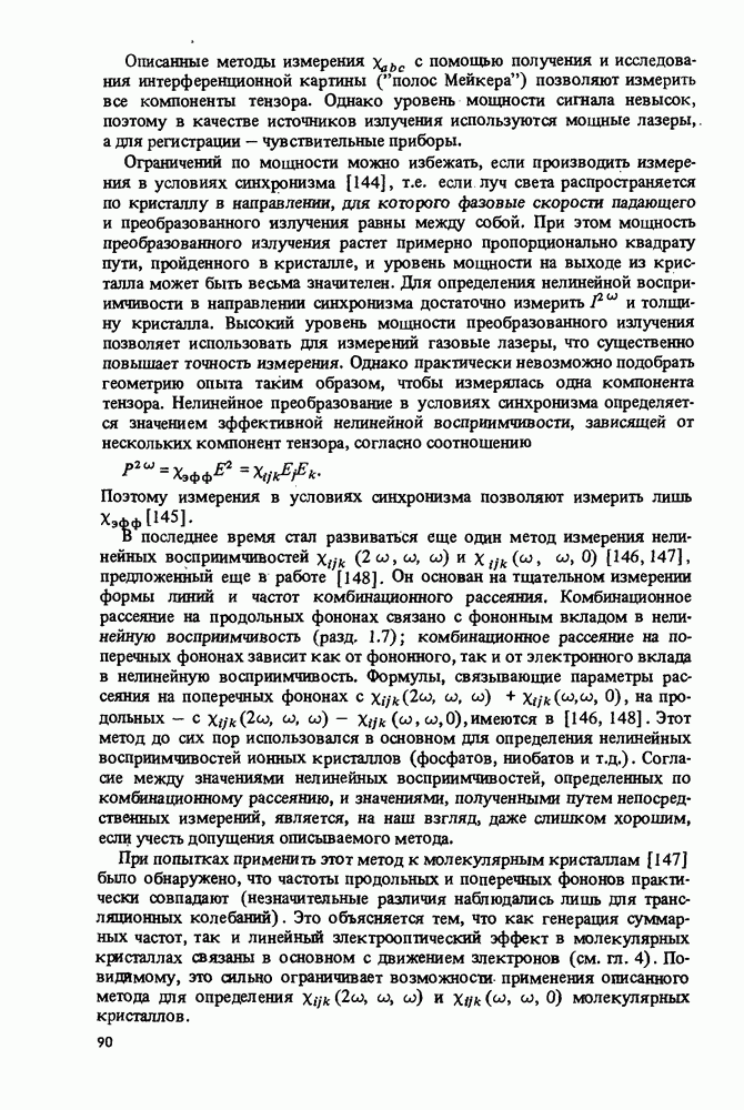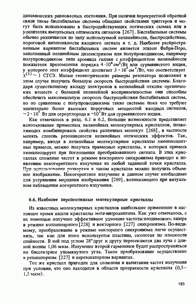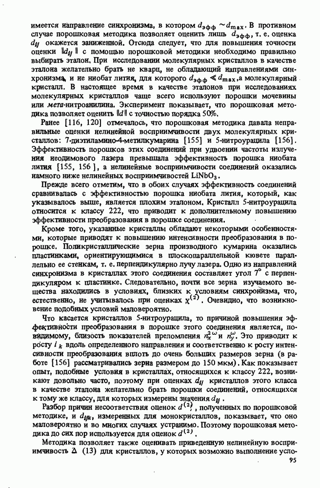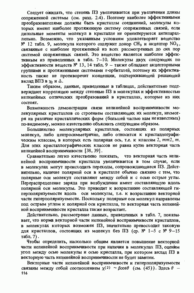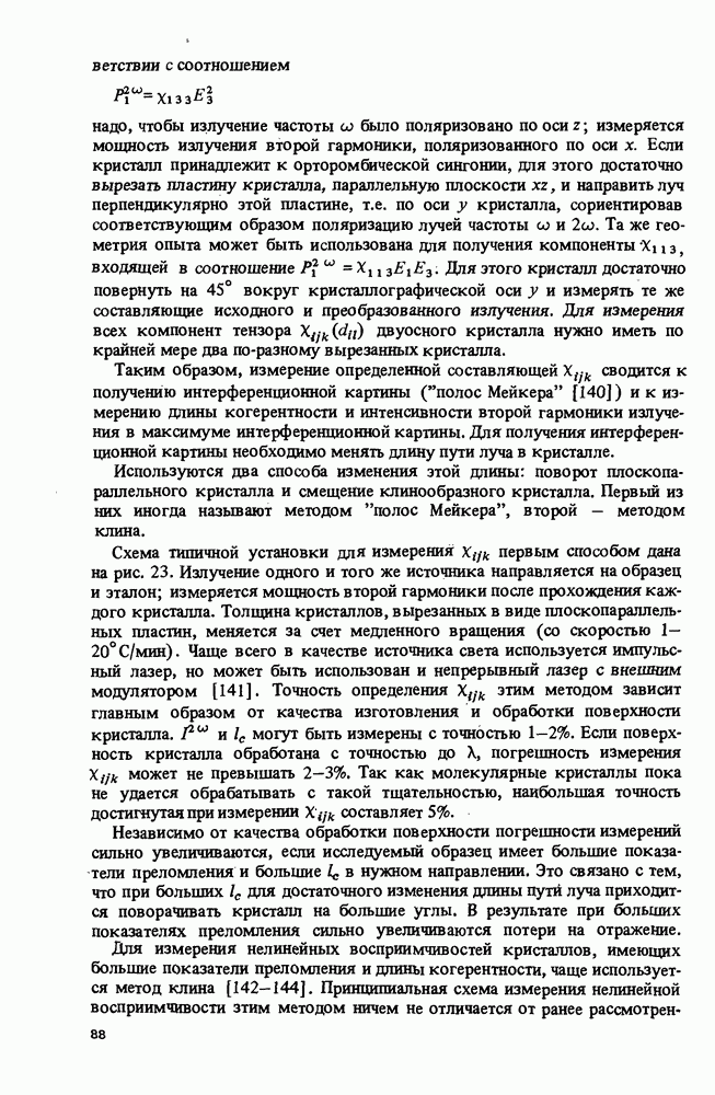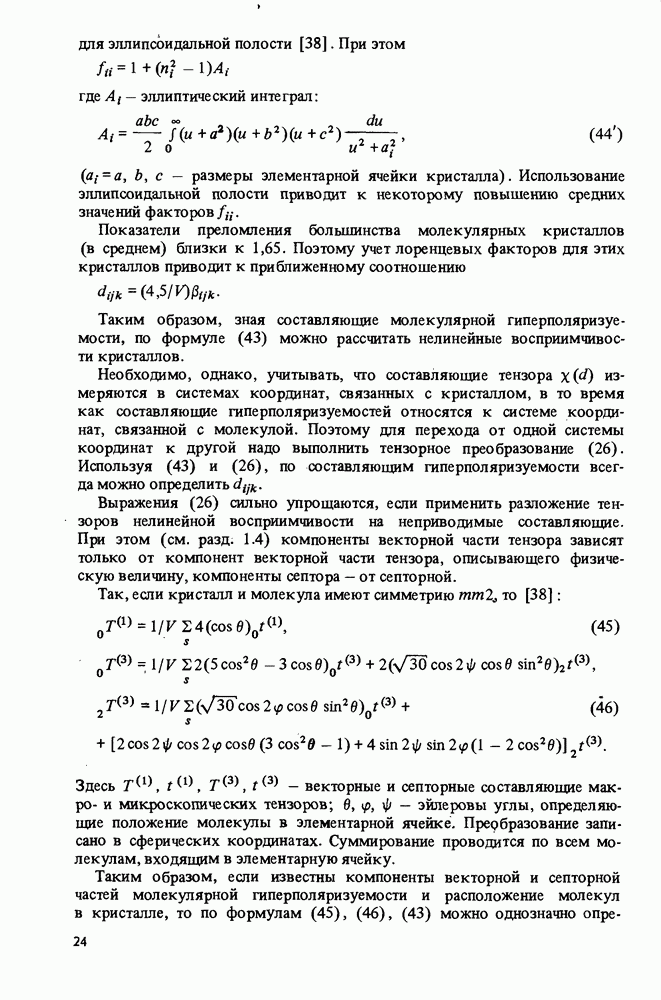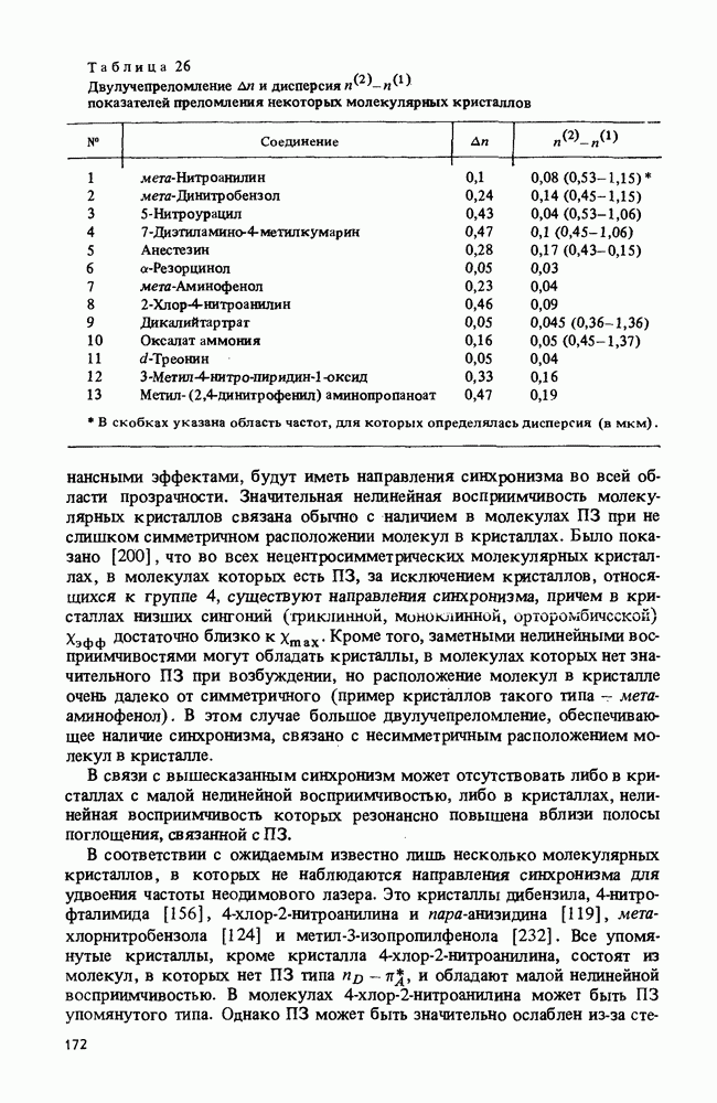 5.2. Векторный синхронизм в молекулярных кристаллахПеред тем как перейти к рассмотрению случаев выполнений условий коллинеарного синхронизма в конкретных молекулярных кристаллах, рассмотрим более общий случай синхронизма — векторный синхронизм. В случае векторного синхронизма векторы Векторный синхронизм изучен значительно меньше, чем коллинеарный. С одной стороны, направления векторного синхронизма гораздо более многочисленны, чем направления коллинеарного синхронизма, и их труднее изучать. С другой стороны, невозможно получить эффективное преобразование в режиме векторного синхронизма в кристаллах KDP и некоторых других хорошо изученных неорганических кристаллах. Последнее связано с тем, что взаимодействие основного и преобразованного излучения наблюдается лишь в области пересечения пучков, участвующих в преобразовании. Эта область определяется углом между к, и В случае молекулярных кристаллов ситуация иная. Многие Все вышеперечисленные соображения привели к тому, что векторный синхронизм в молекулярных кристаллах сравнительно часто исследуют и используют. Например, наблюдалось практически полное преобразование излучения неодимового лазера в его вторую гармонику на кристалле .мега-нитро анилина толщиной несколько миллиметров [227] при использовании режима векторного синхронизма. В режиме линейного синхронизма получили лишь 30%-ное преобразование (на кристаллах мета-нитро-анилина [228], метил-2,4-динитрофениламинопропаноата [123] и некоторых других). Рассмотрим способы расчета направлений векторного синхронизма. Выражение (2) можно переписать в виде [229]