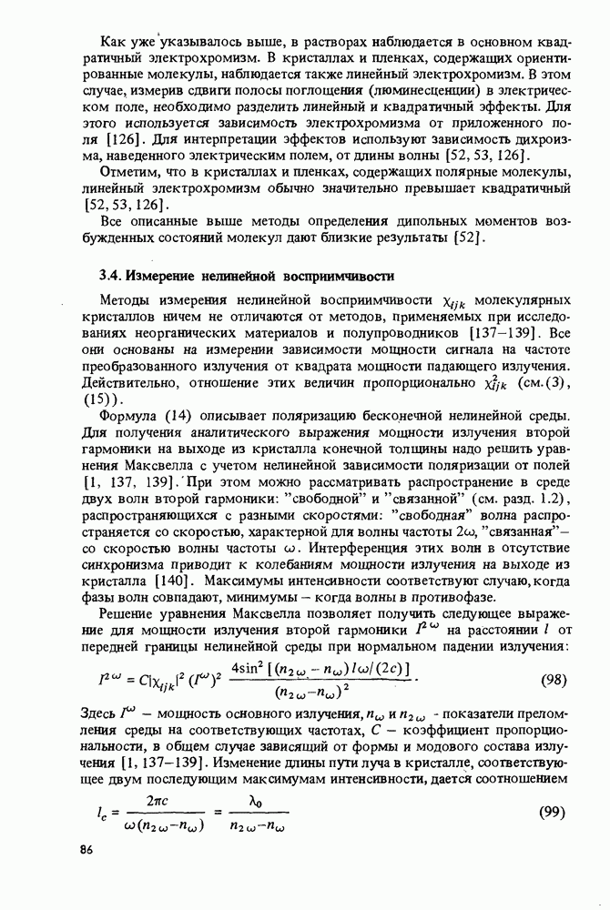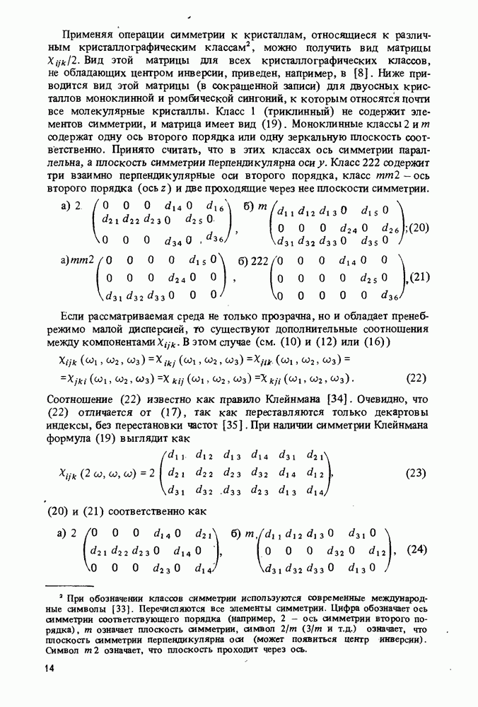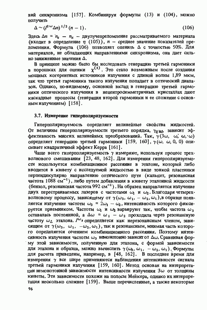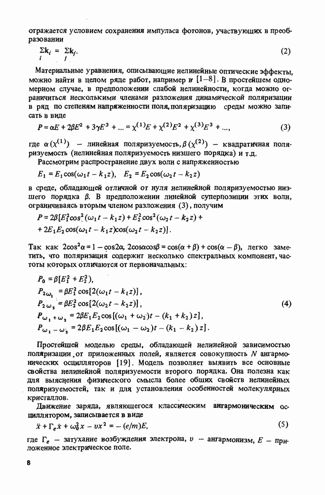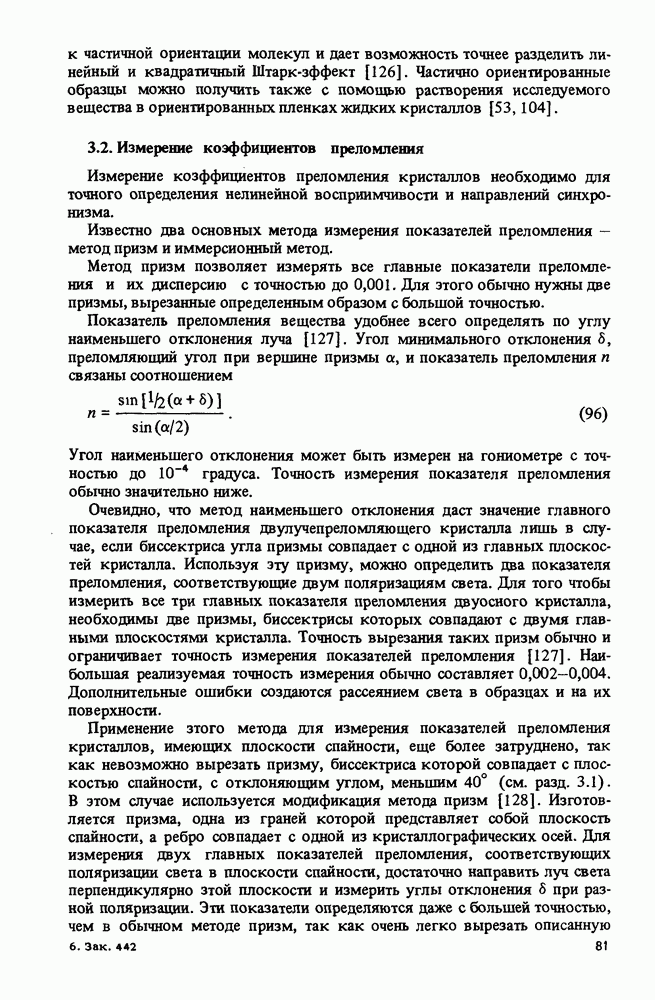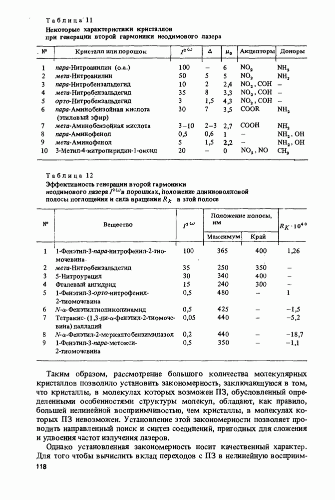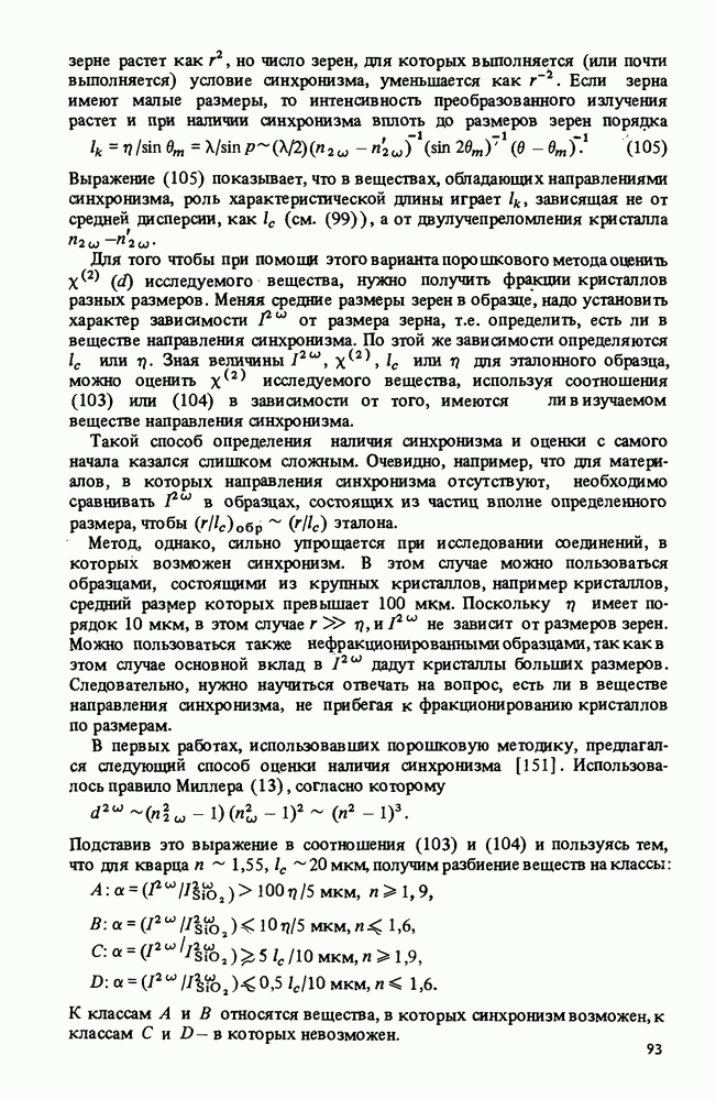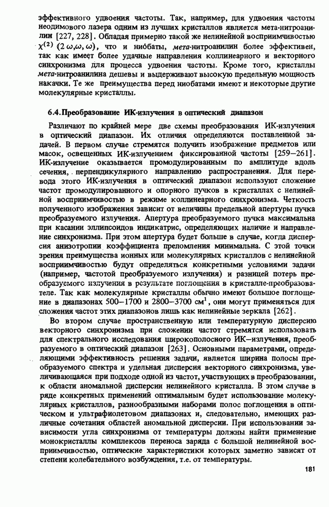 5.2. Векторный синхронизм в молекулярных кристаллахПеред тем как перейти к рассмотрению случаев выполнений условий коллинеарного синхронизма в конкретных молекулярных кристаллах, рассмотрим более общий случай синхронизма — векторный синхронизм. В случае векторного синхронизма векторы Векторный синхронизм изучен значительно меньше, чем коллинеарный. С одной стороны, направления векторного синхронизма гораздо более многочисленны, чем направления коллинеарного синхронизма, и их труднее изучать. С другой стороны, невозможно получить эффективное преобразование в режиме векторного синхронизма в кристаллах KDP и некоторых других хорошо изученных неорганических кристаллах. Последнее связано с тем, что взаимодействие основного и преобразованного излучения наблюдается лишь в области пересечения пучков, участвующих в преобразовании. Эта область определяется углом между к, и В случае молекулярных кристаллов ситуация иная. Многие Все вышеперечисленные соображения привели к тому, что векторный синхронизм в молекулярных кристаллах сравнительно часто исследуют и используют. Например, наблюдалось практически полное преобразование излучения неодимового лазера в его вторую гармонику на кристалле .мега-нитро анилина толщиной несколько миллиметров [227] при использовании режима векторного синхронизма. В режиме линейного синхронизма получили лишь 30%-ное преобразование (на кристаллах мета-нитро-анилина [228], метил-2,4-динитрофениламинопропаноата [123] и некоторых других). Рассмотрим способы расчета направлений векторного синхронизма. Выражение (2) можно переписать в виде [229]