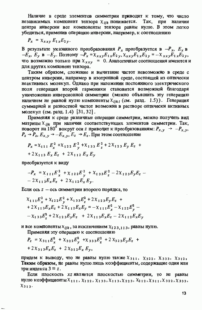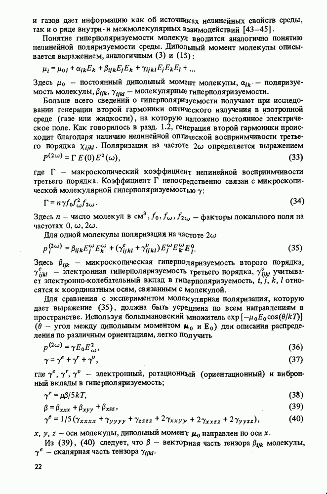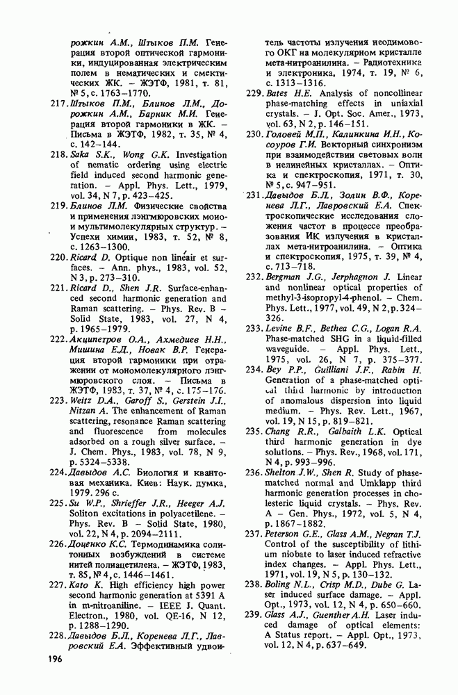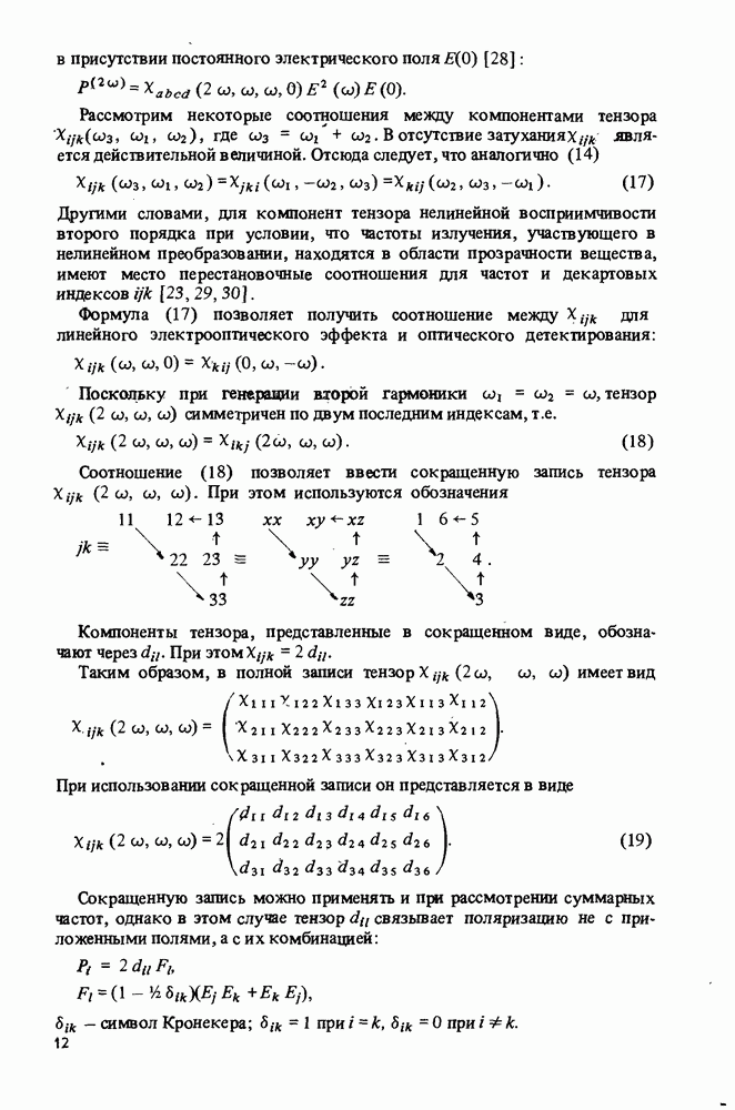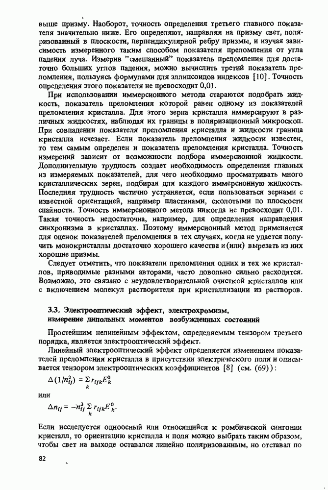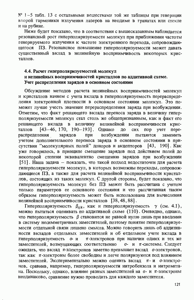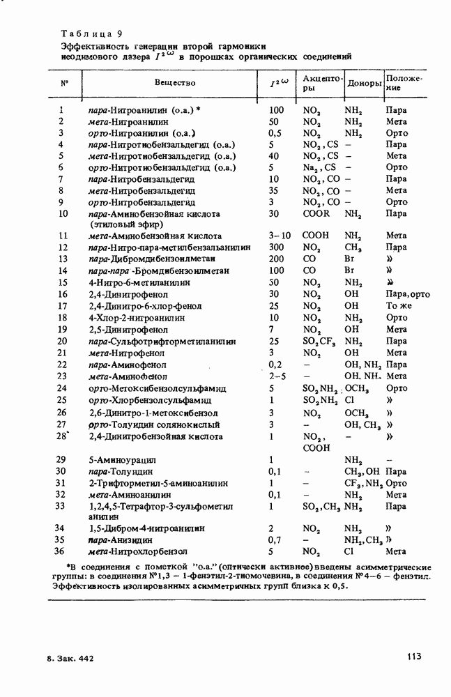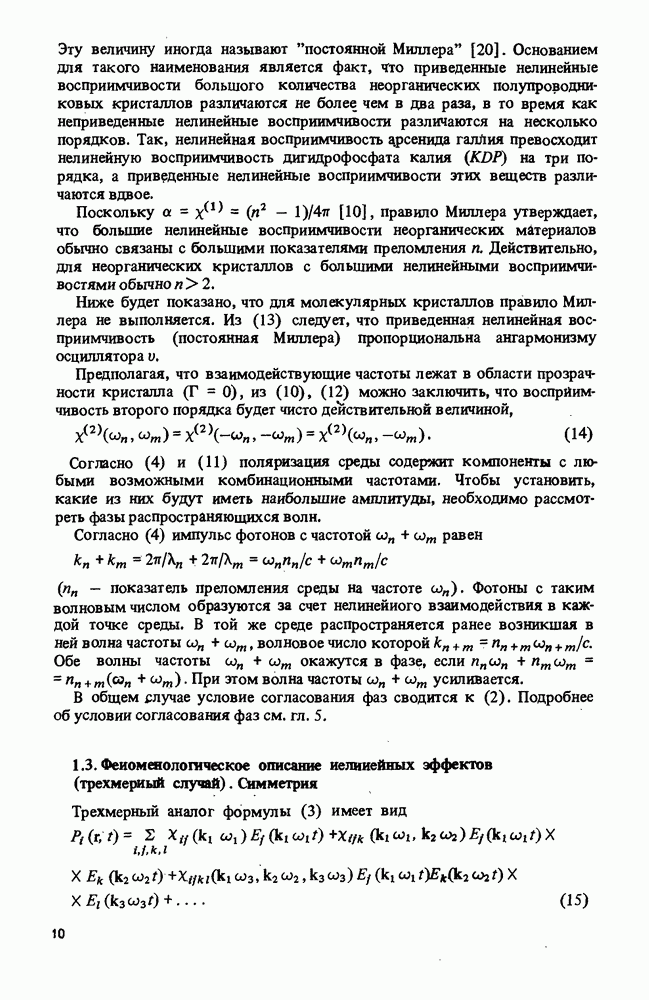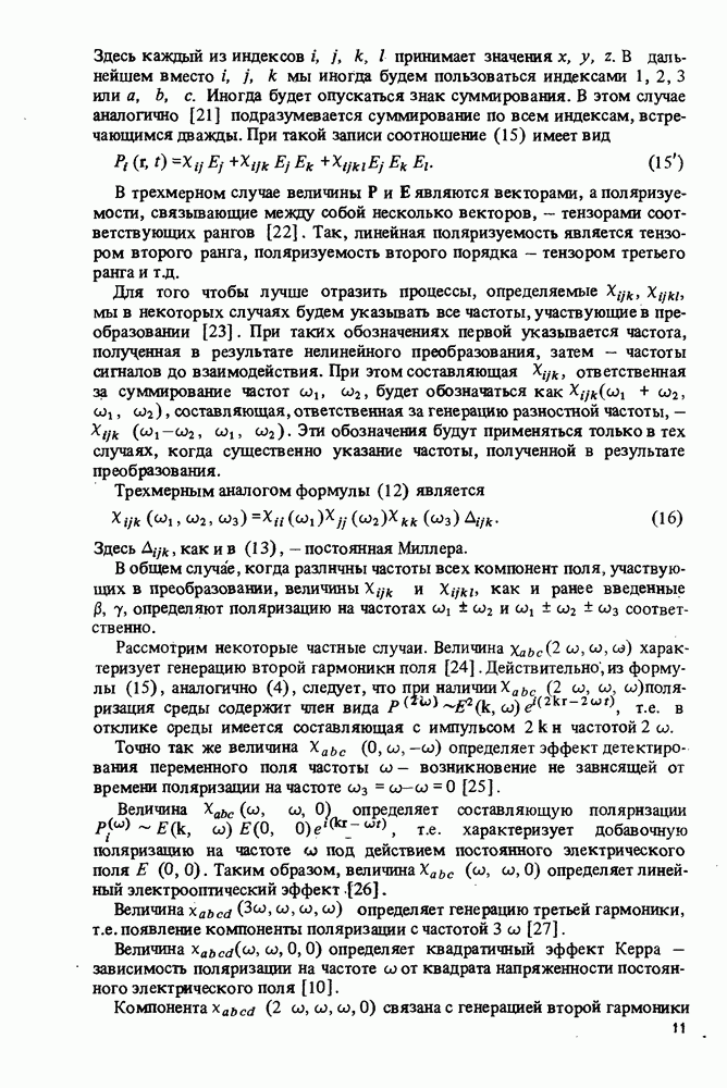 5.2. Векторный синхронизм в молекулярных кристаллахПеред тем как перейти к рассмотрению случаев выполнений условий коллинеарного синхронизма в конкретных молекулярных кристаллах, рассмотрим более общий случай синхронизма — векторный синхронизм. В случае векторного синхронизма векторы Векторный синхронизм изучен значительно меньше, чем коллинеарный. С одной стороны, направления векторного синхронизма гораздо более многочисленны, чем направления коллинеарного синхронизма, и их труднее изучать. С другой стороны, невозможно получить эффективное преобразование в режиме векторного синхронизма в кристаллах KDP и некоторых других хорошо изученных неорганических кристаллах. Последнее связано с тем, что взаимодействие основного и преобразованного излучения наблюдается лишь в области пересечения пучков, участвующих в преобразовании. Эта область определяется углом между к, и В случае молекулярных кристаллов ситуация иная. Многие Все вышеперечисленные соображения привели к тому, что векторный синхронизм в молекулярных кристаллах сравнительно часто исследуют и используют. Например, наблюдалось практически полное преобразование излучения неодимового лазера в его вторую гармонику на кристалле .мега-нитро анилина толщиной несколько миллиметров [227] при использовании режима векторного синхронизма. В режиме линейного синхронизма получили лишь 30%-ное преобразование (на кристаллах мета-нитро-анилина [228], метил-2,4-динитрофениламинопропаноата [123] и некоторых других). Рассмотрим способы расчета направлений векторного синхронизма. Выражение (2) можно переписать в виде [229]